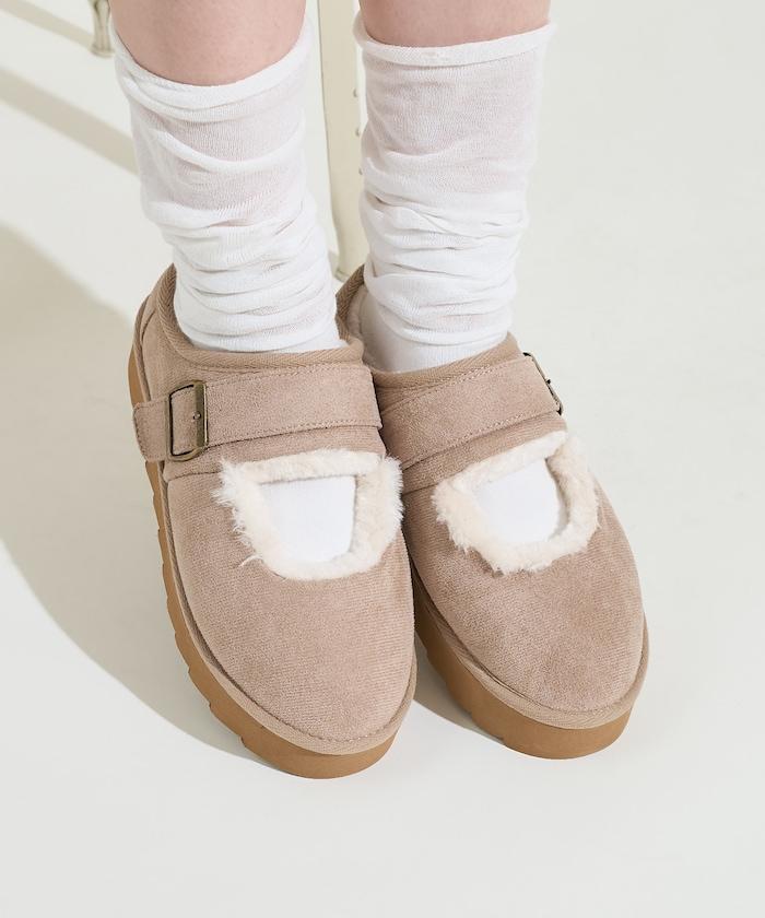迷人的環保皮草瑪麗珍鞋,具有豐滿的感覺。