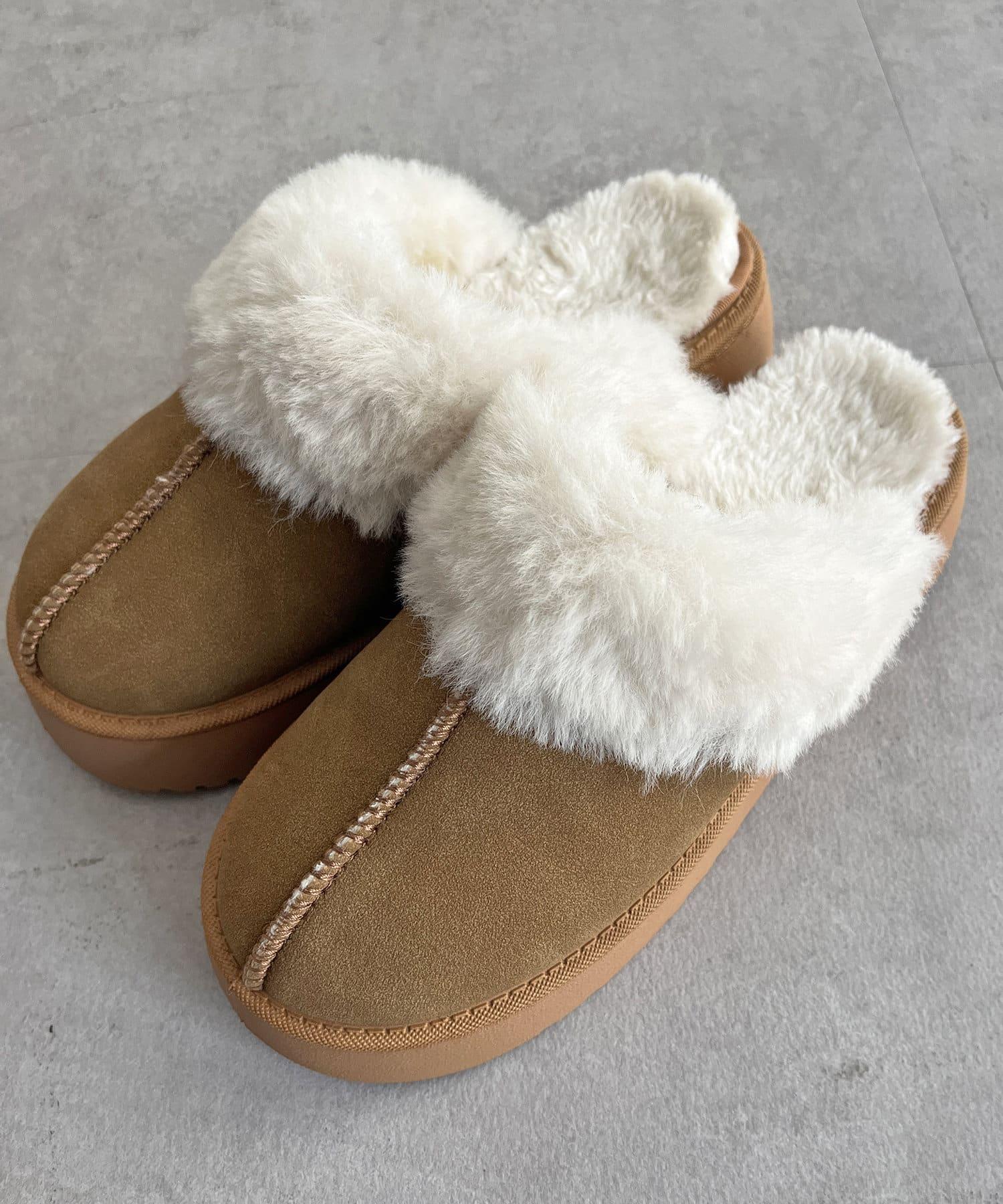 蓬鬆的毛皮與您的座標搭配得恰到好處。 Mouton 鞋子穿脫方便,就像拖鞋一樣。