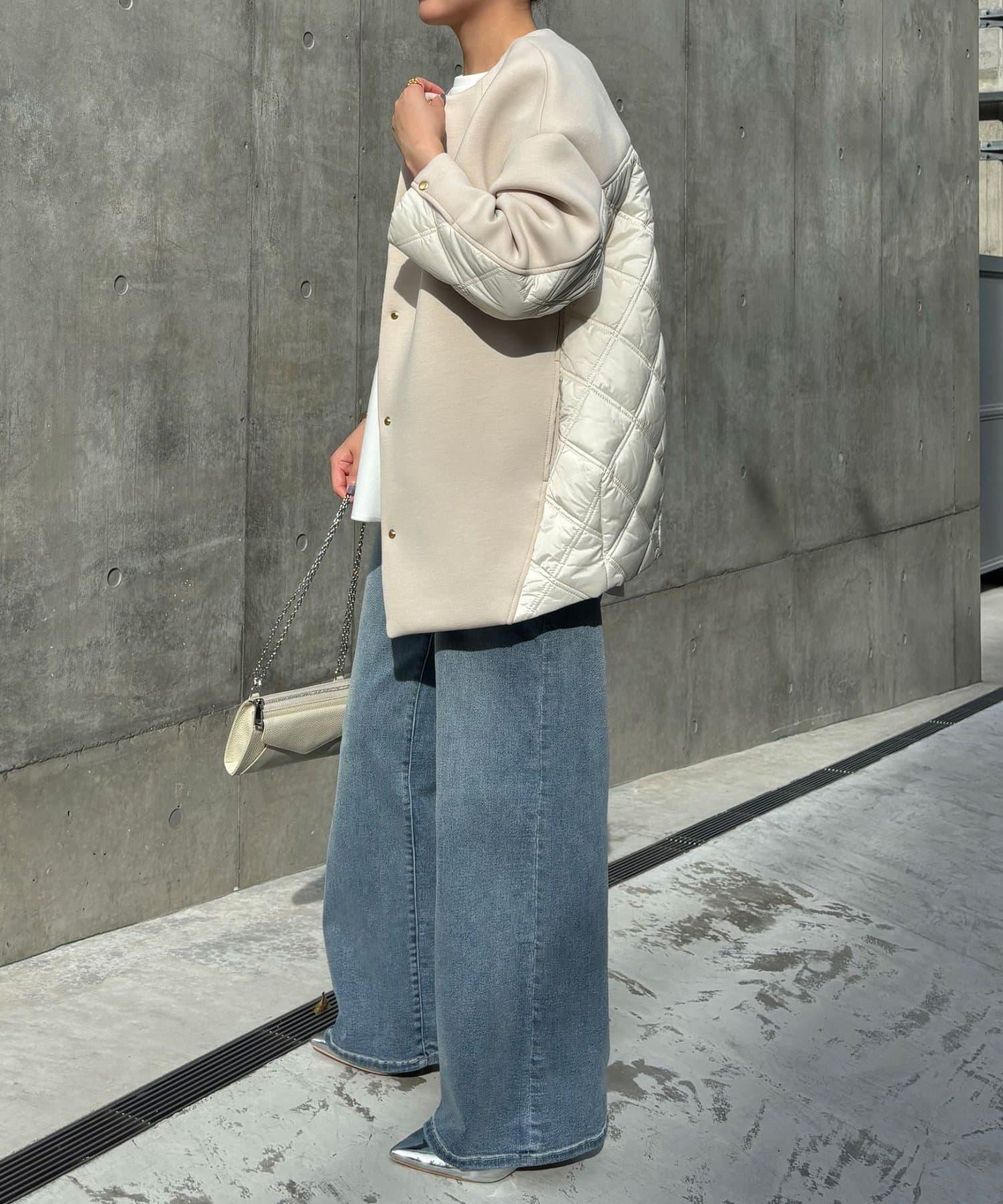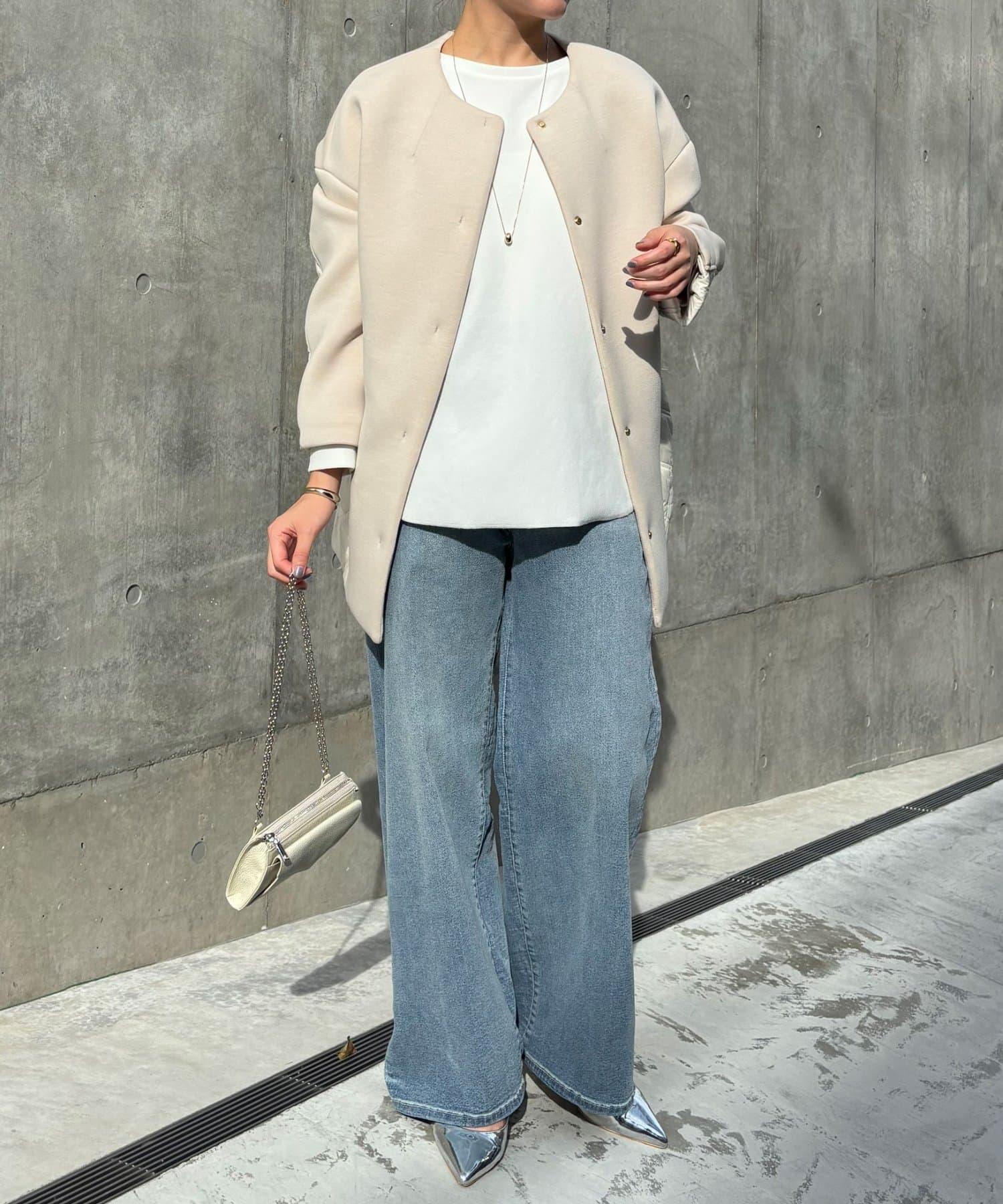袖子和衣身的寬度都比較寬鬆,因此即使套在厚厚的針織衫外面也能輕鬆穿上。無領、簡潔的領口設計讓它與高領毛衣和連帽衫輕鬆搭配。