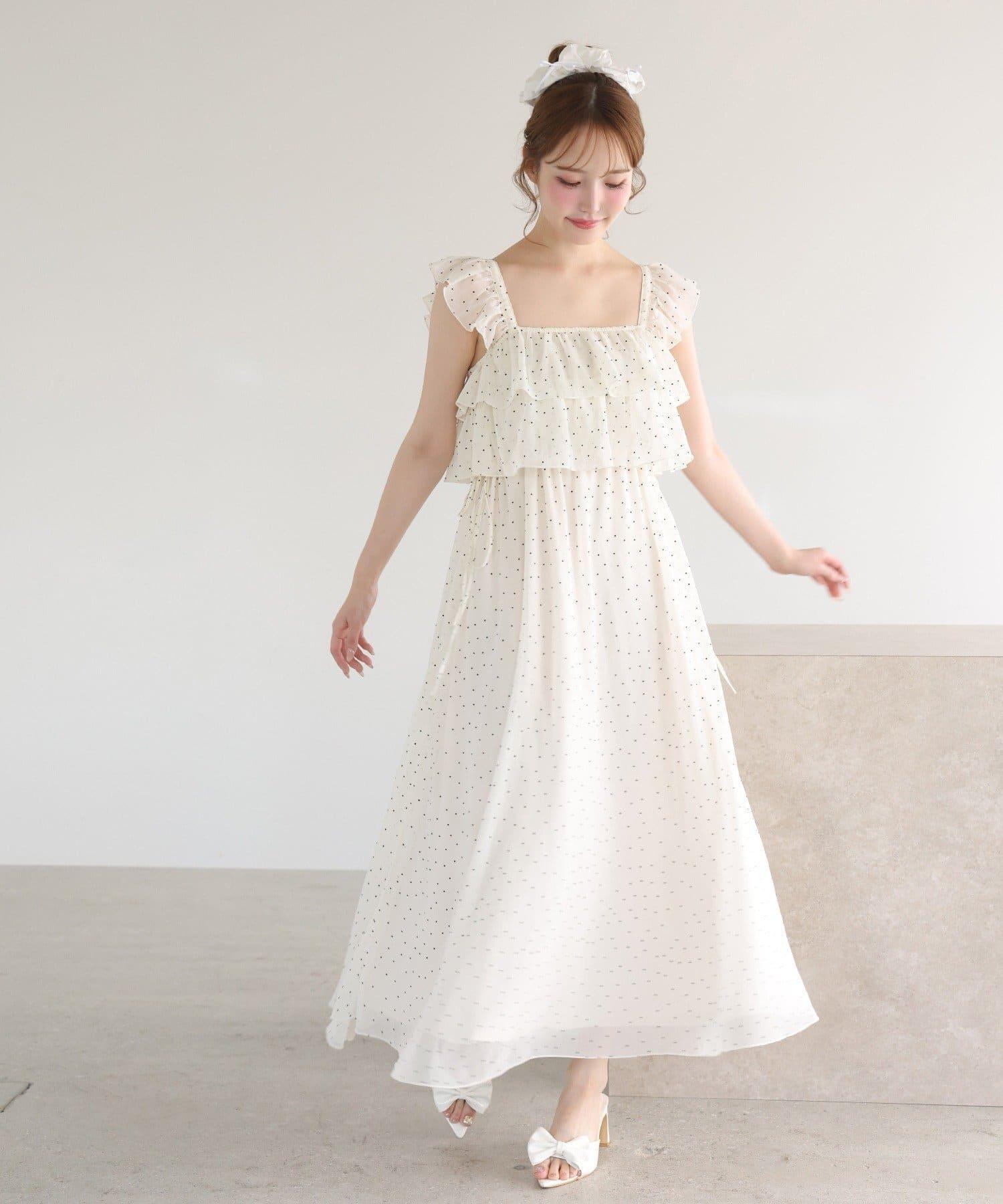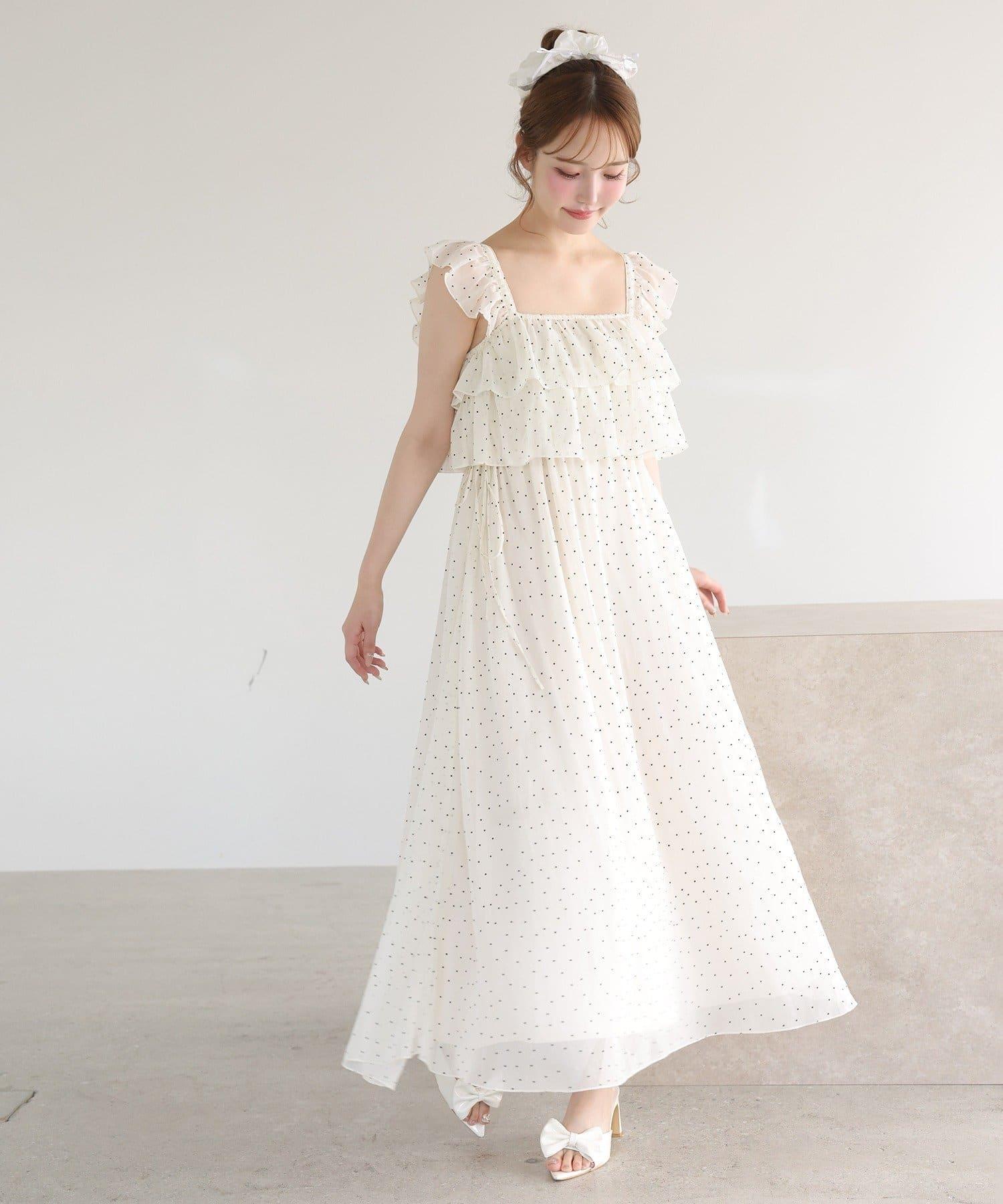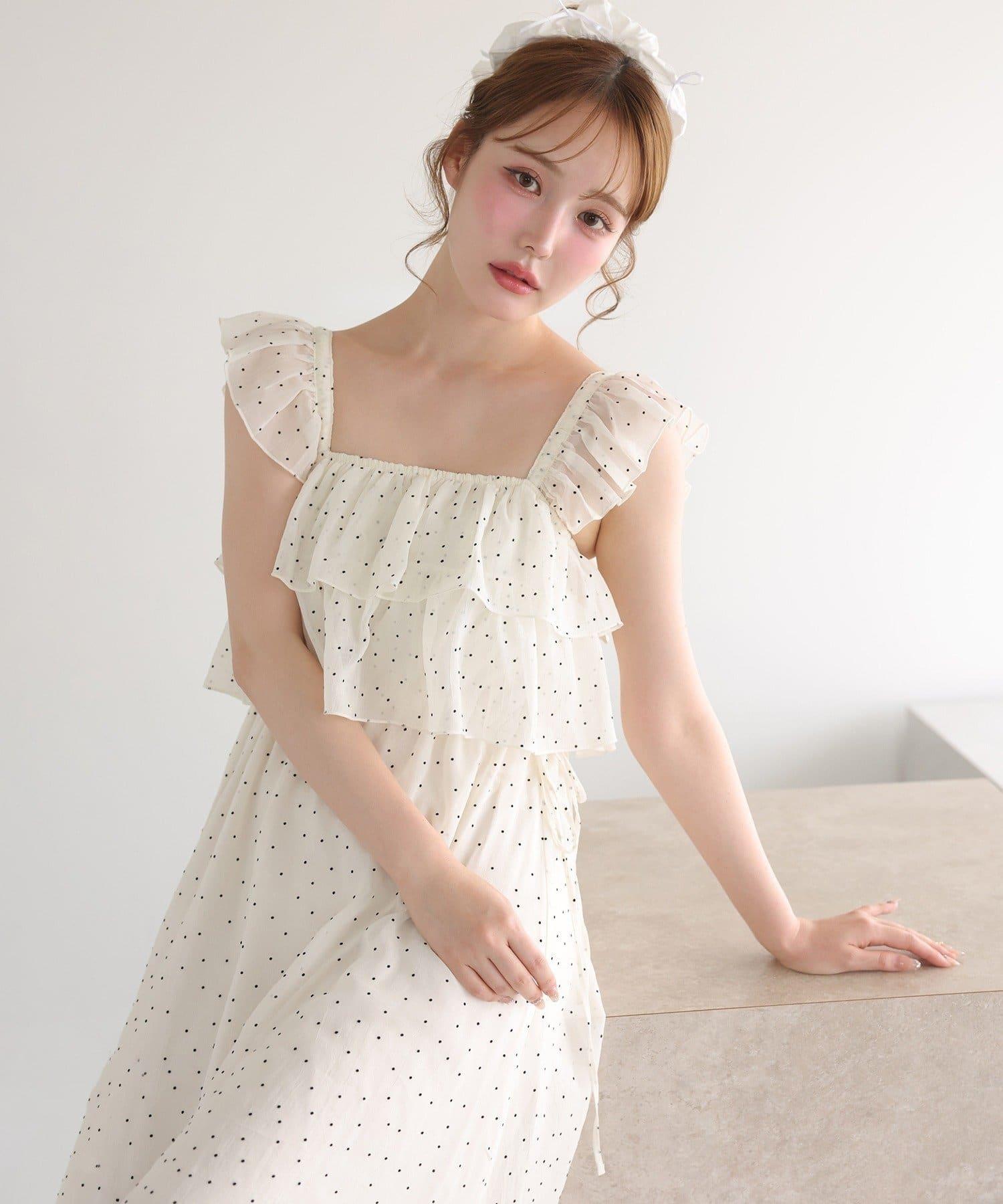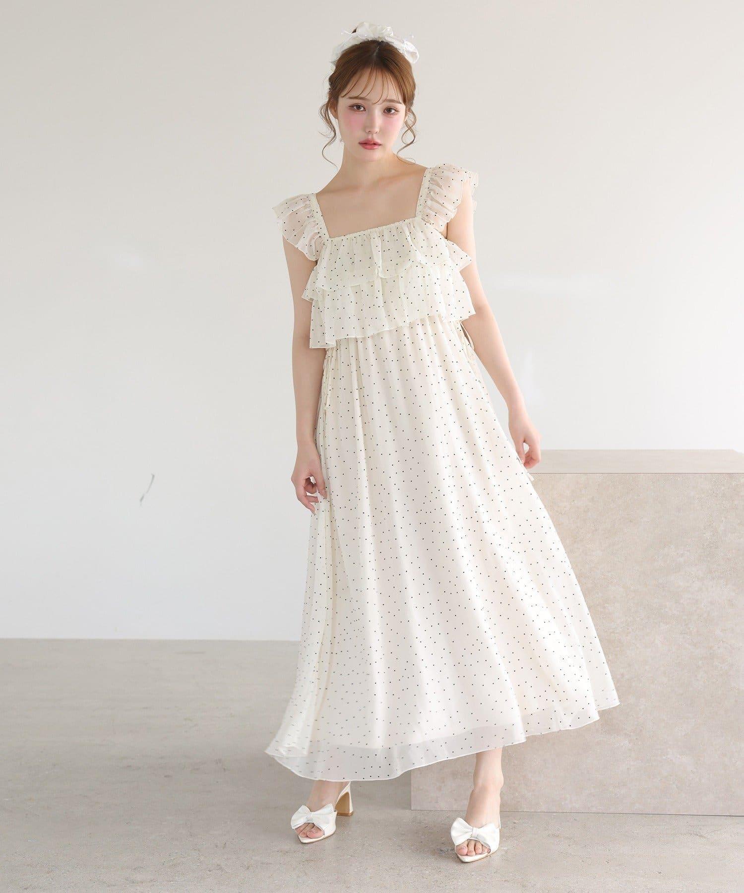 【可以成為天使!?】側邊蝴蝶結荷葉邊吊帶連衣裙