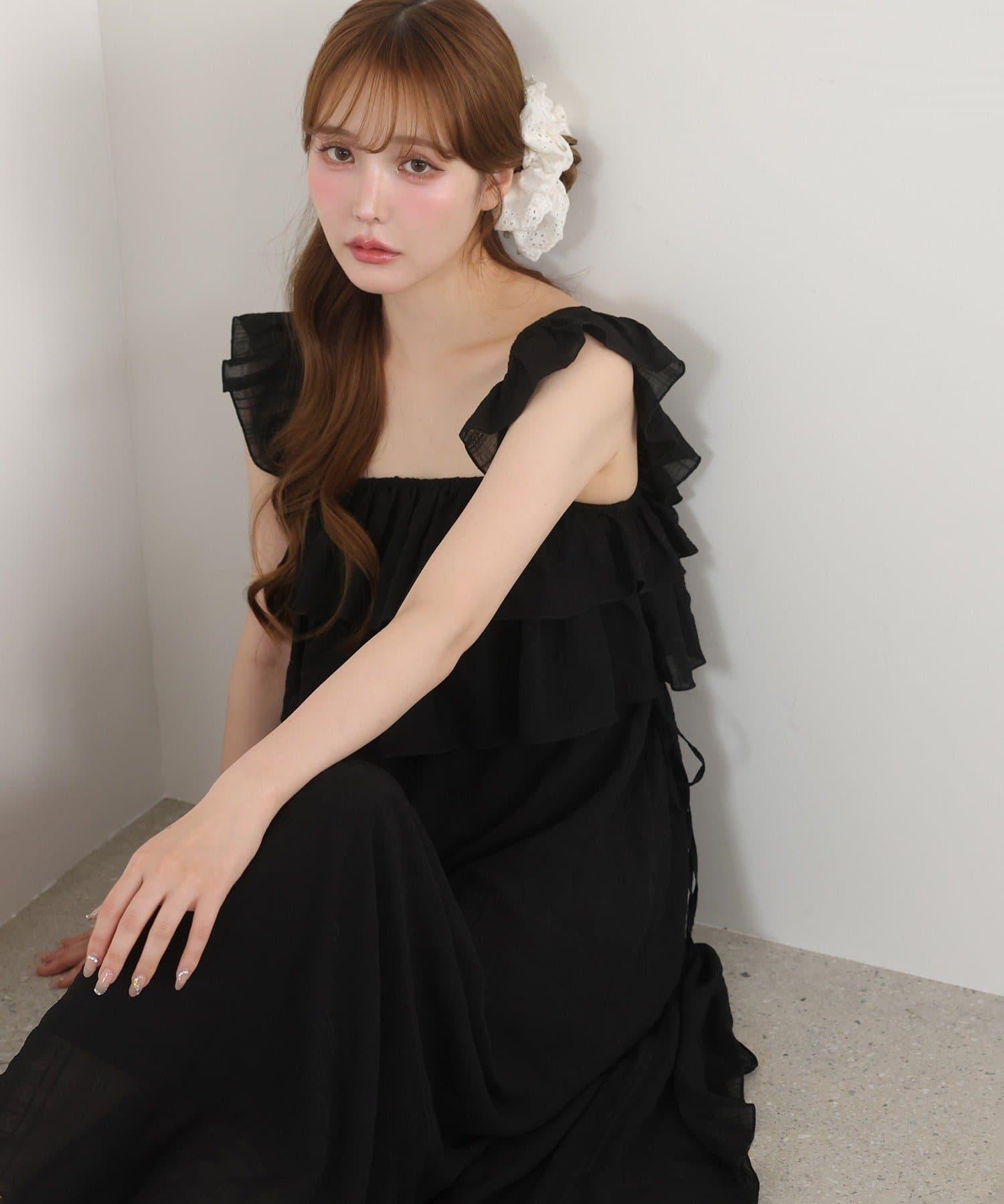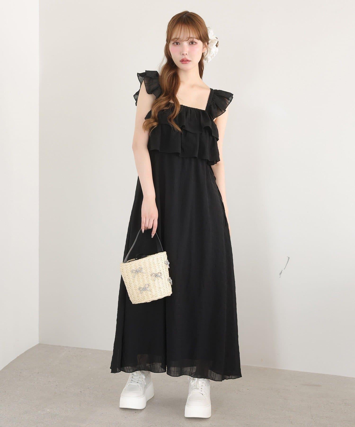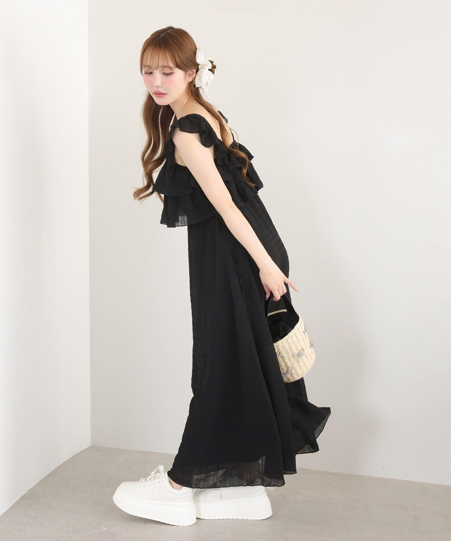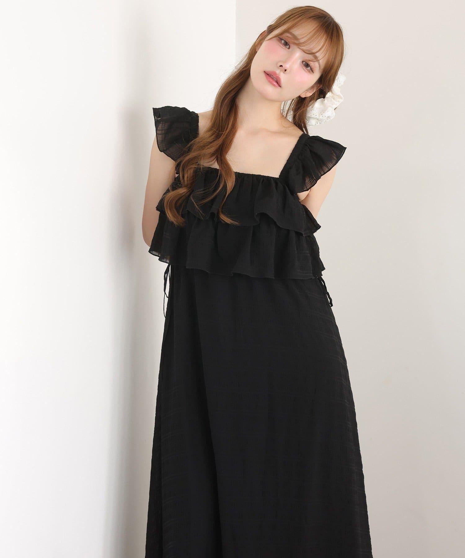 【可以成為天使!?】側邊蝴蝶結荷葉邊吊帶連衣裙