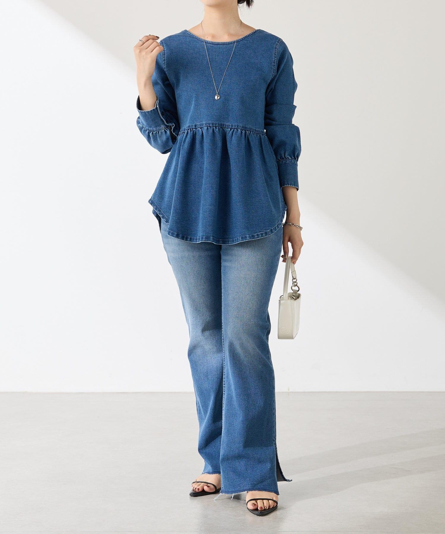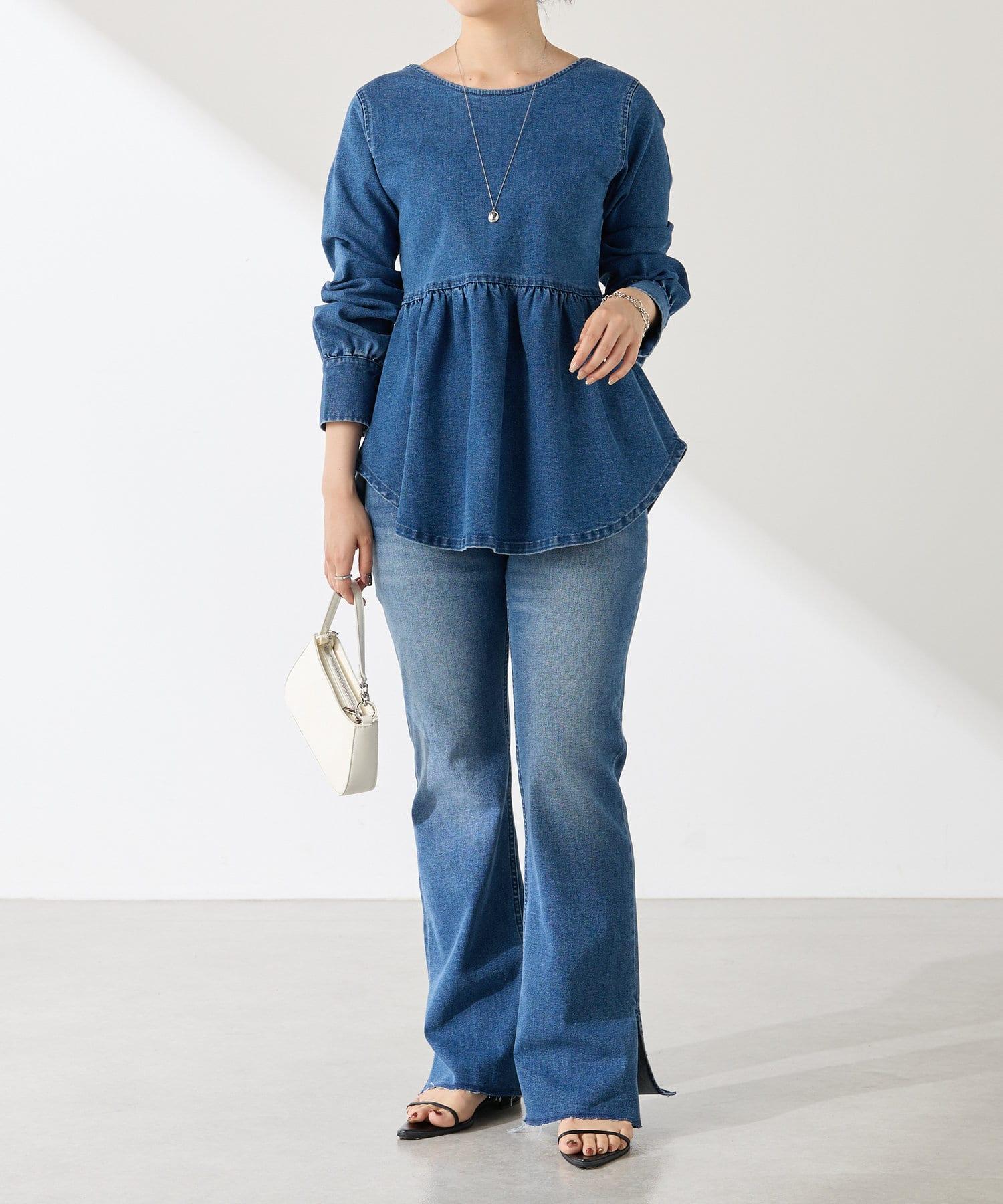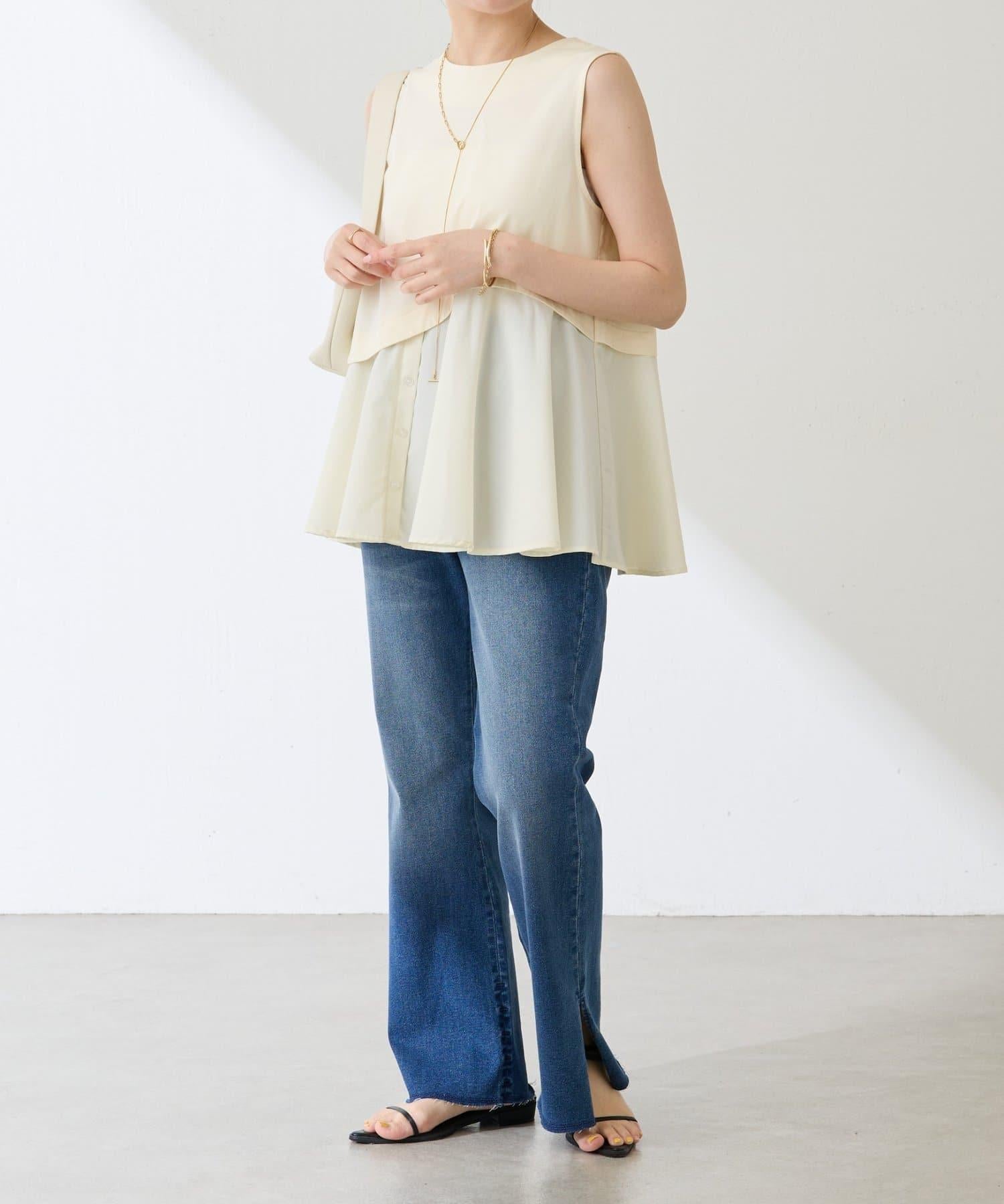 半喇叭設計與長款吊帶衫或連衣裙、襯衫疊穿時也有很好的平衡效果。