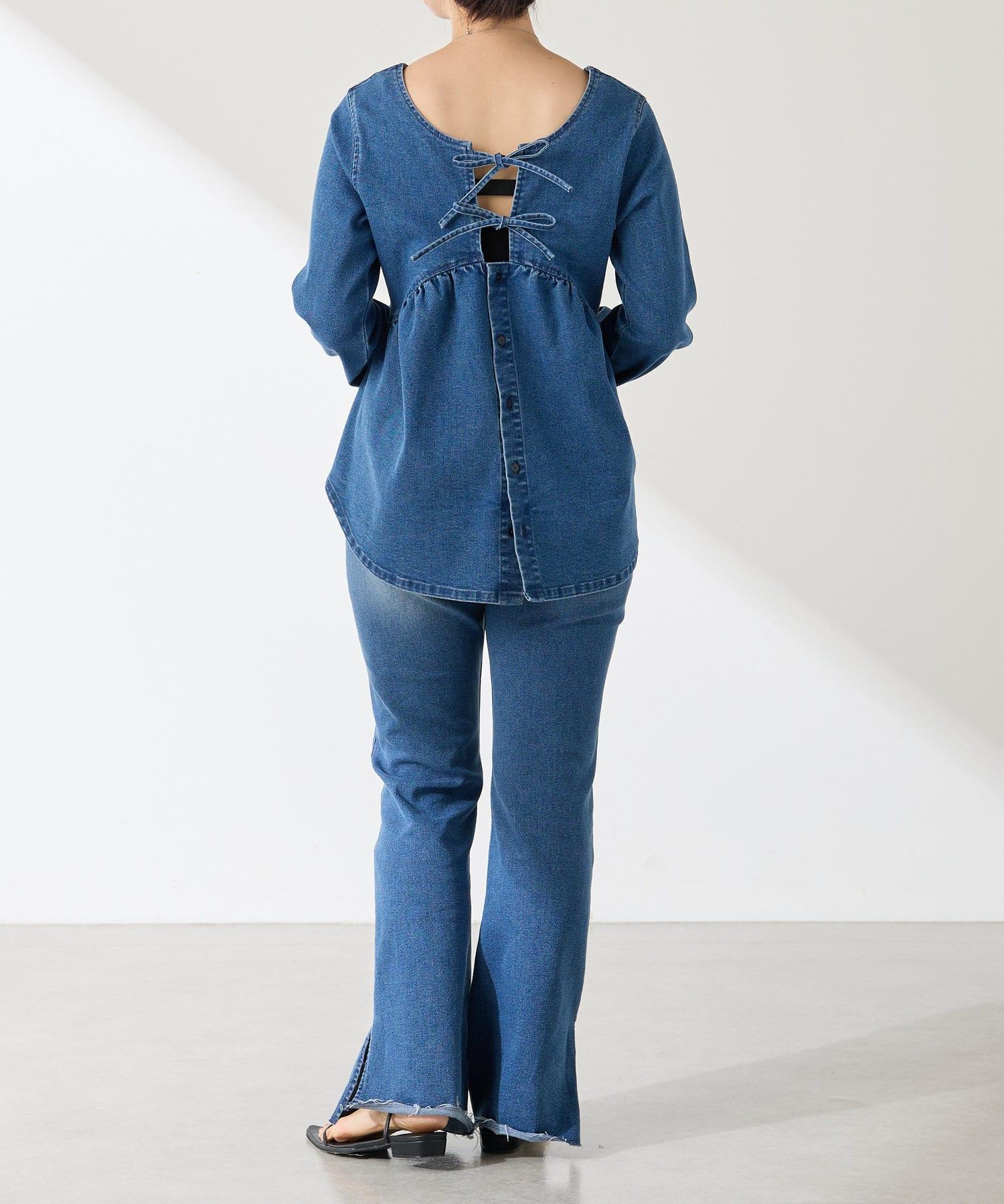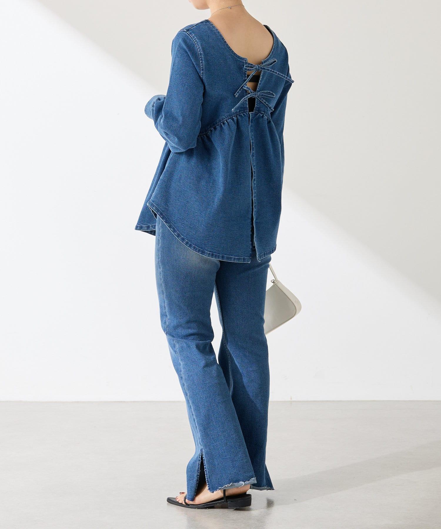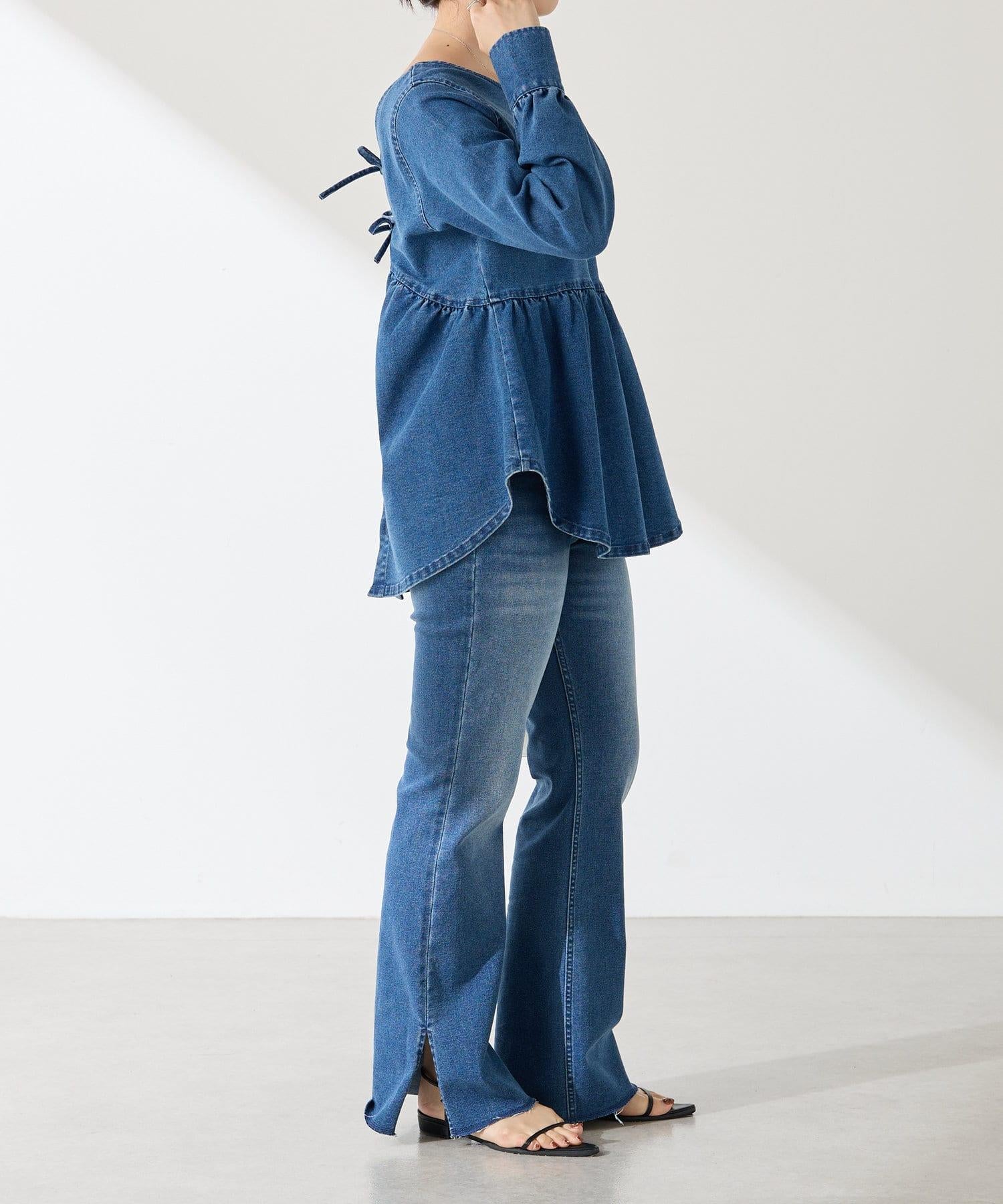 半喇叭設計與長款吊帶衫或連衣裙、襯衫疊穿時也有很好的平衡效果。
