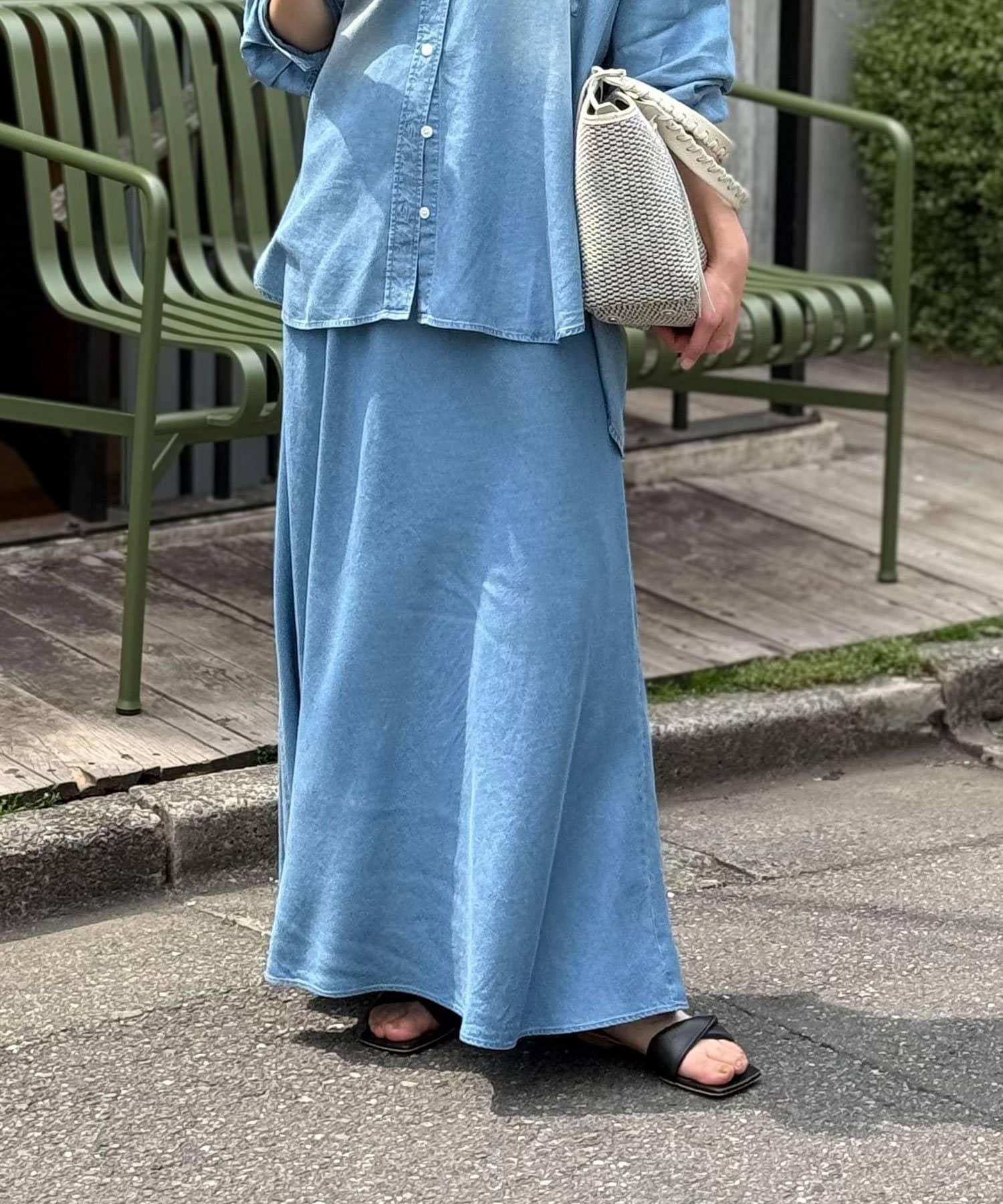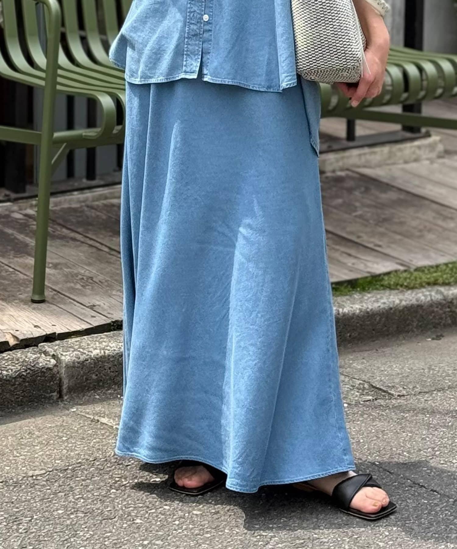 【可套裝】垂墜牛仔斜裙/6月下旬發貨預定