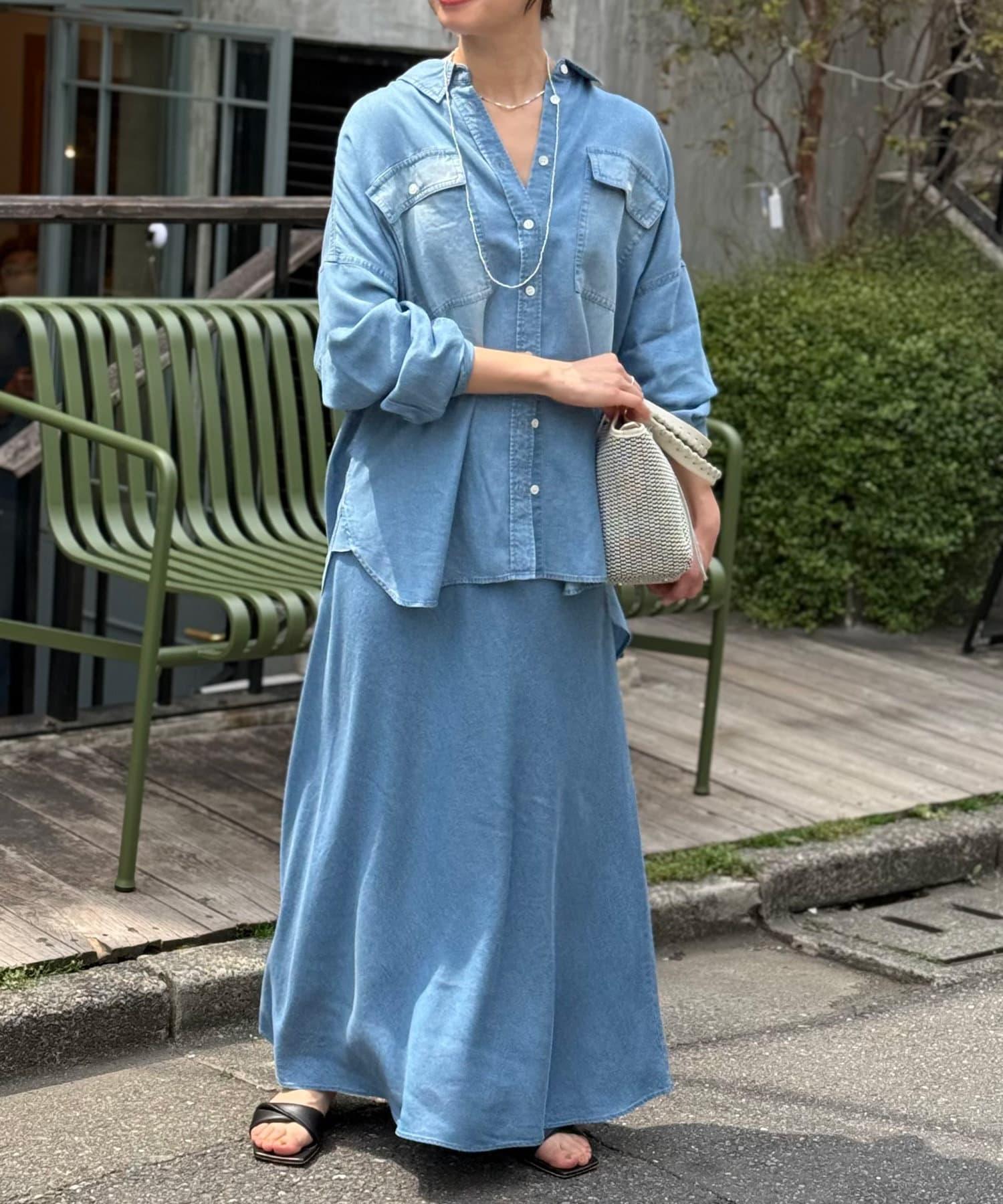 可與同材質的垂墜牛仔寬鬆襯衫(RDZ1051604A0002)搭配穿著。