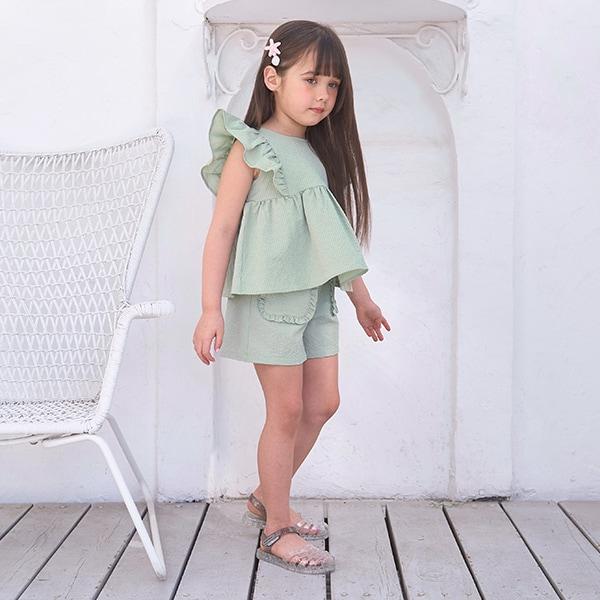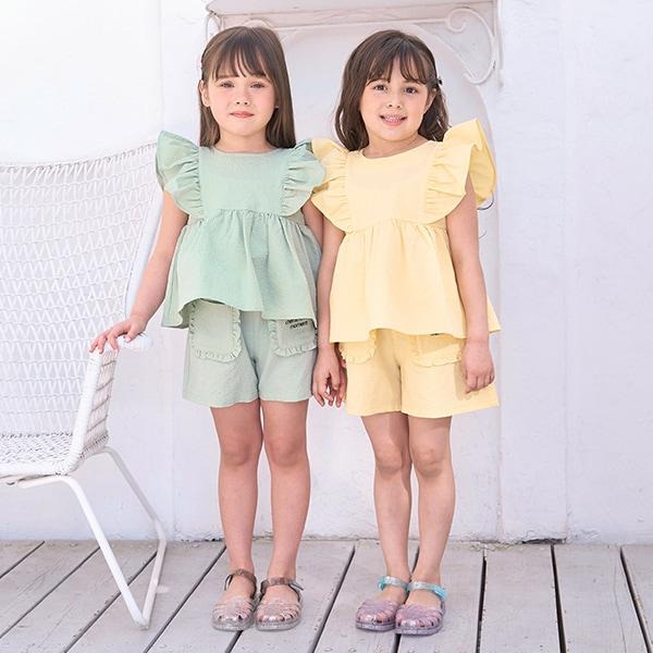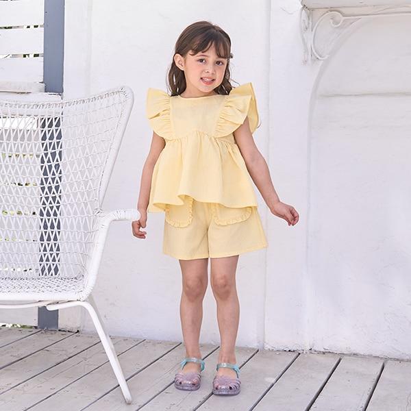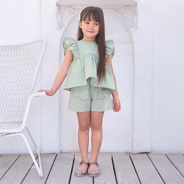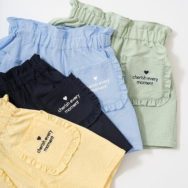 這款帶荷葉邊口袋的短褲集可愛與舒適於一身。