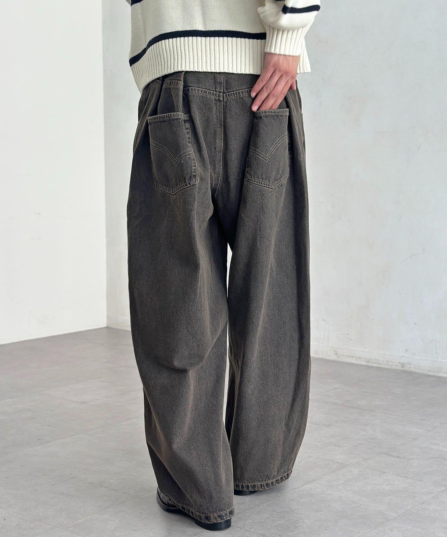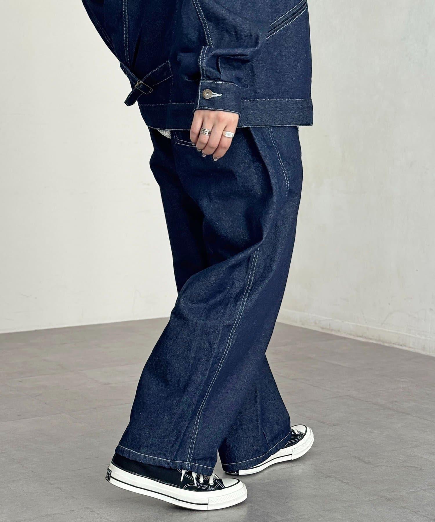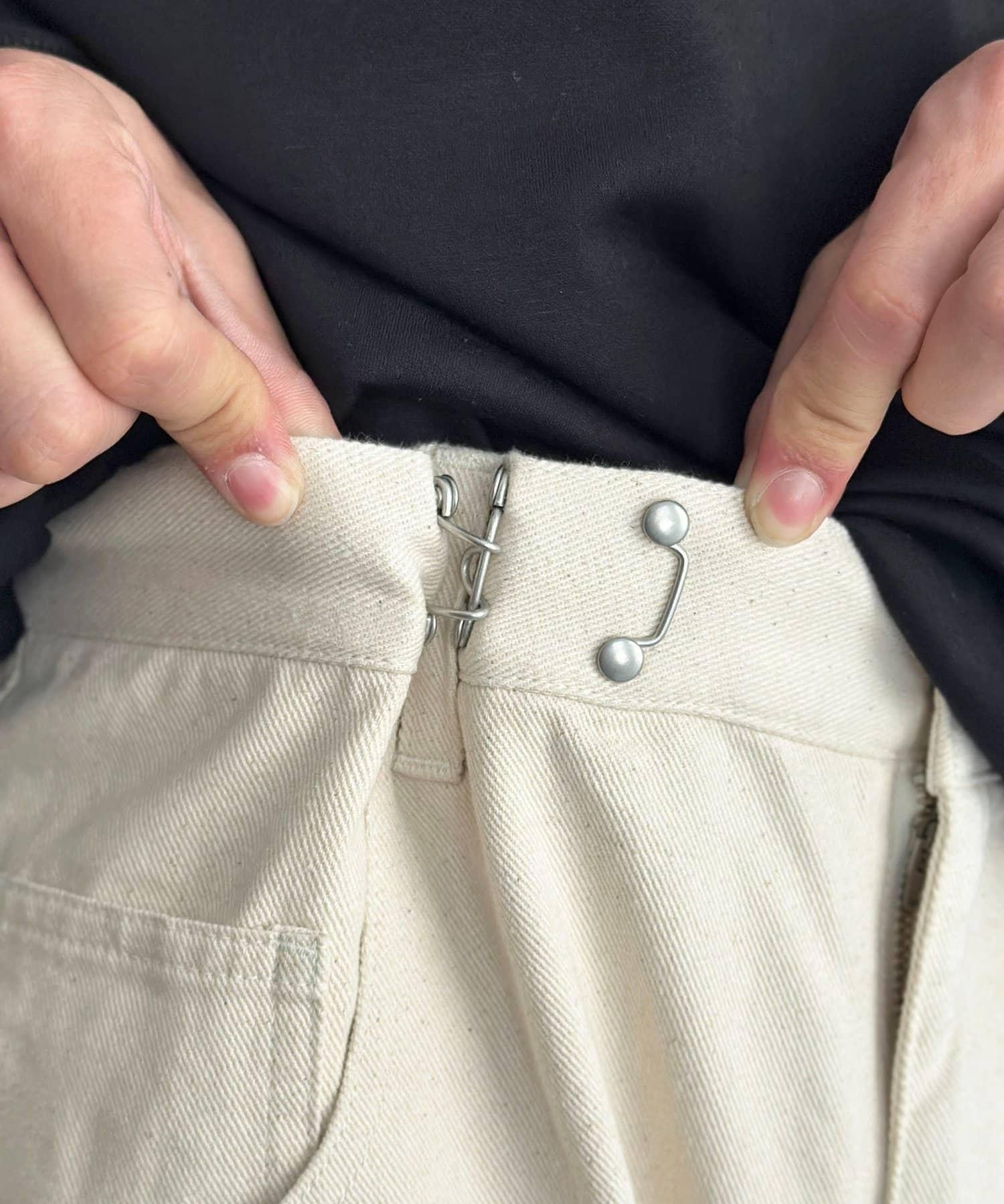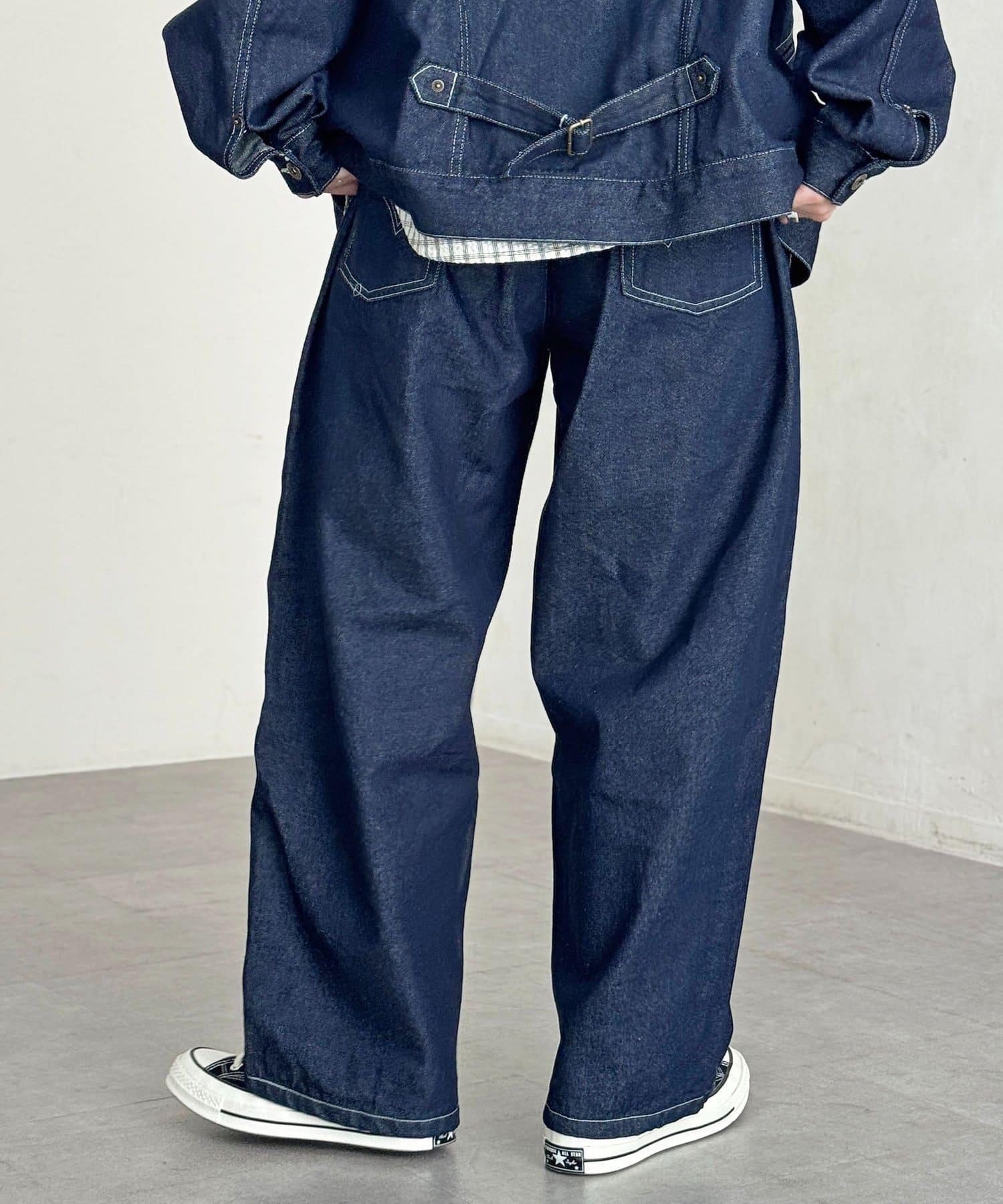 【可成套搭配】腰部鉤扣後褶牛仔褲