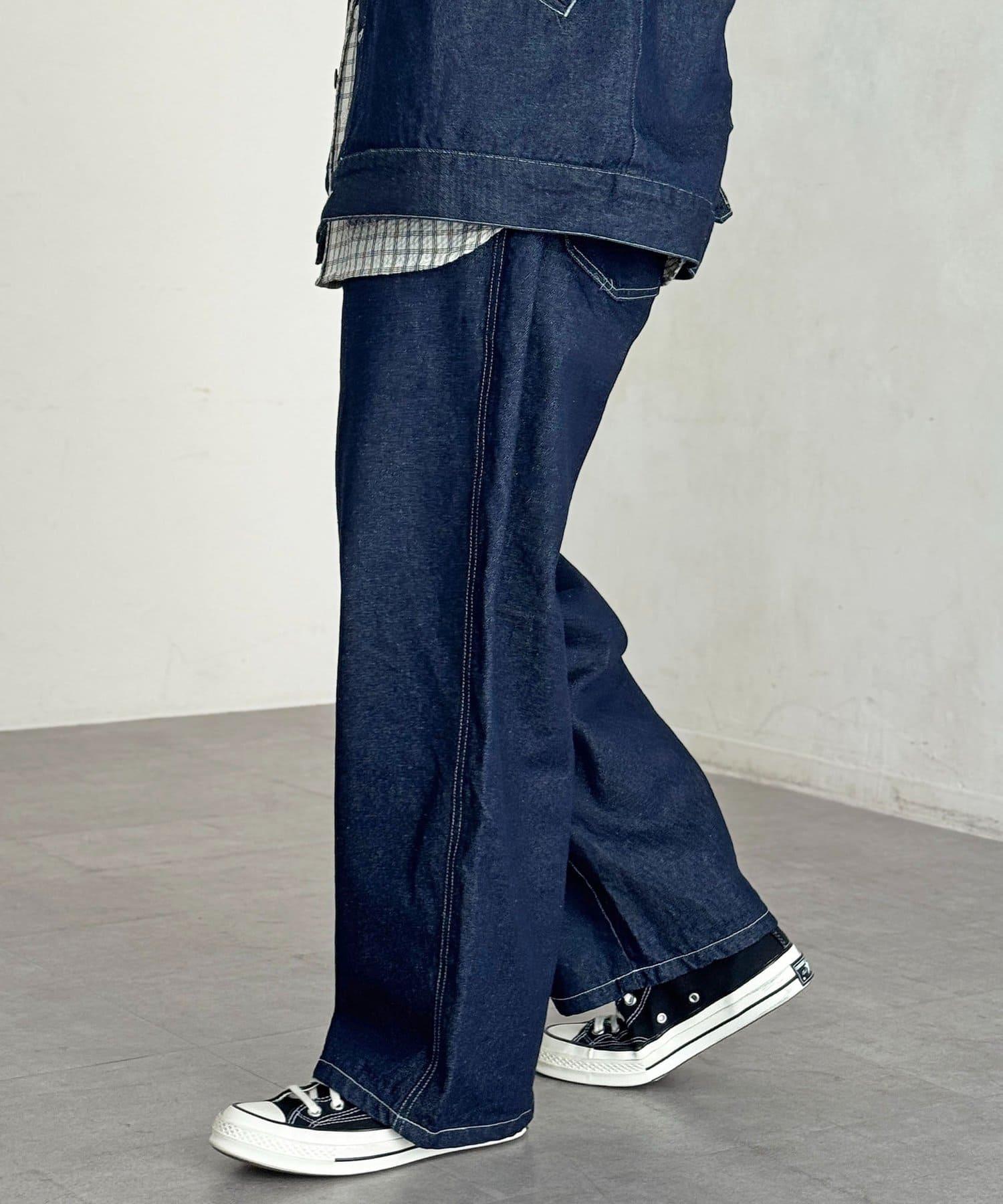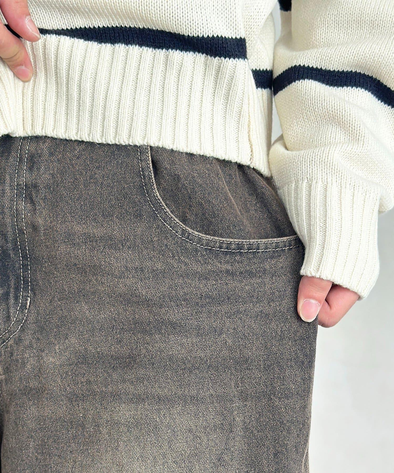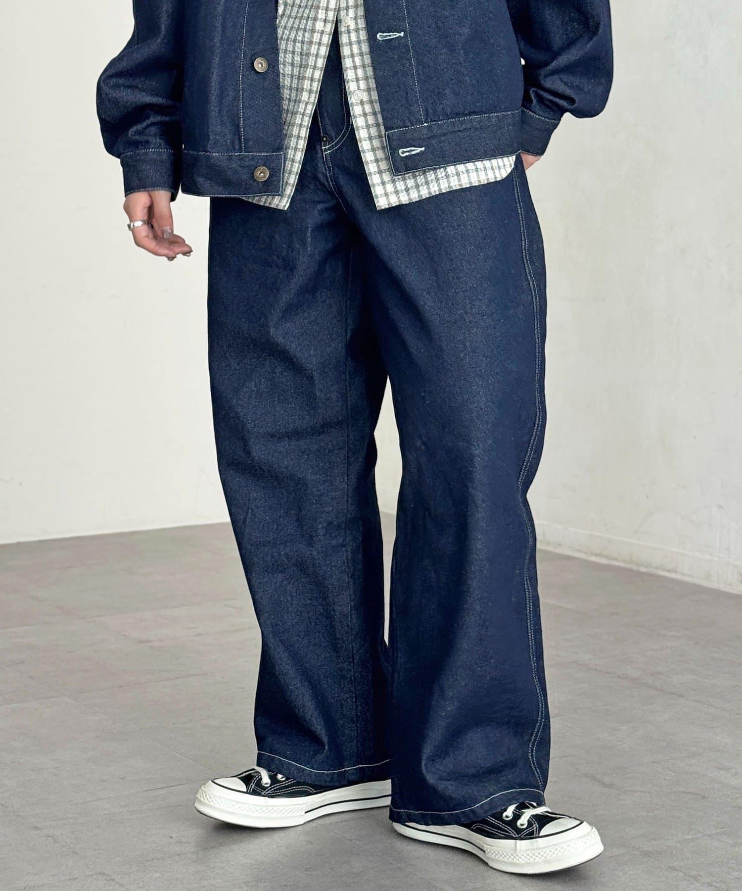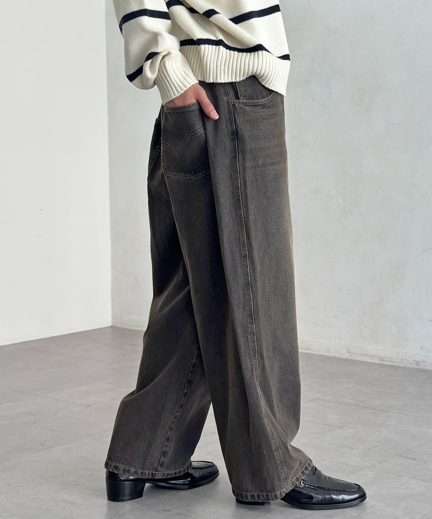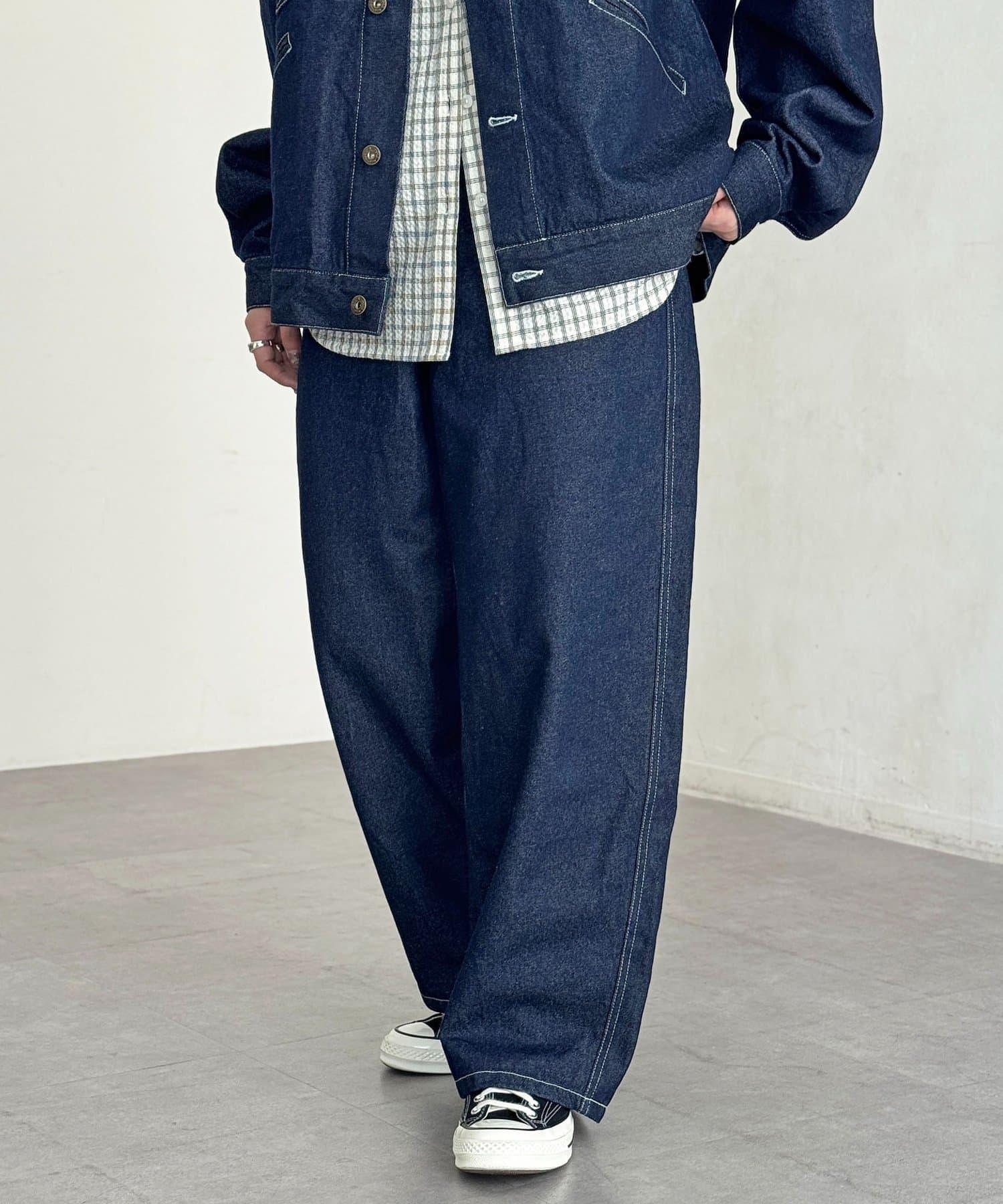 【可成套搭配】腰部鉤扣後褶牛仔褲