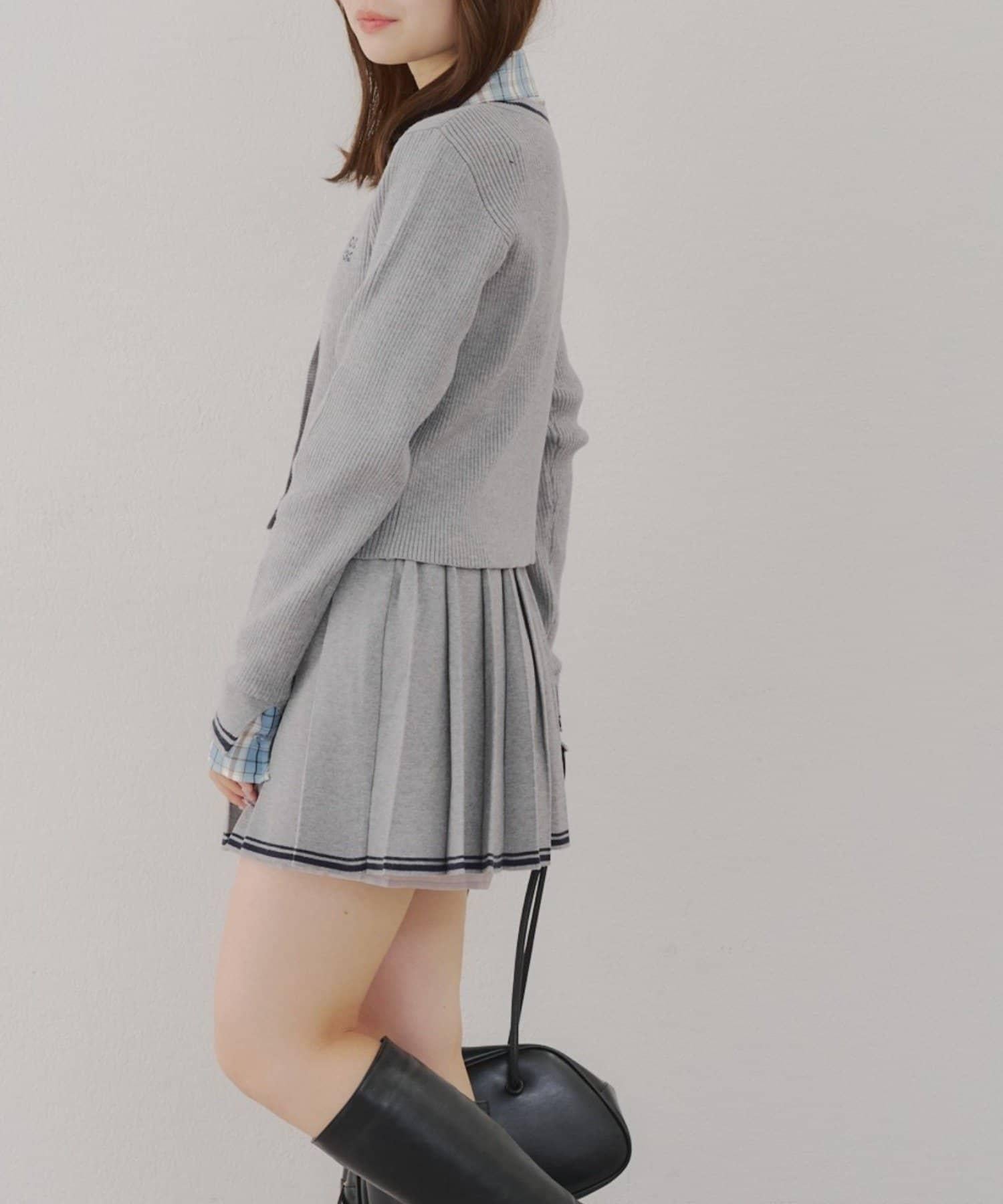與同材質的裙子搭配,整體感十足的套裝風格。搭配長靴或休閒鞋,盡顯成熟氣質。