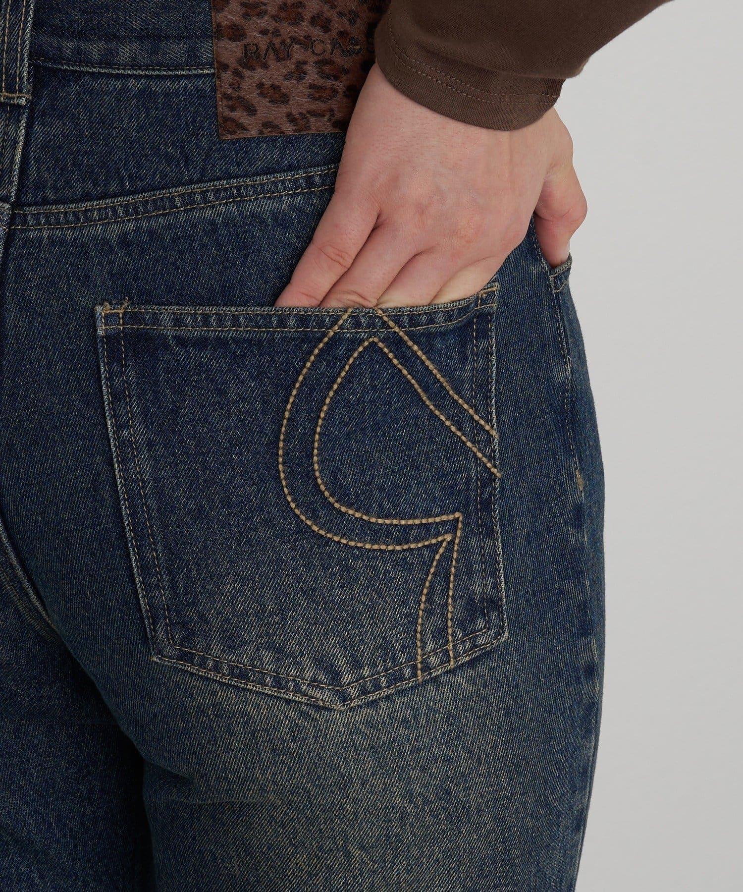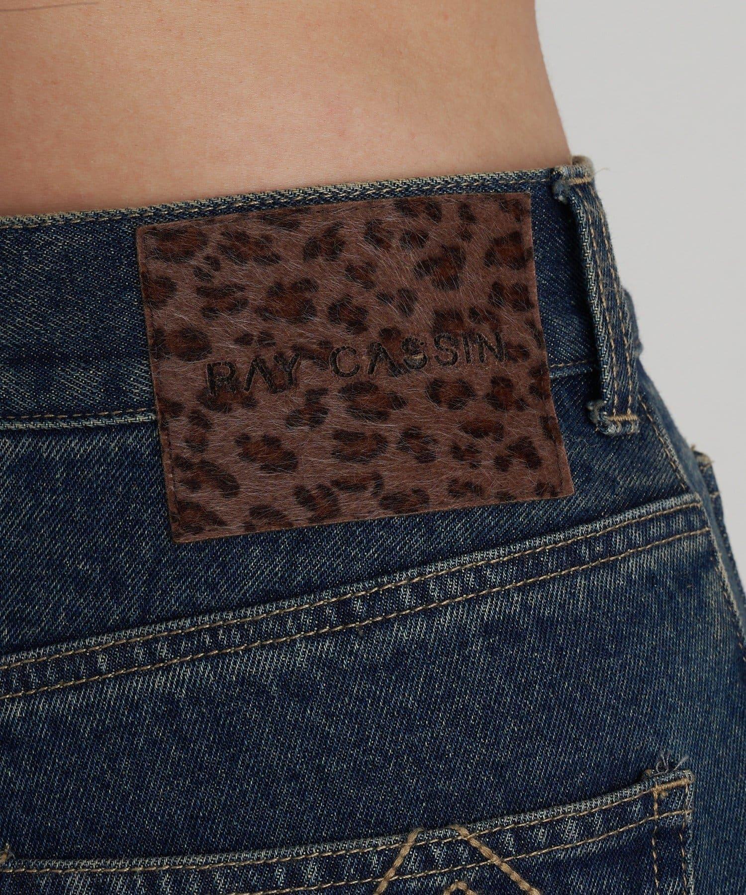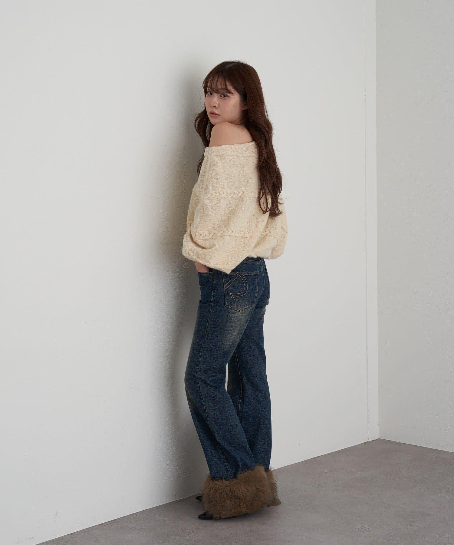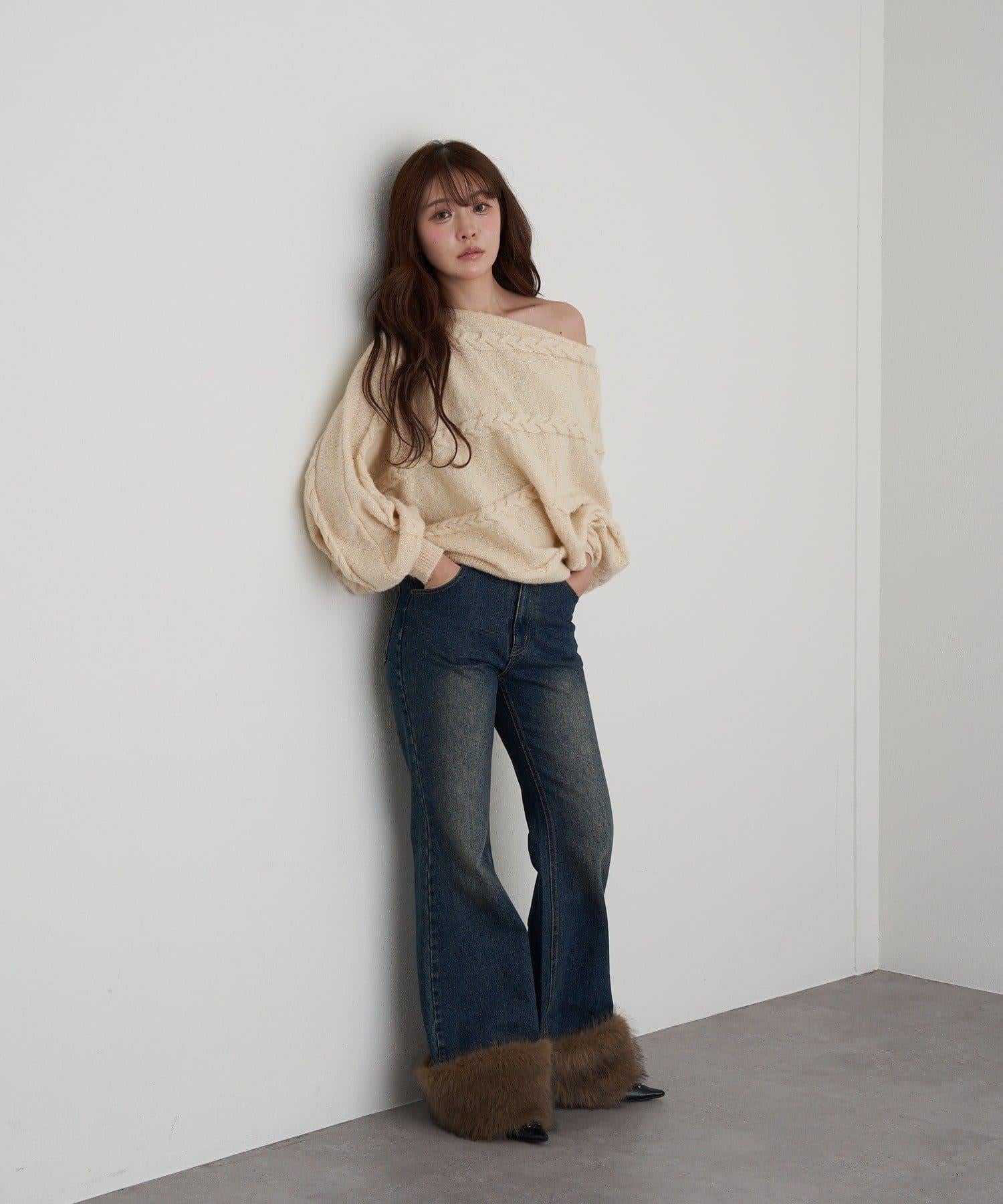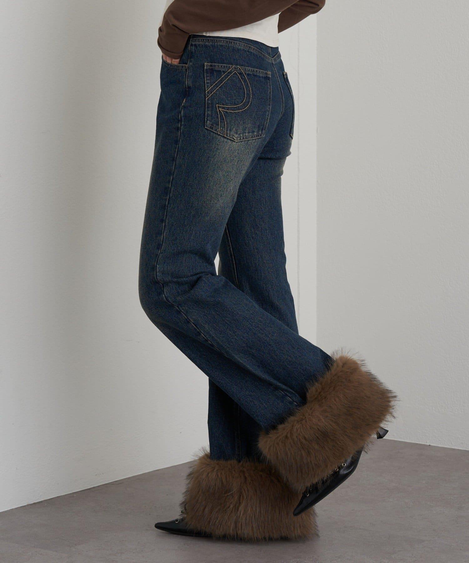 這款單品是一條帶有皮草裝飾的牛仔褲。