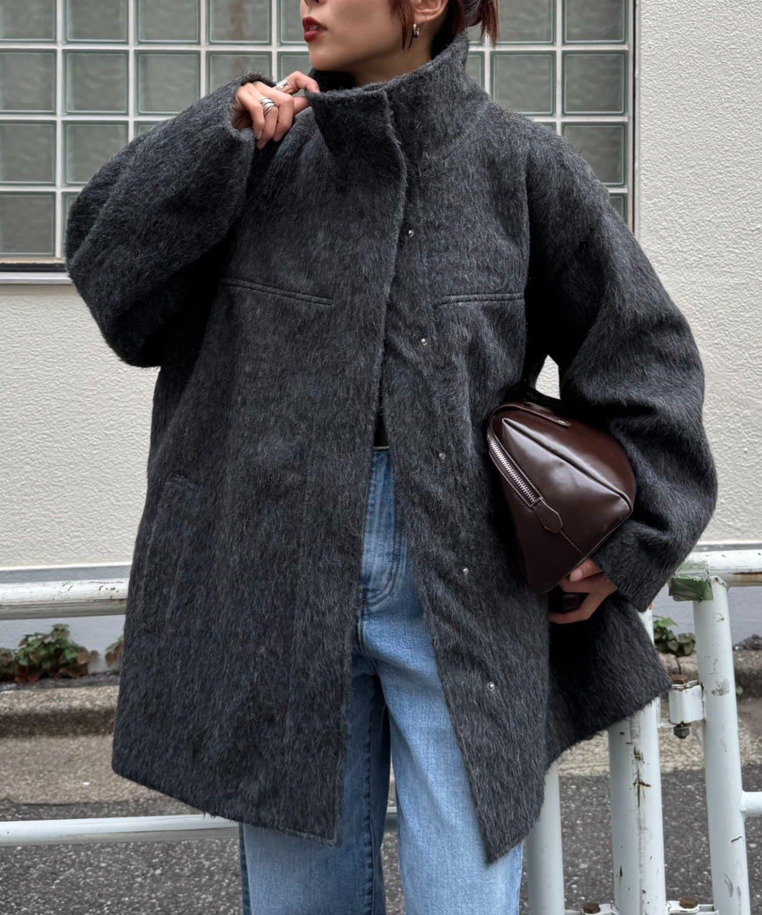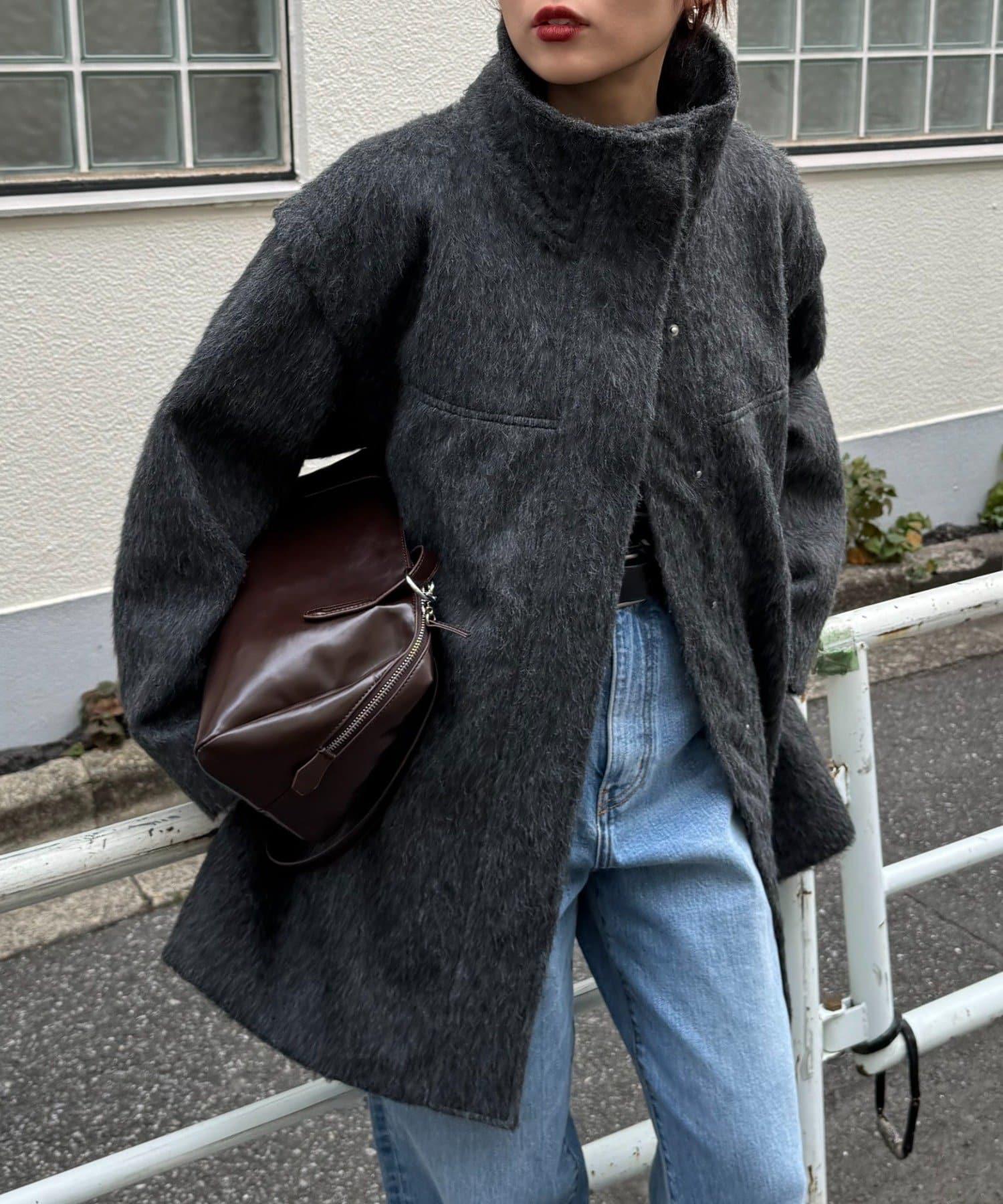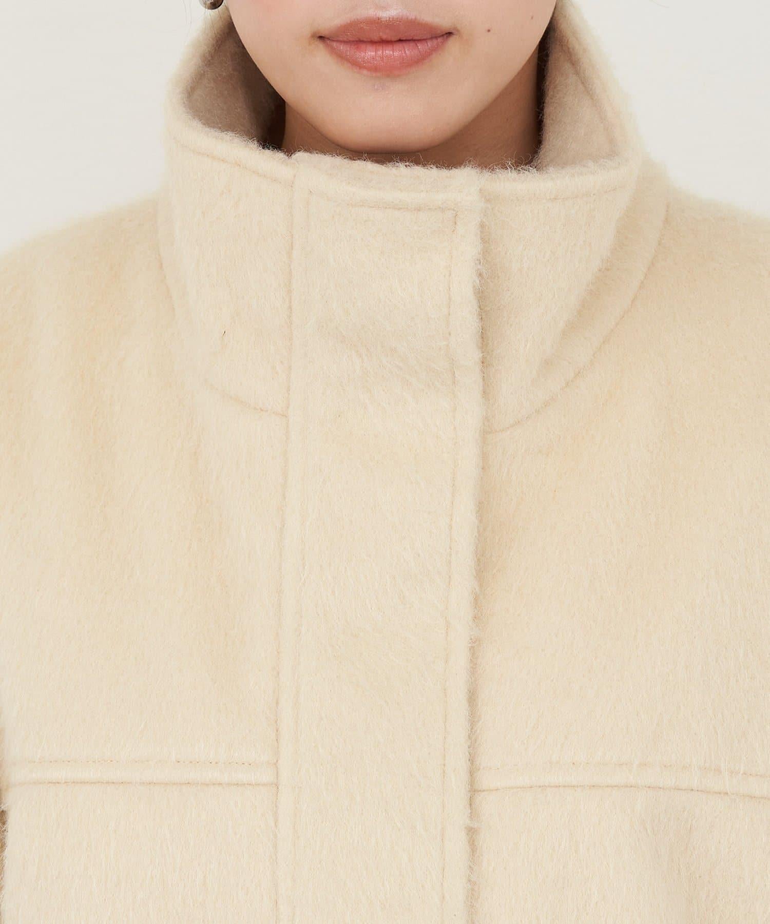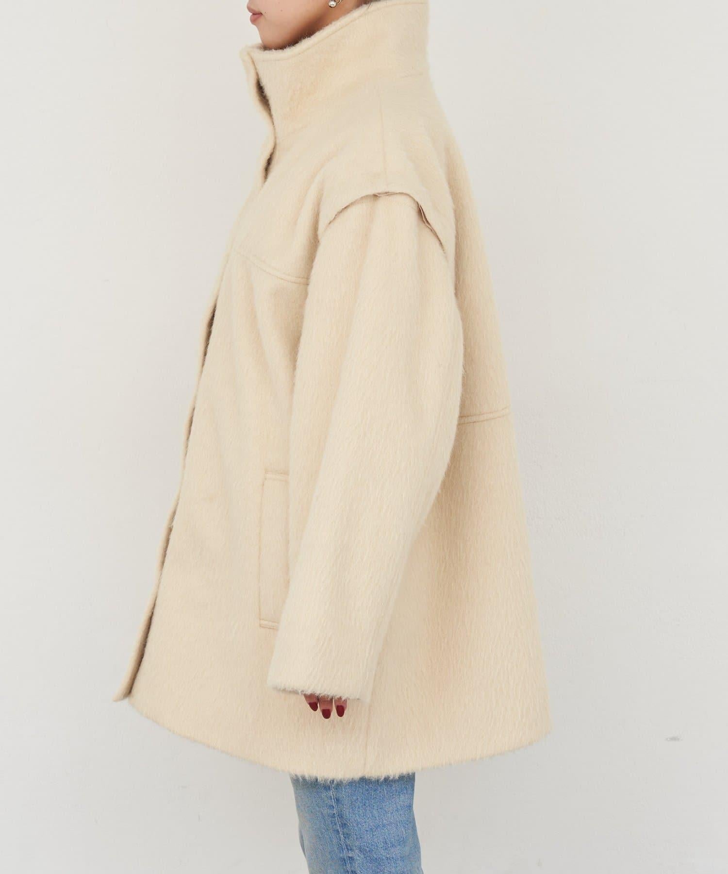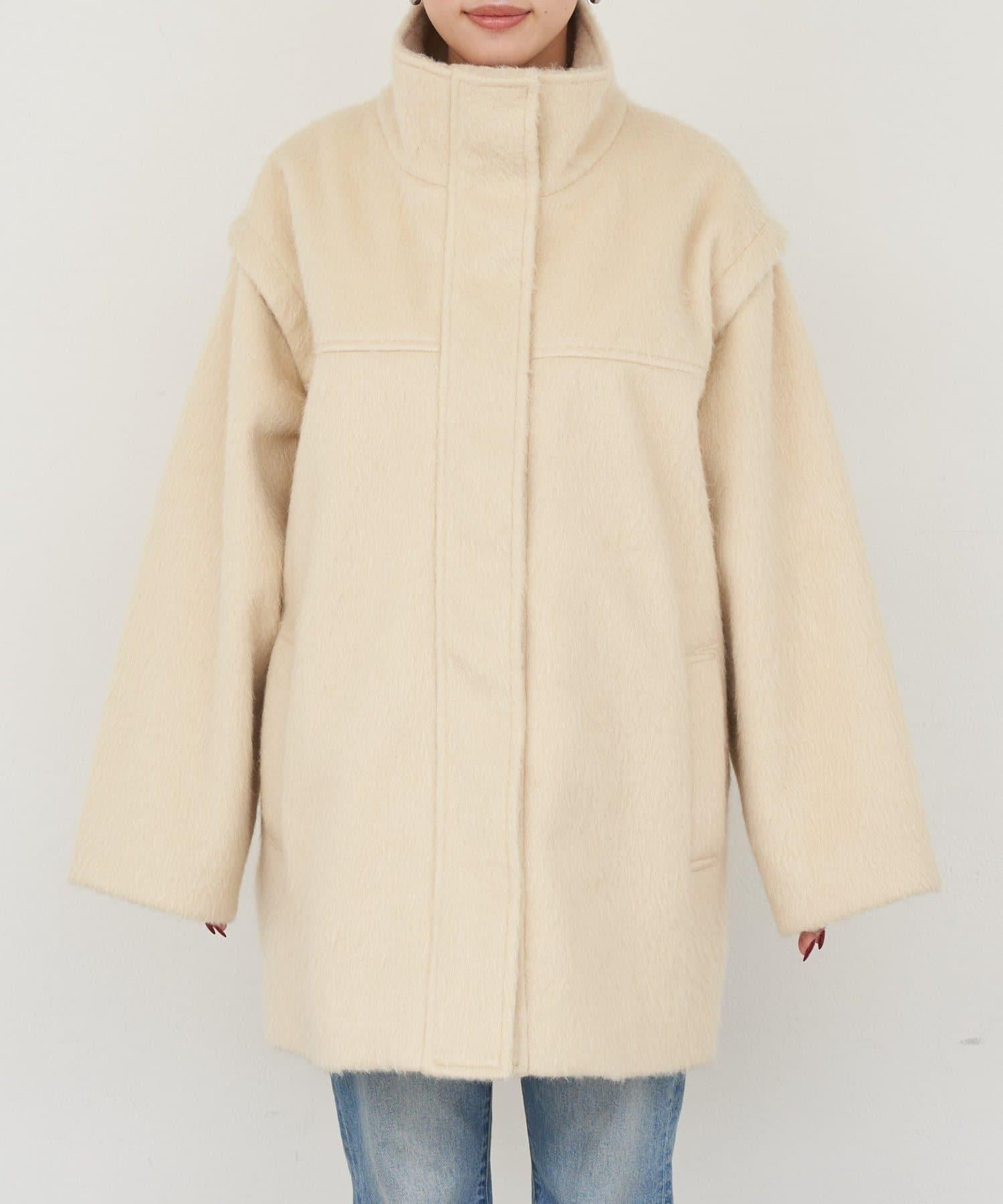 立領半身大衣,採用適度優雅的短絨毛面料製成。