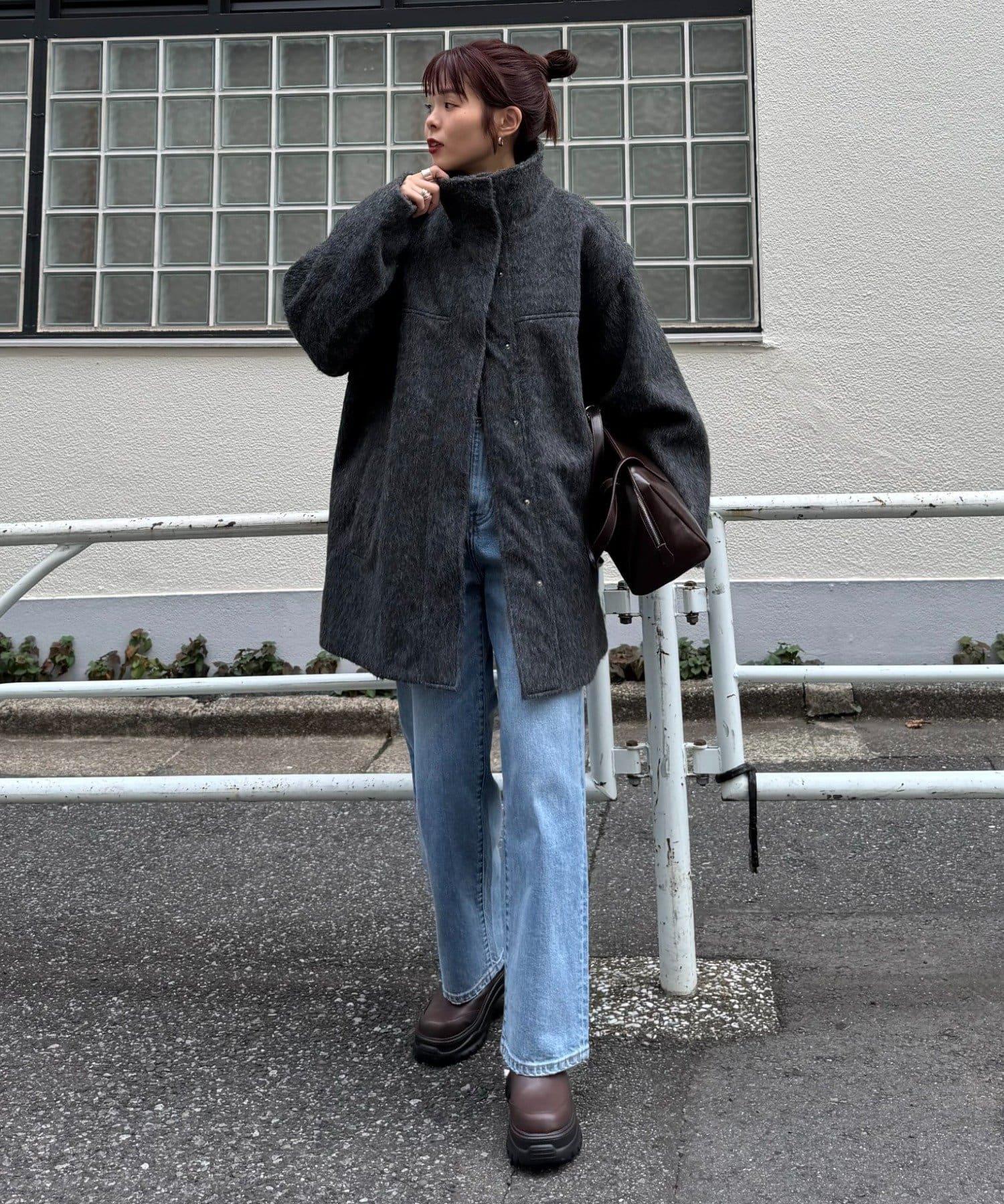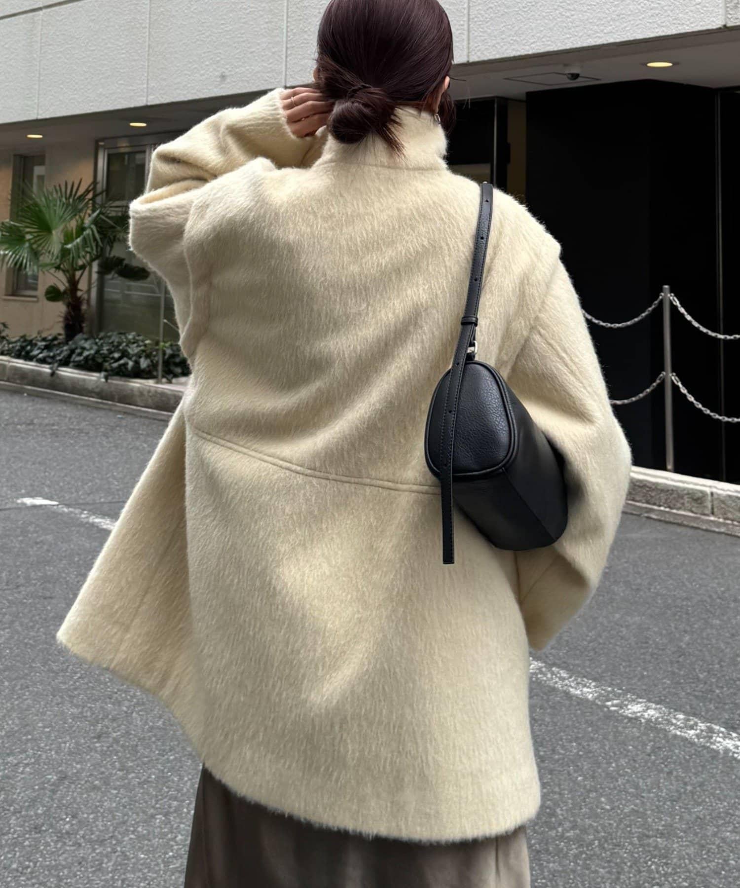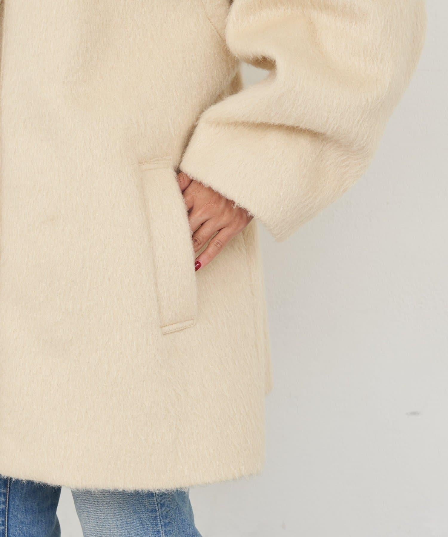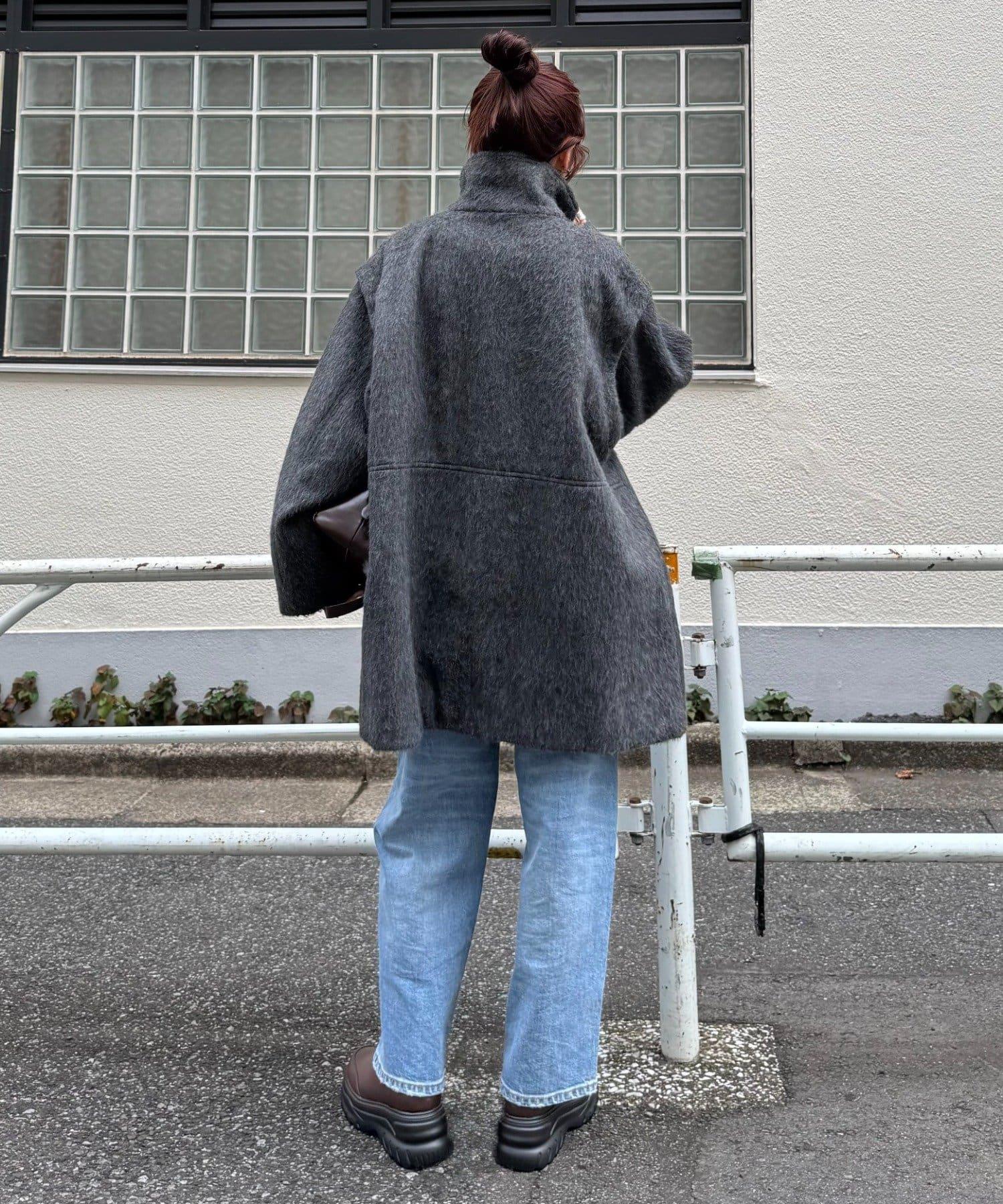 立領半身大衣,採用適度優雅的短絨毛面料製成。