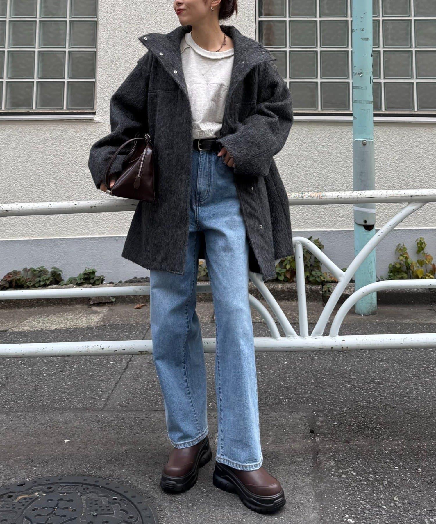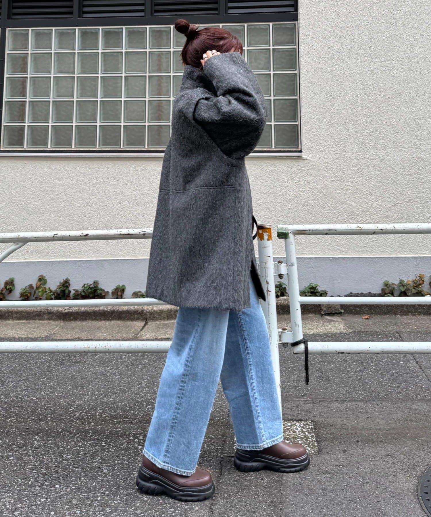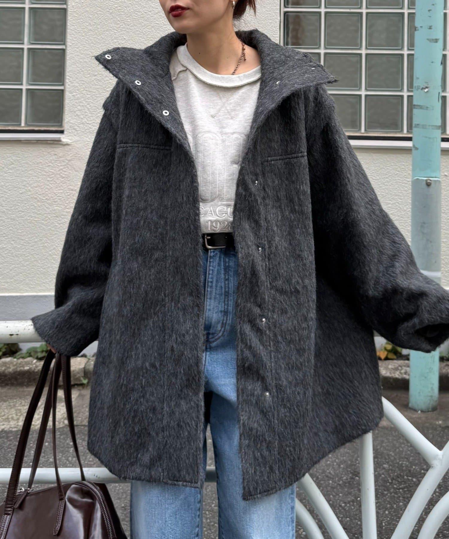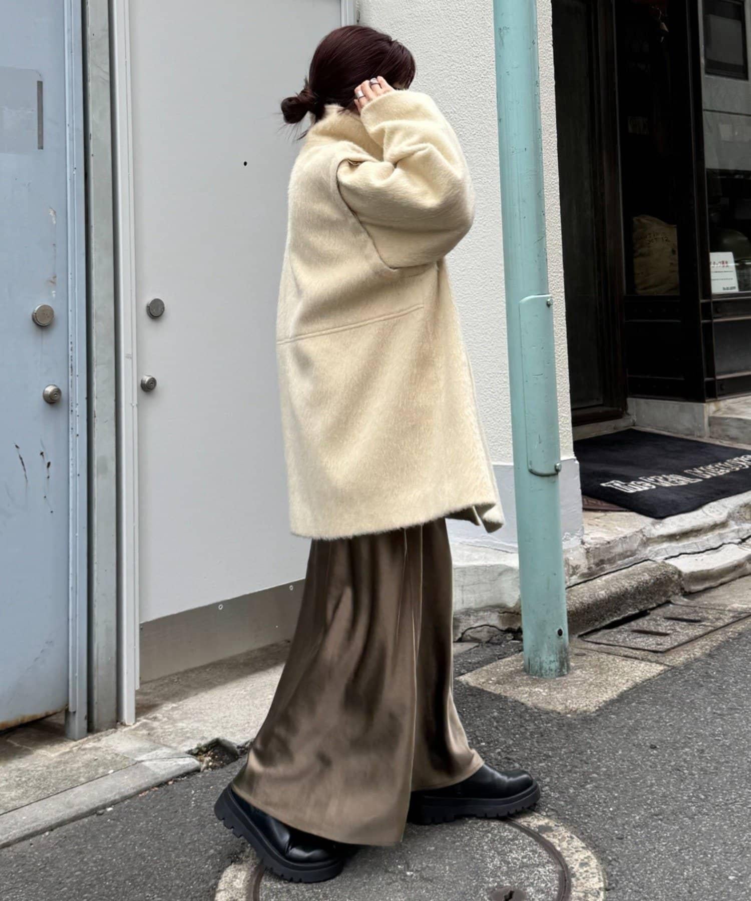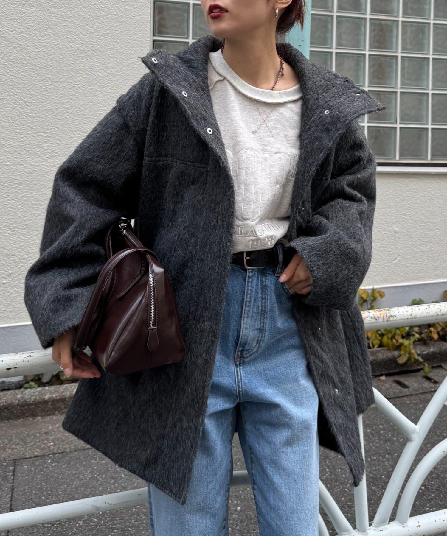 立領半身大衣,採用適度優雅的短絨毛面料製成。