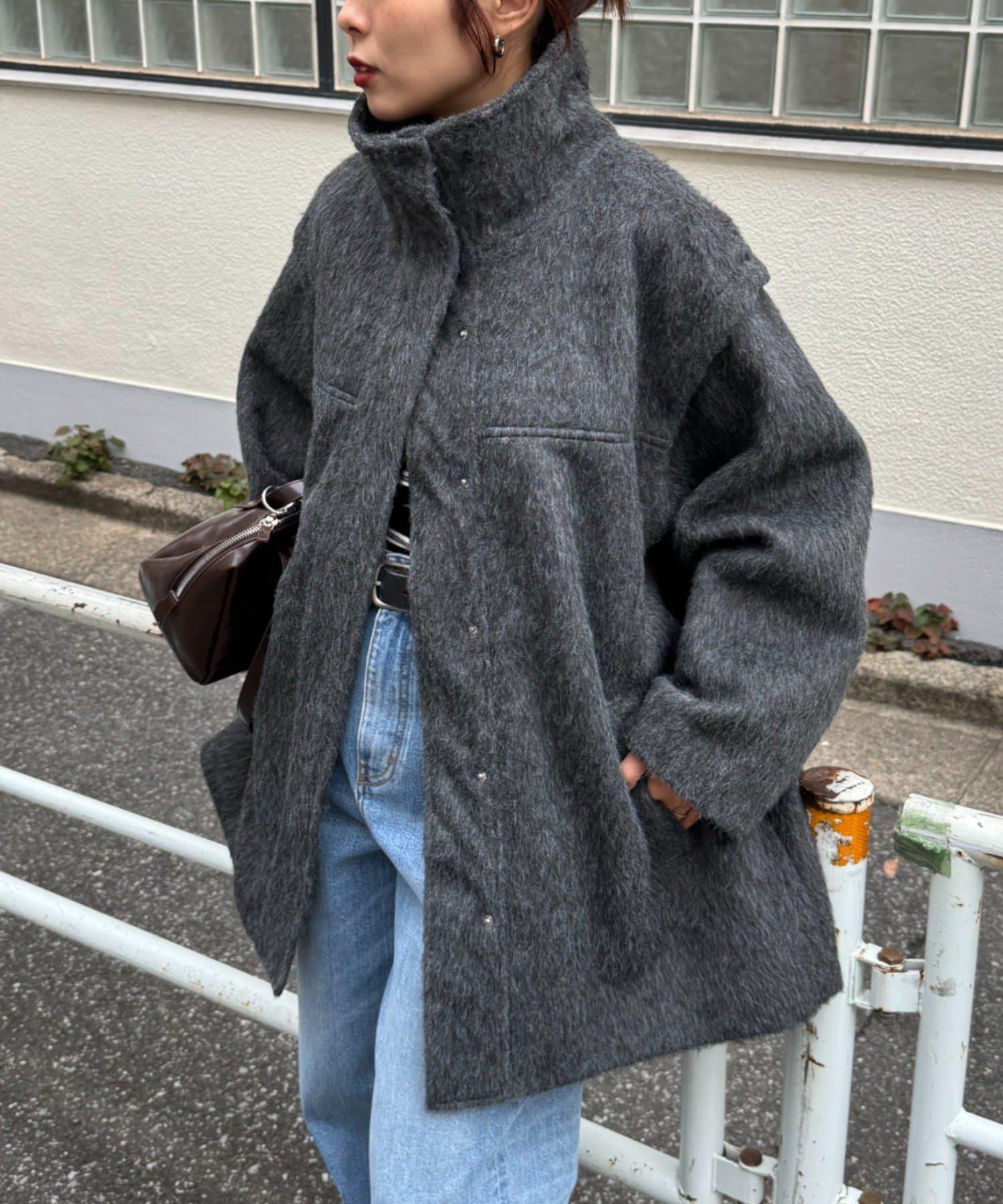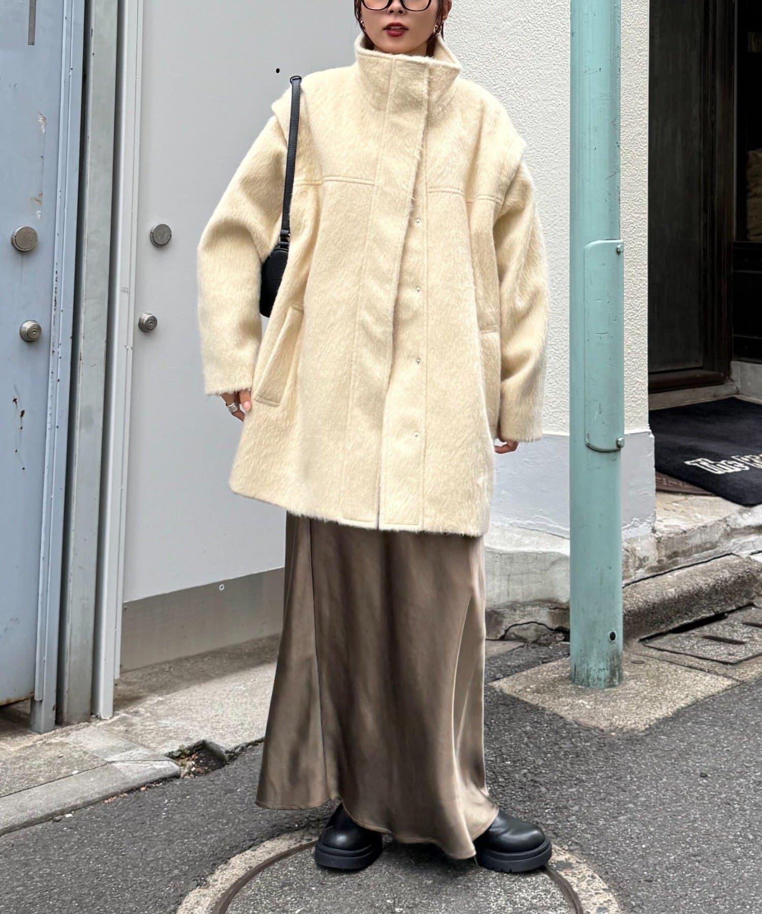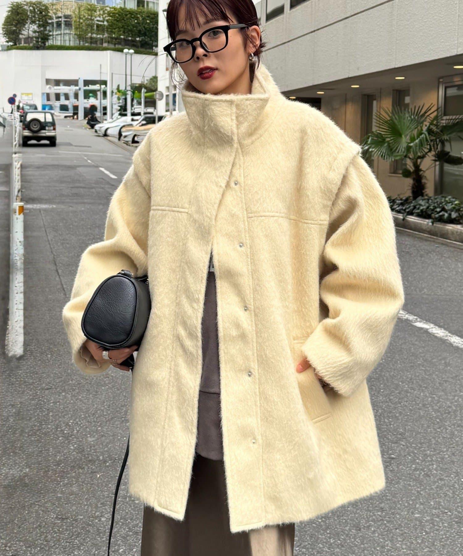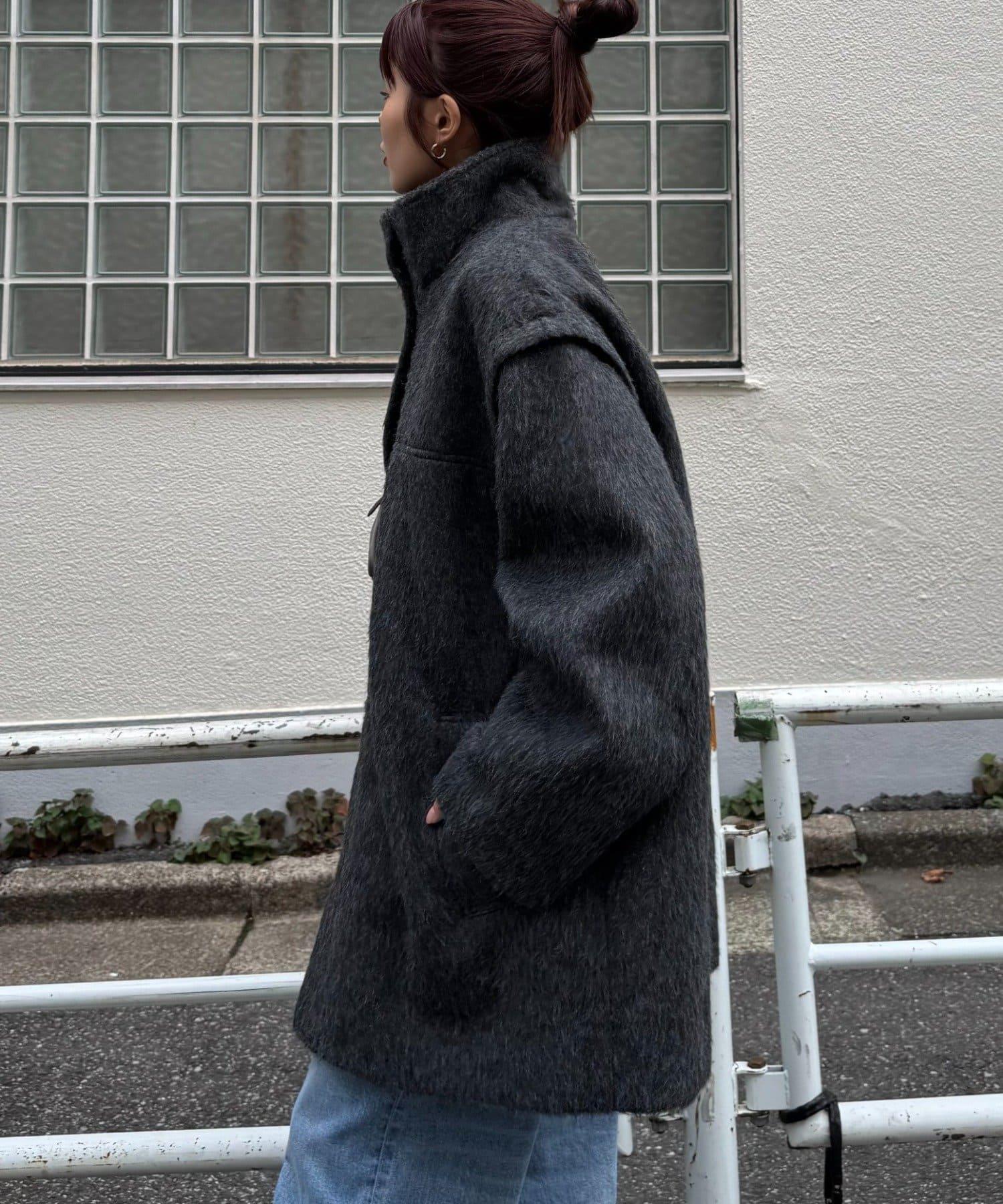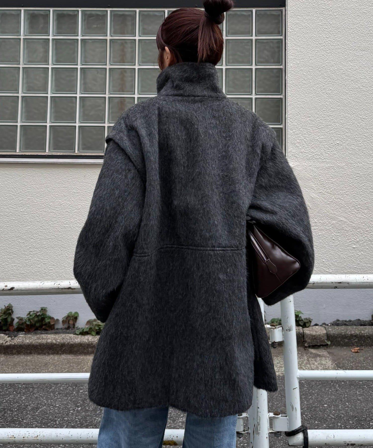 預約商品可拆卸毛絨袖立領中長款外套
