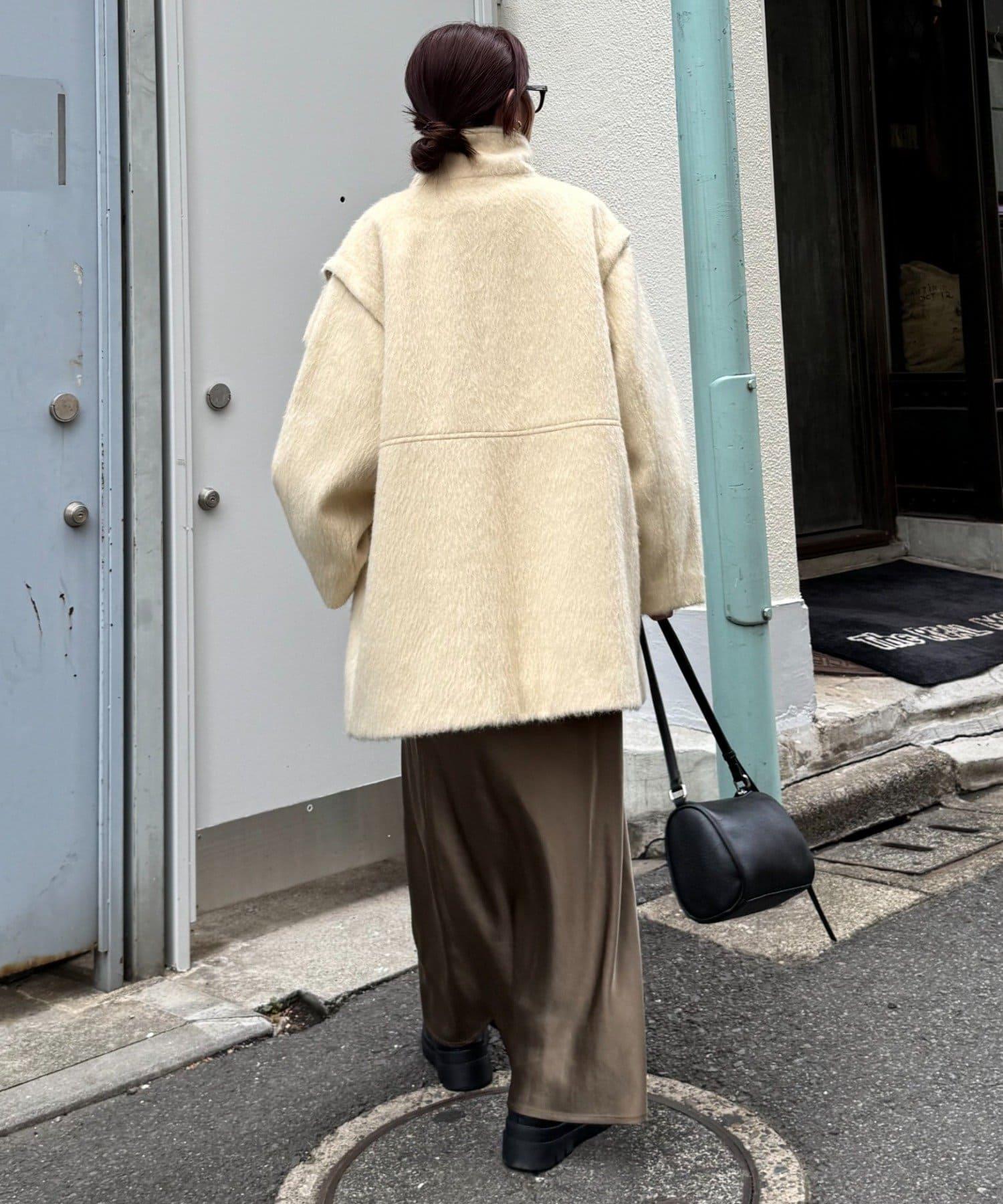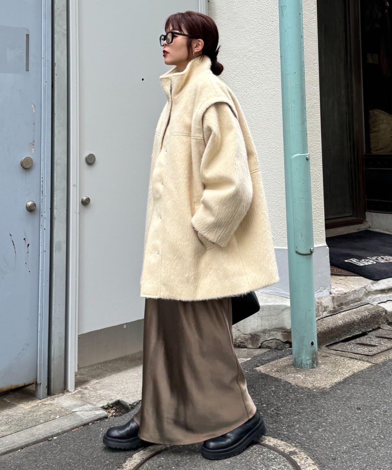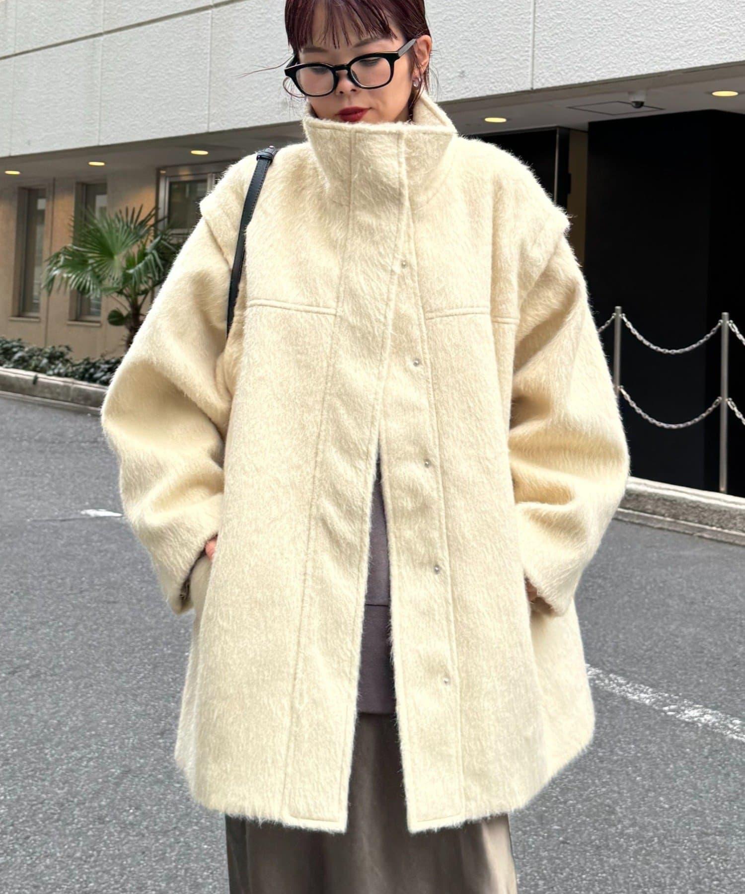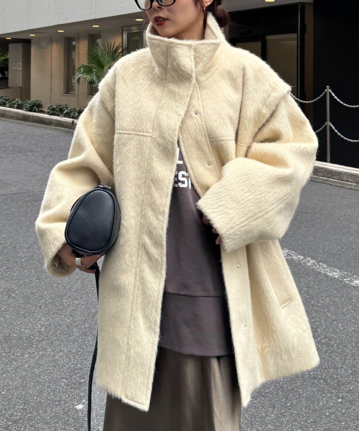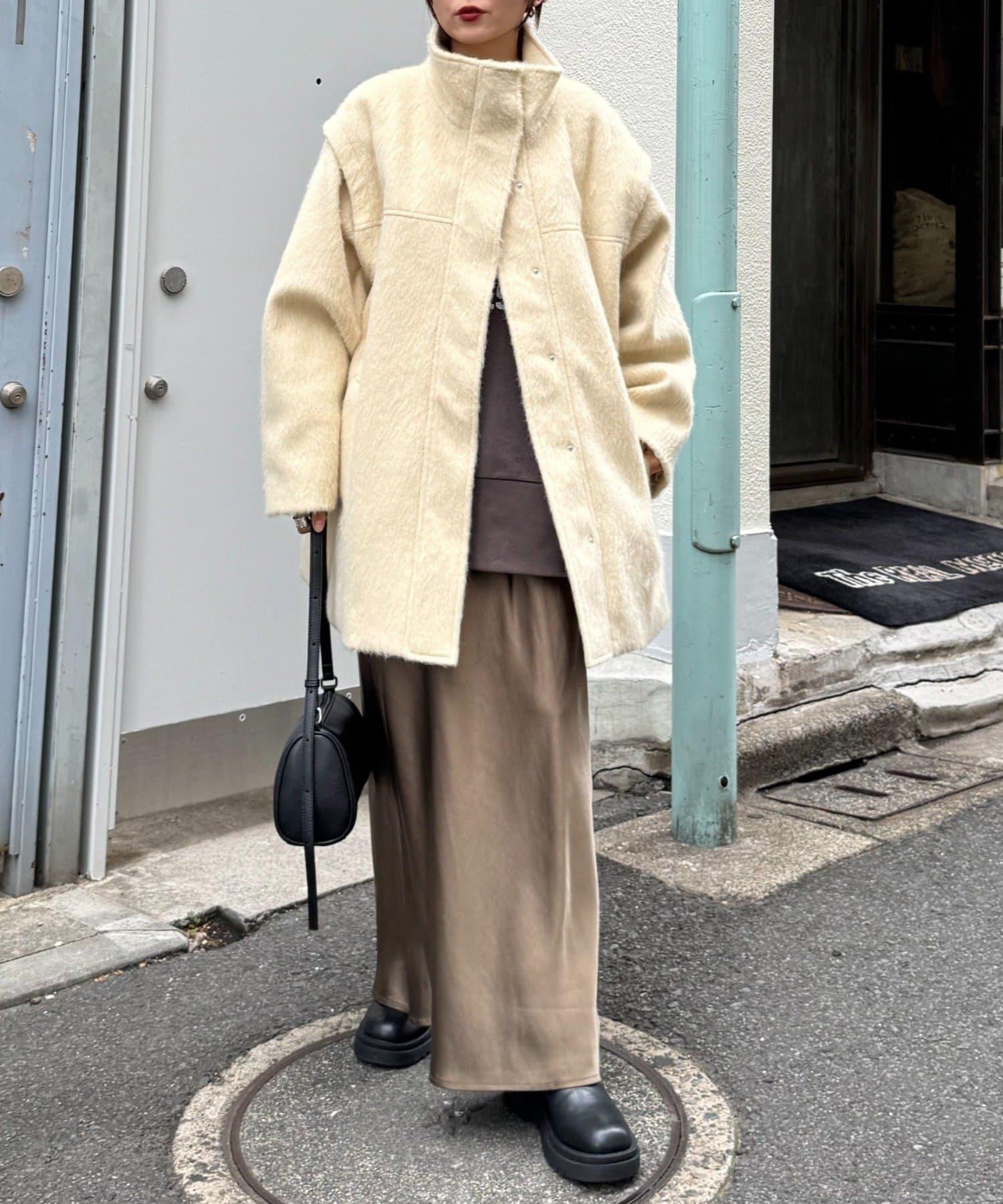 預約商品可拆卸毛絨袖立領中長款外套