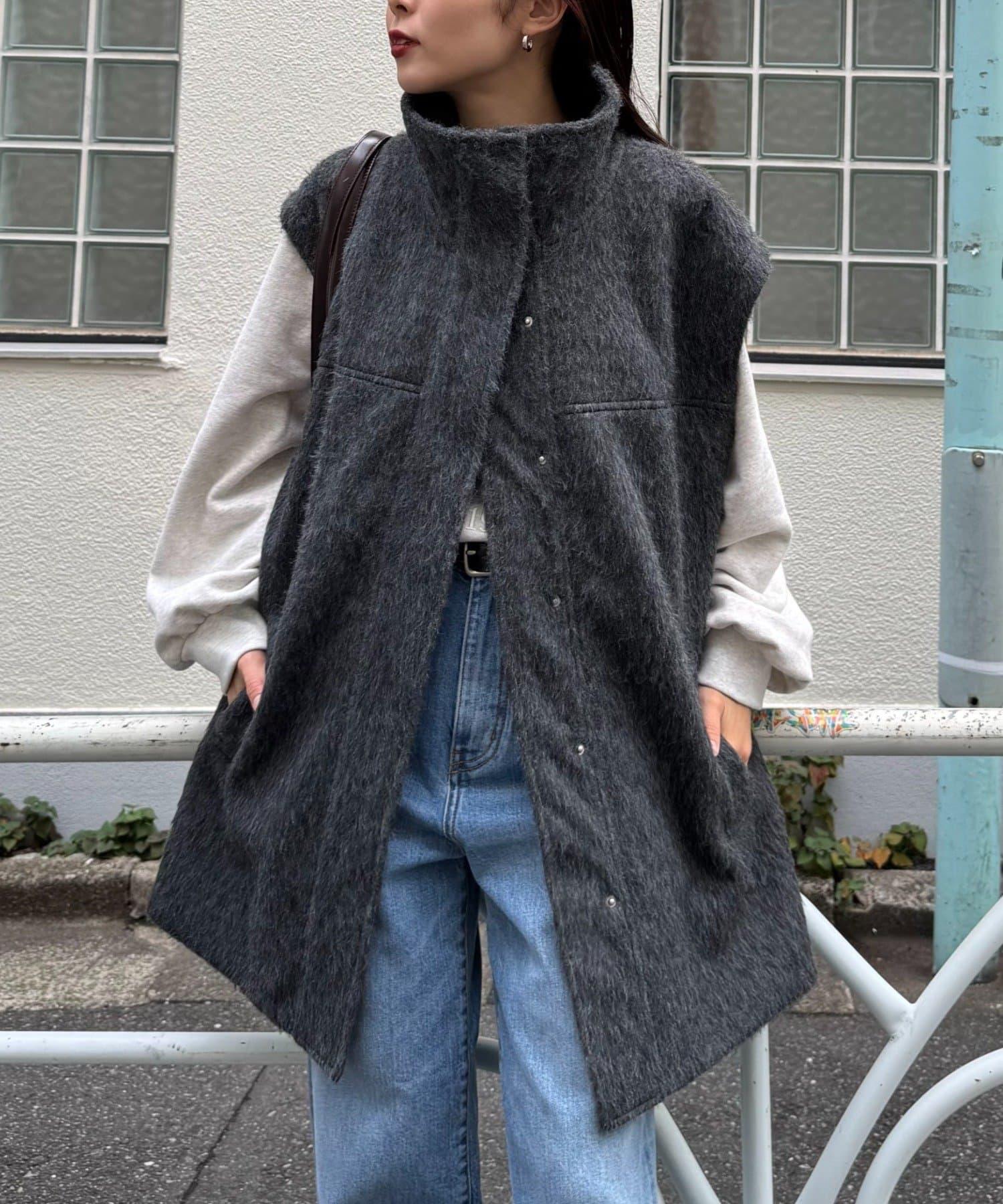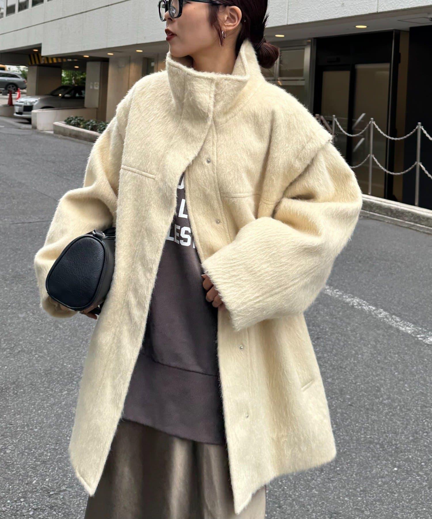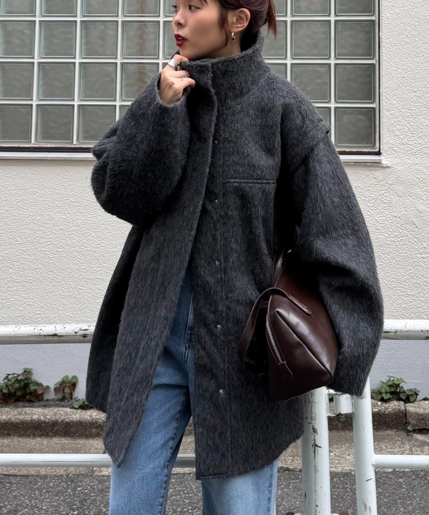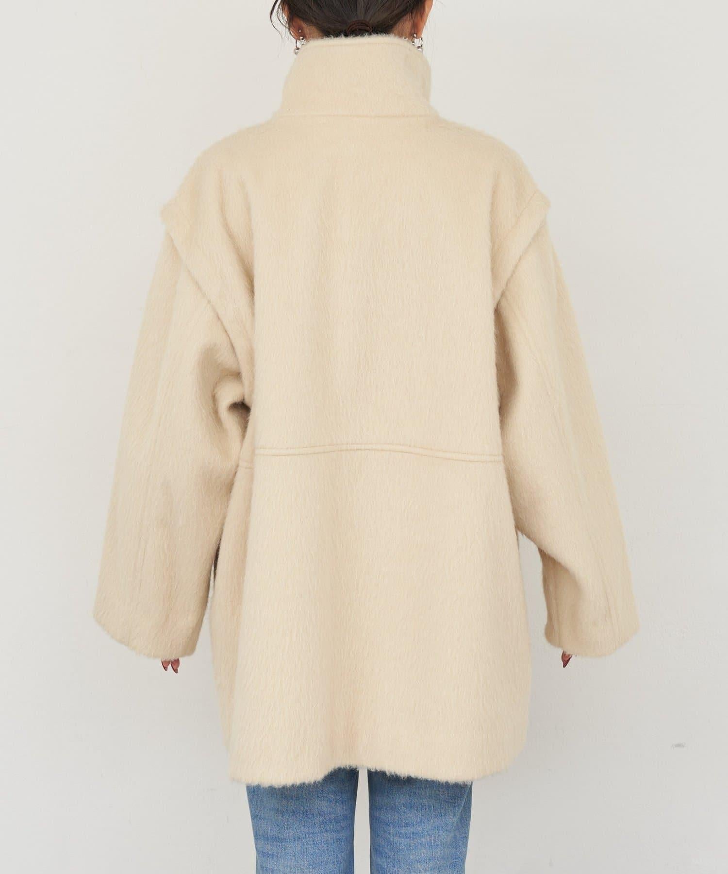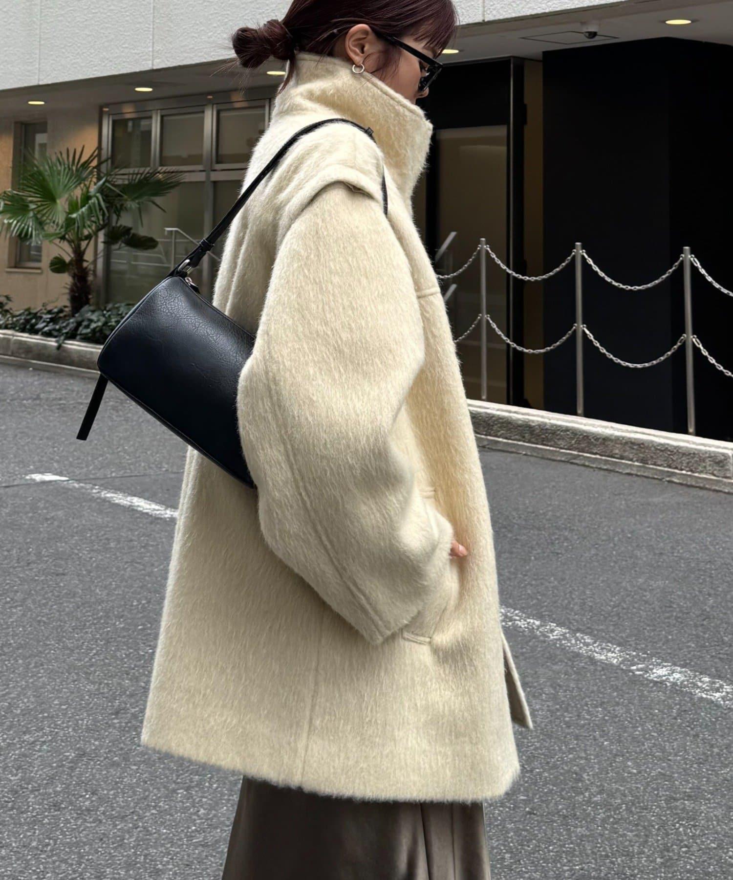 預約商品可拆卸毛絨袖立領中長款外套