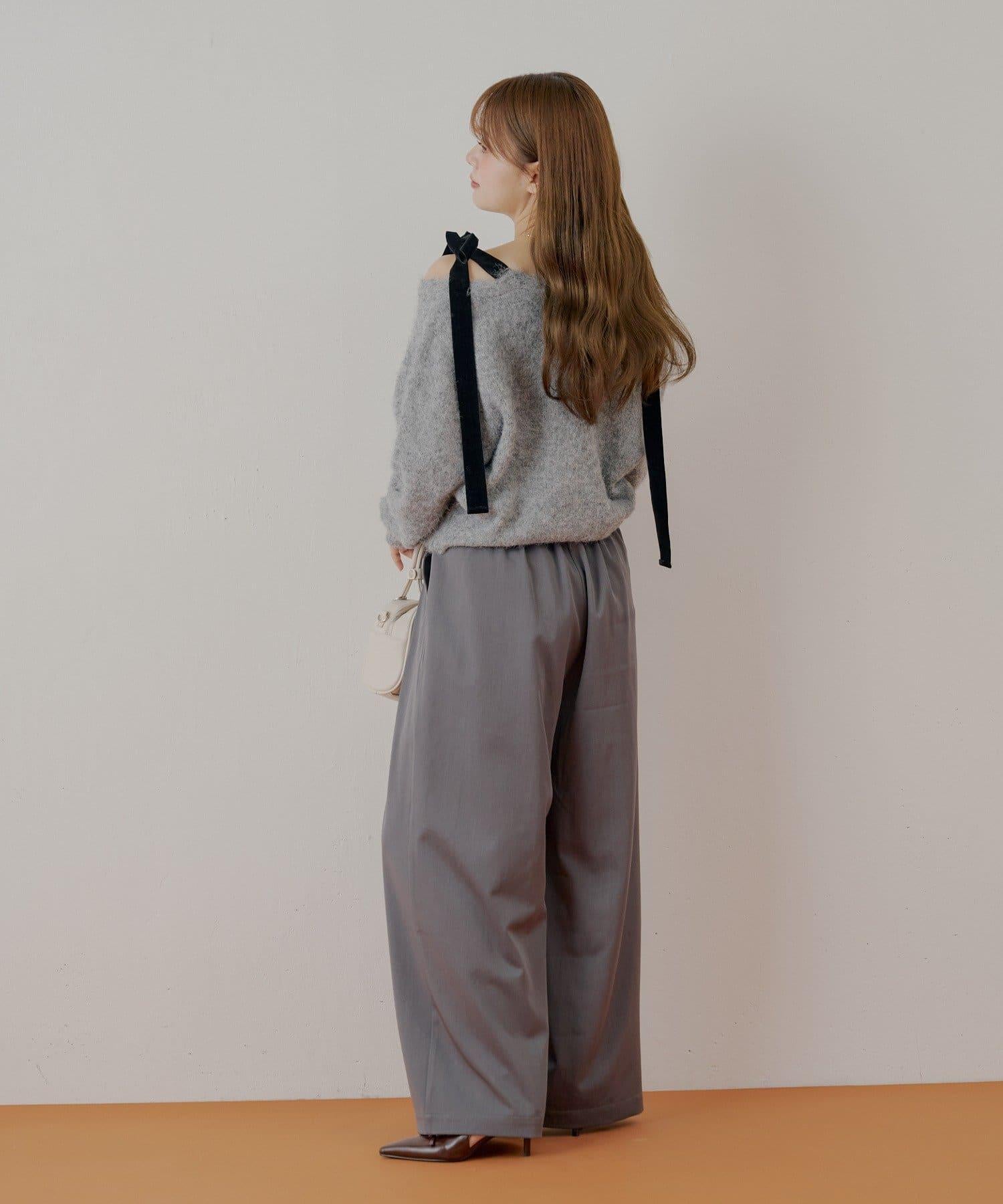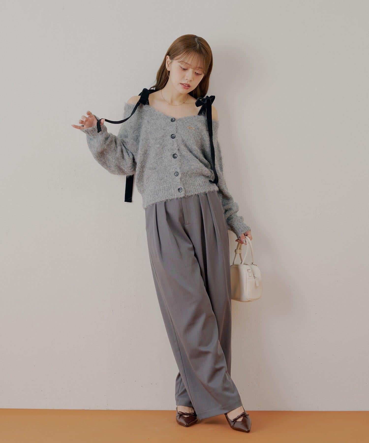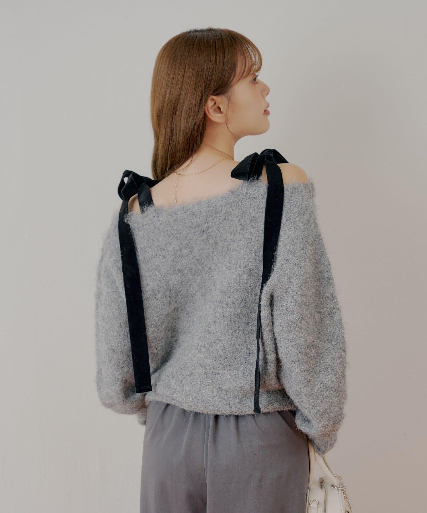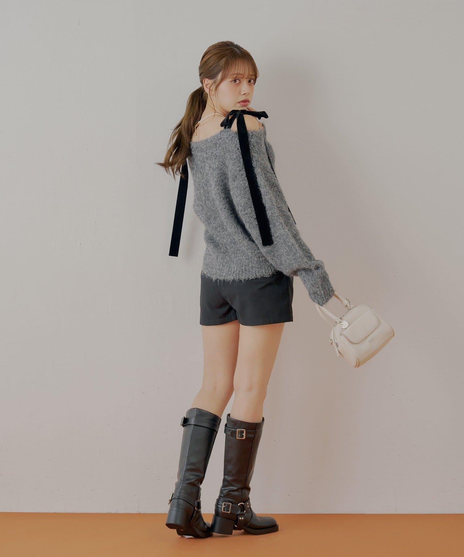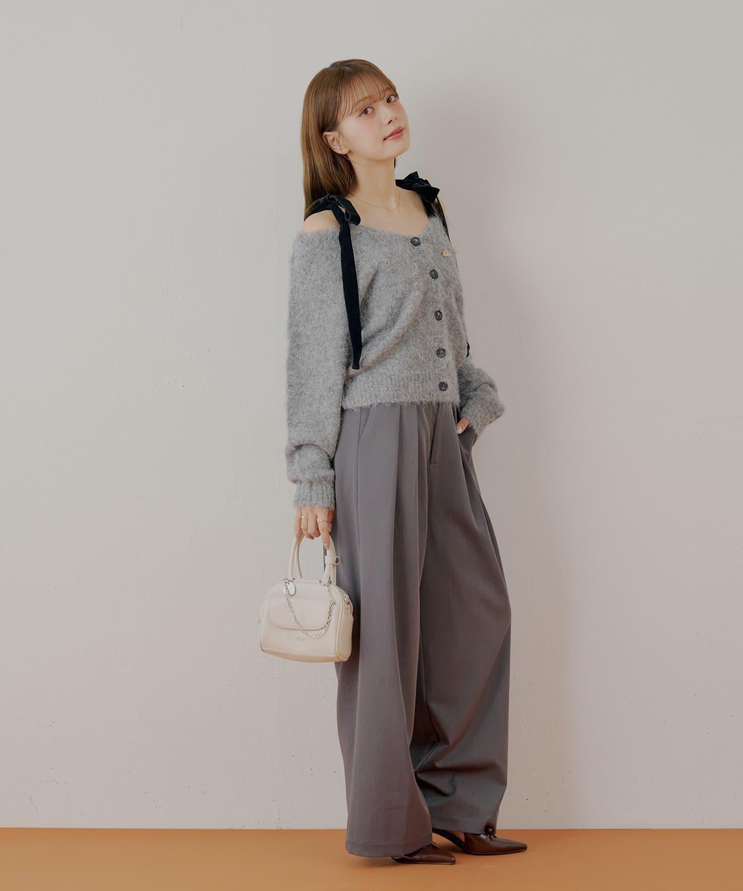 【可拆卸胸針】天鵝絨蝴蝶結寬鬆針織開衫