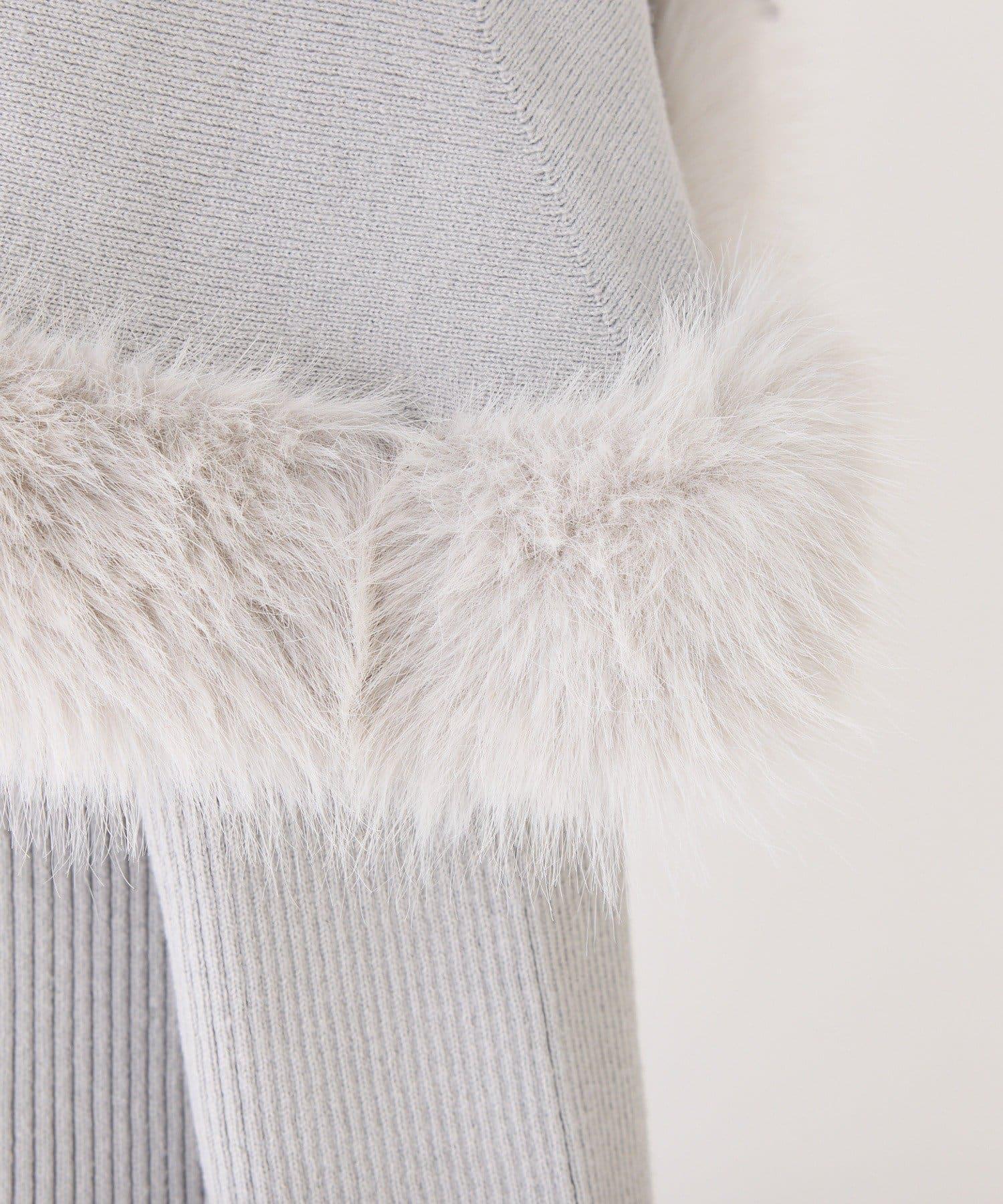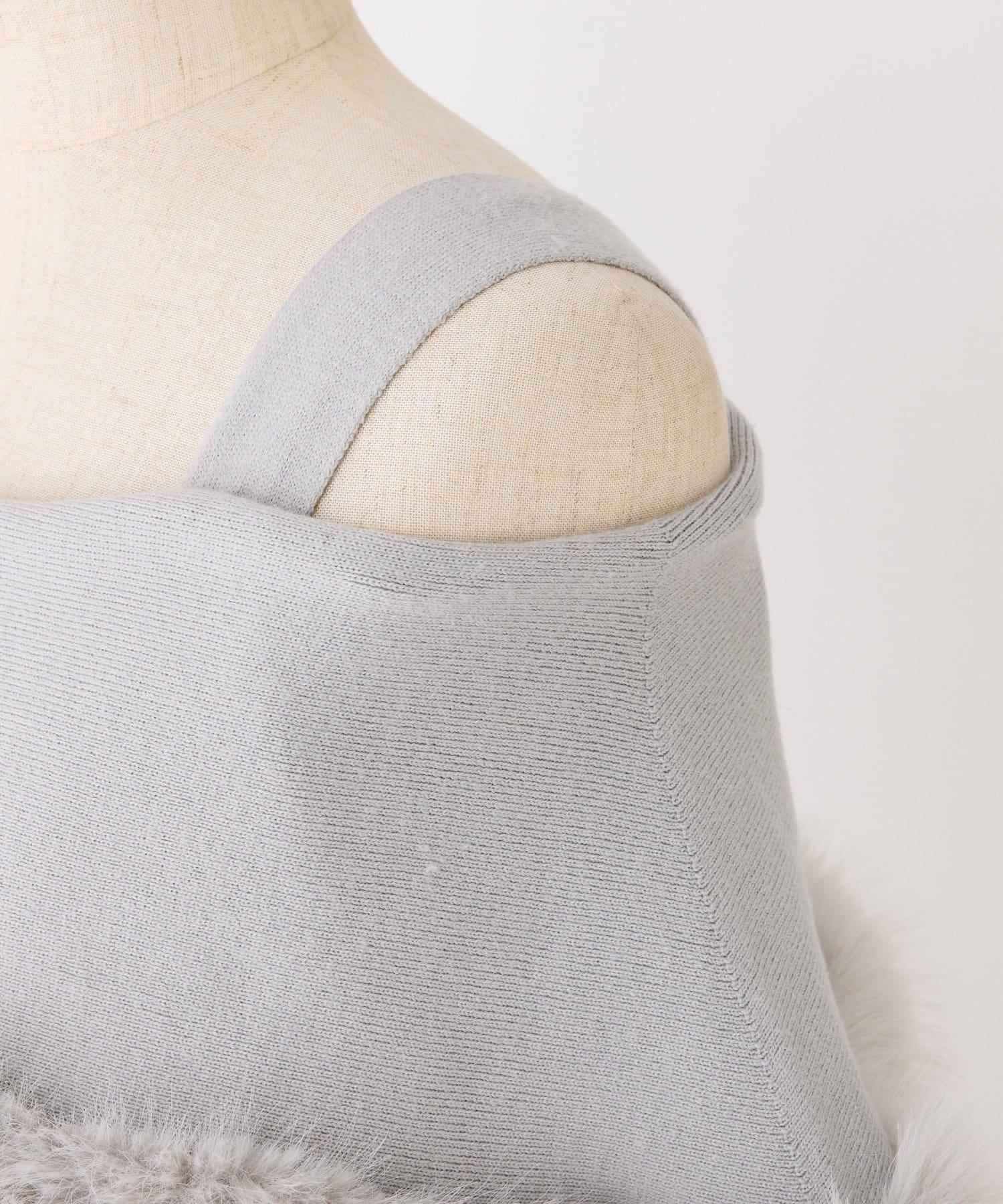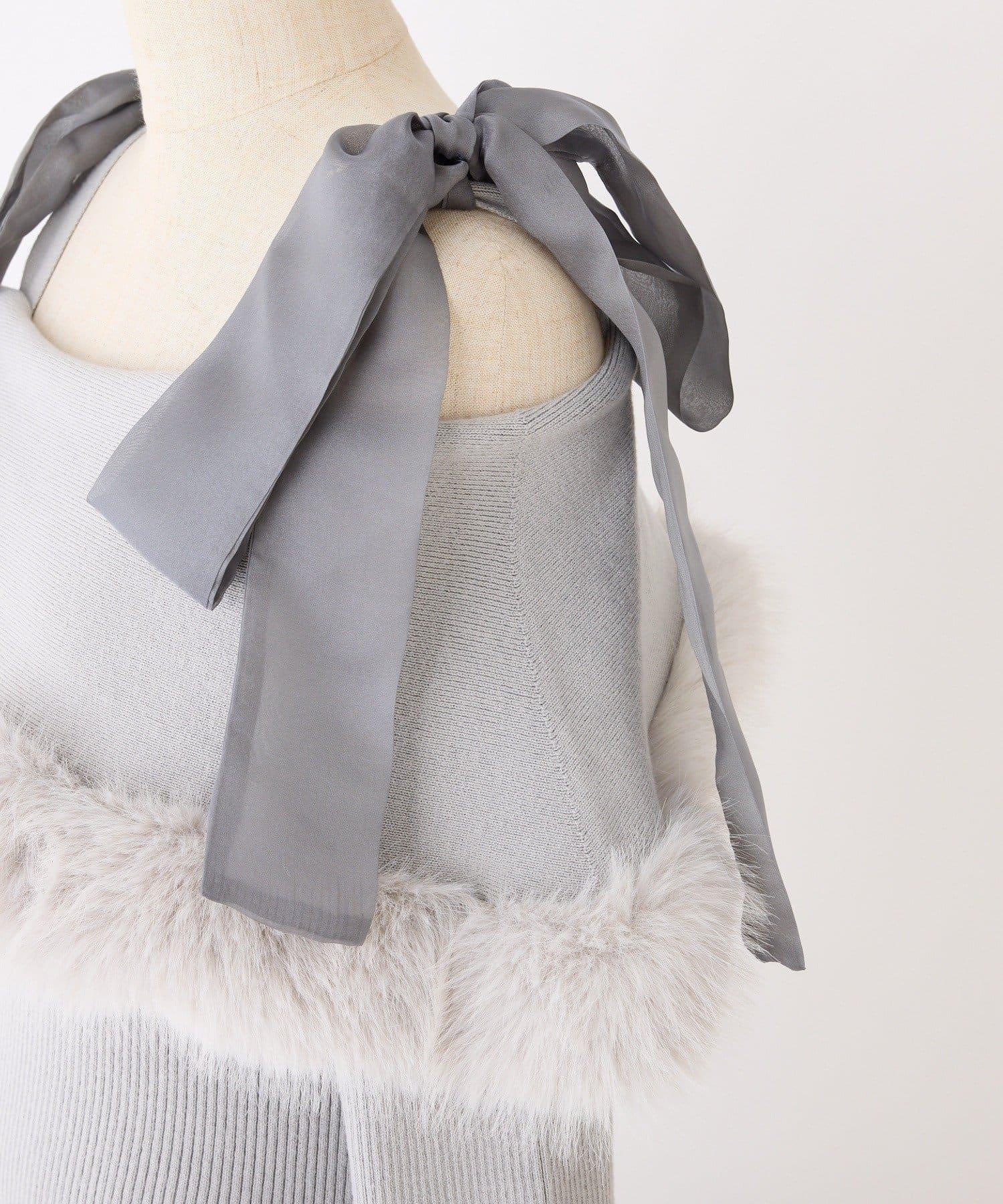 可拆卸蝴蝶結一字肩毛絨針織連衣裙