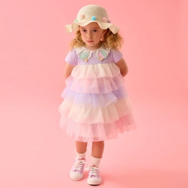 彩色薄紗面料增添了立體效果。