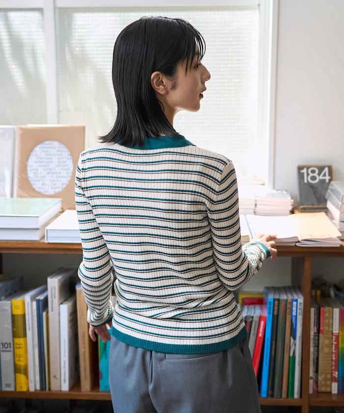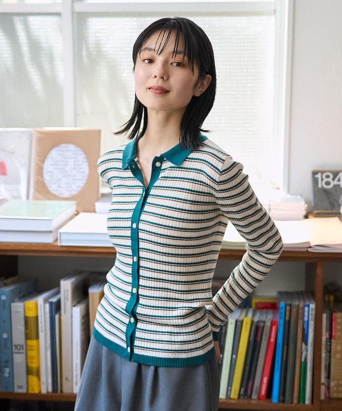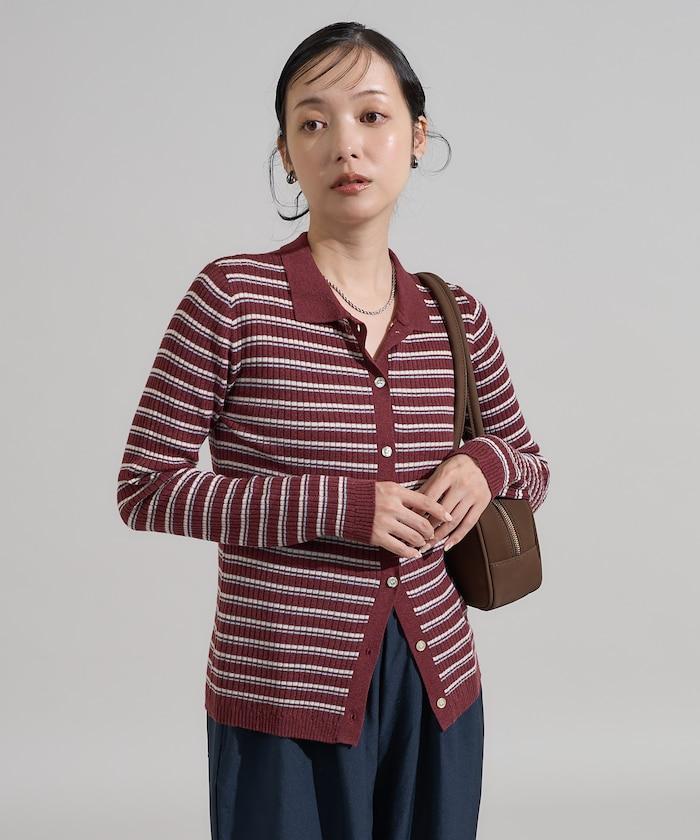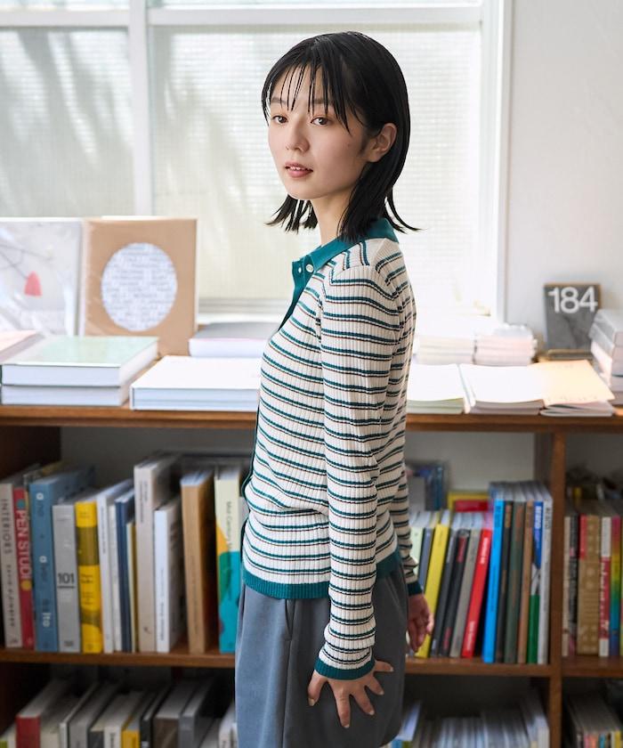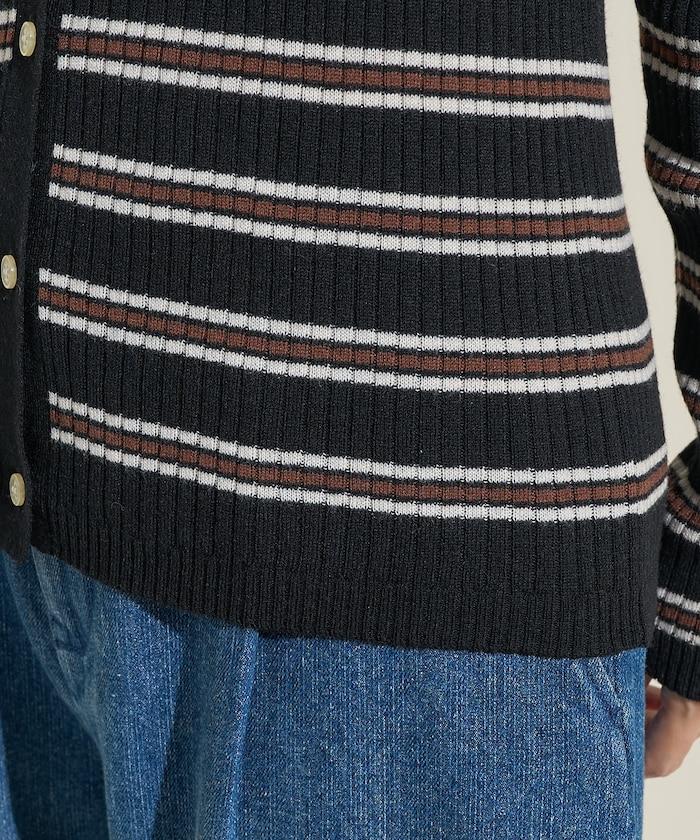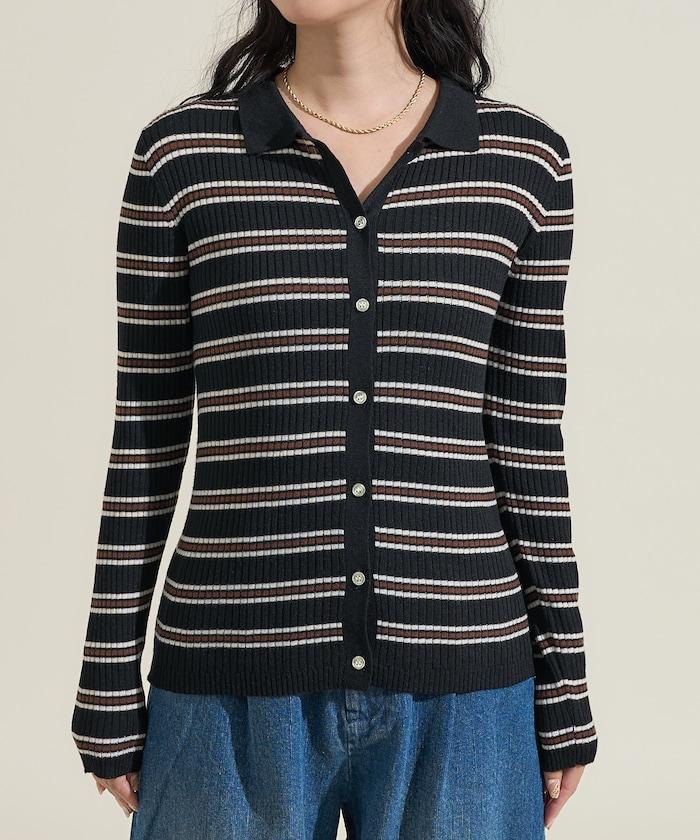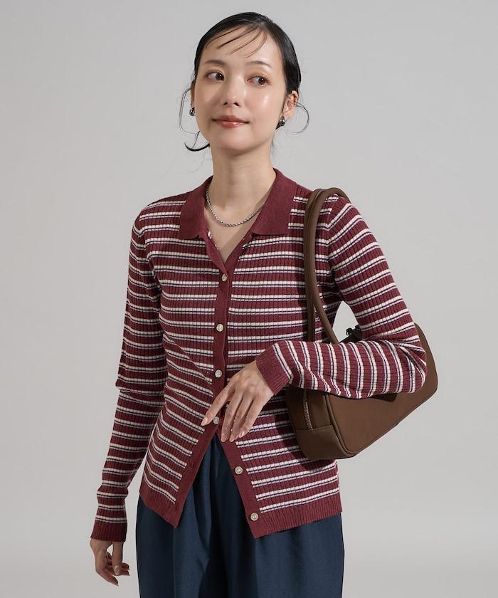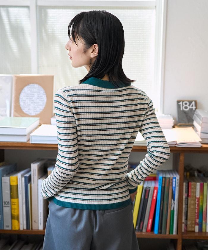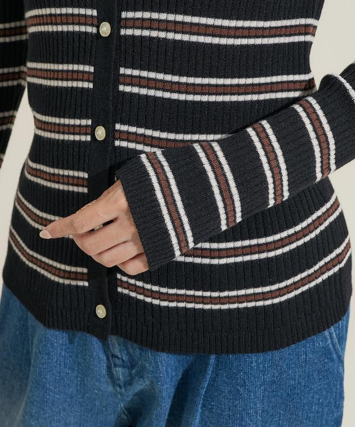 馬球針織開衫,多條紋圖案令人印象深刻。