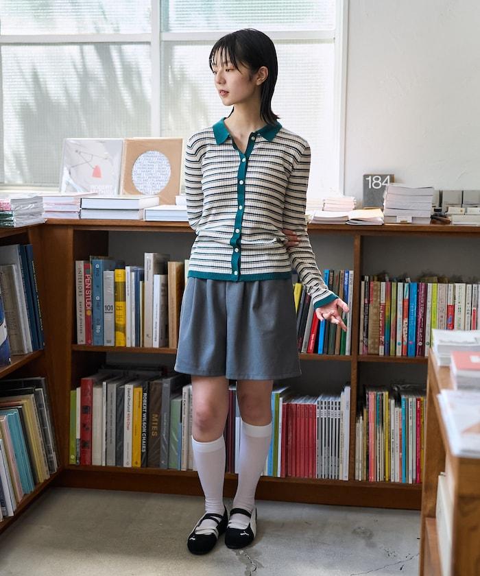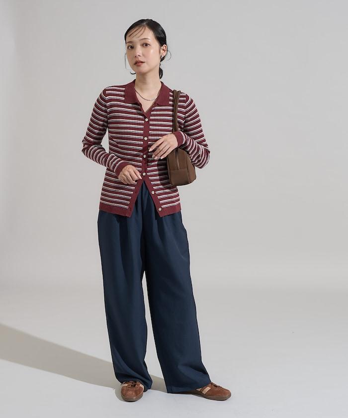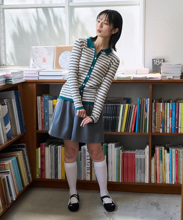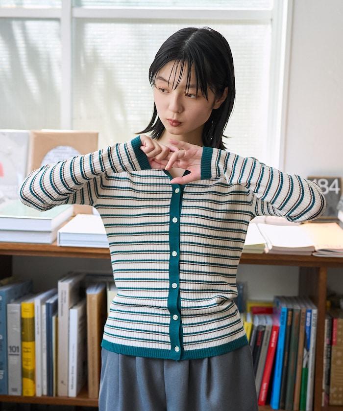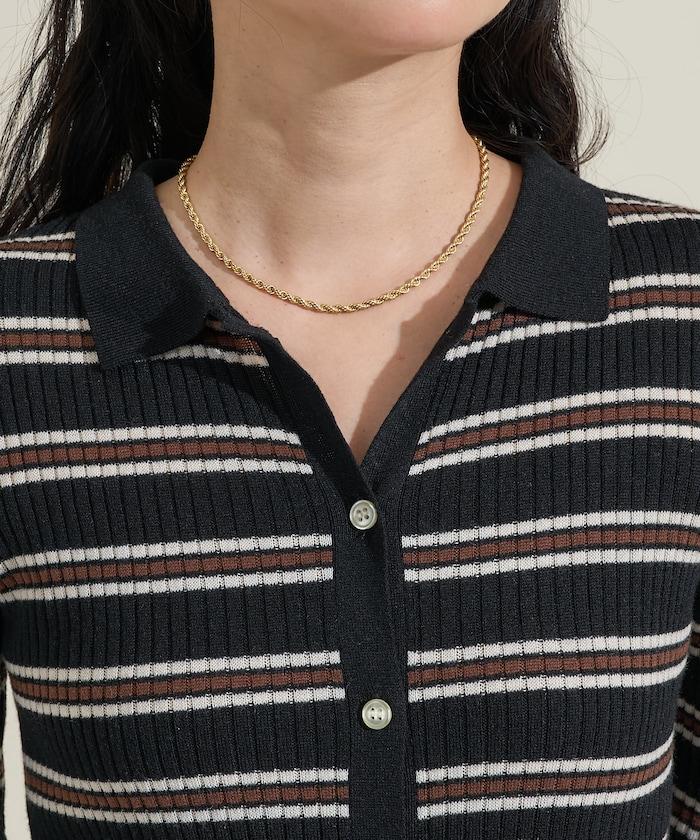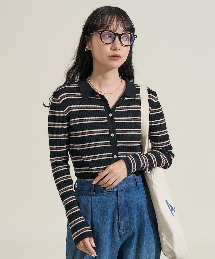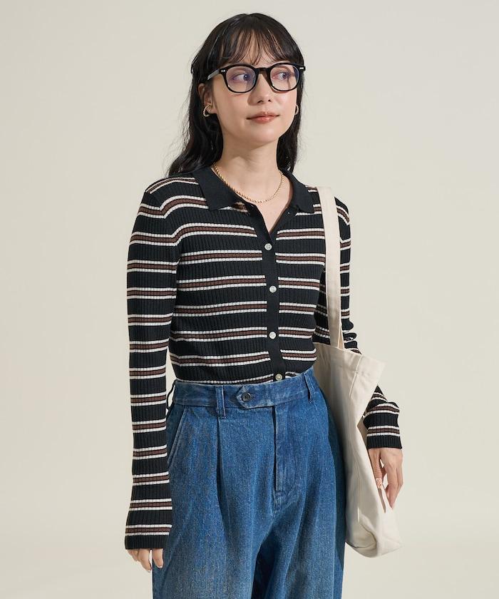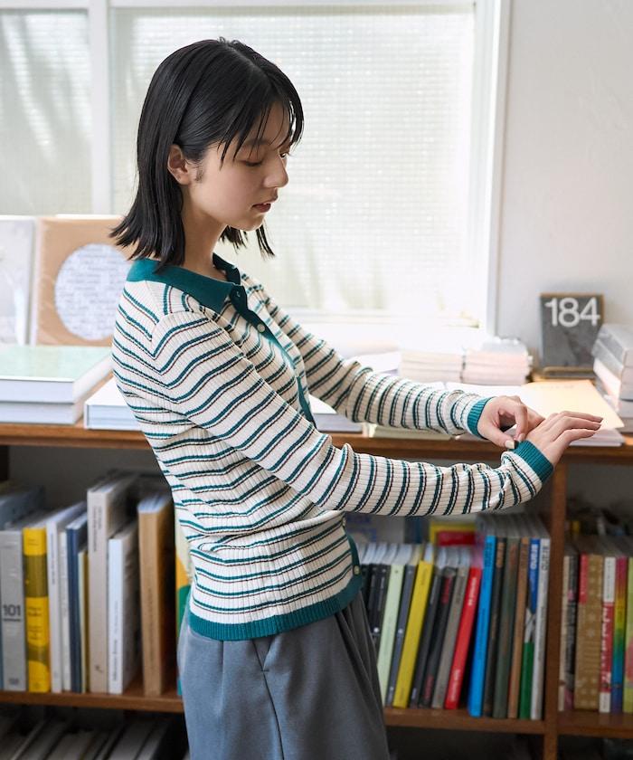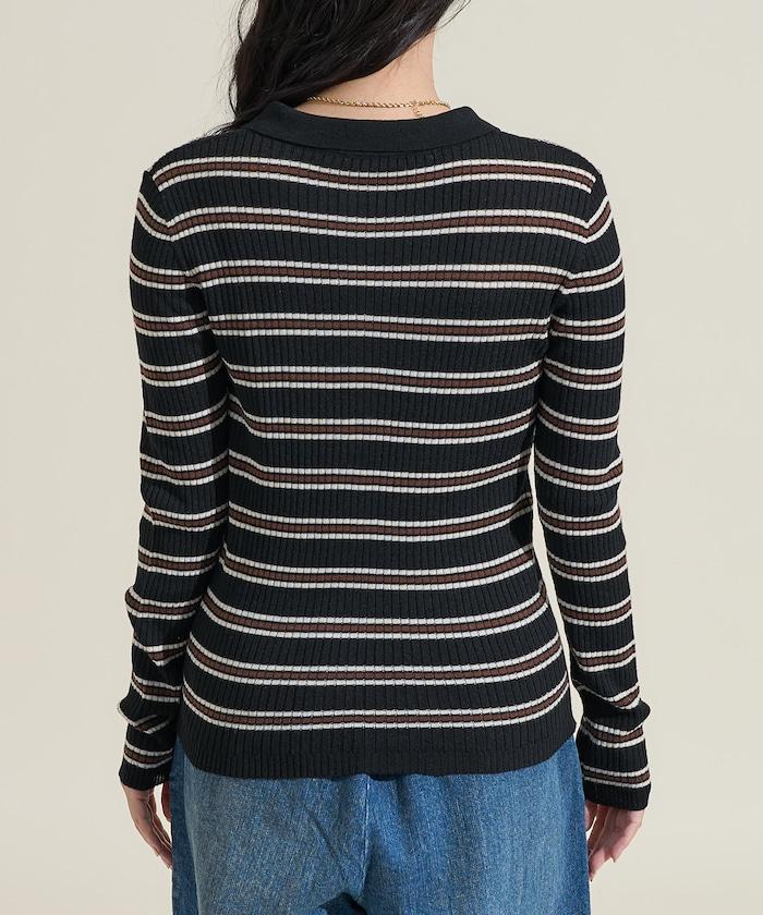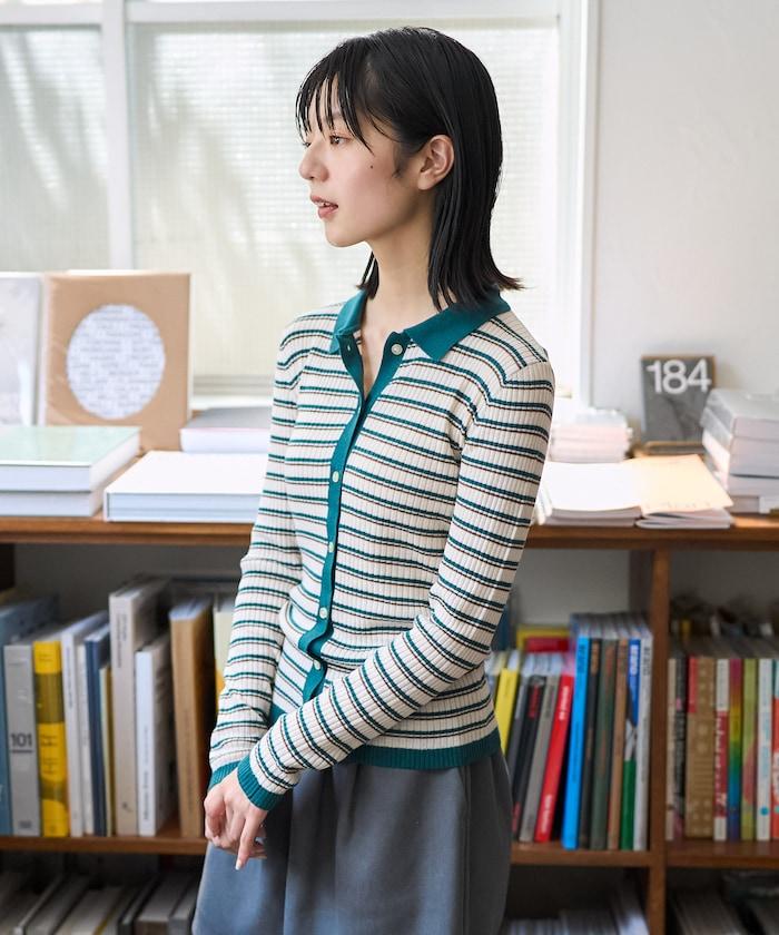 馬球針織開衫,多條紋圖案令人印象深刻。