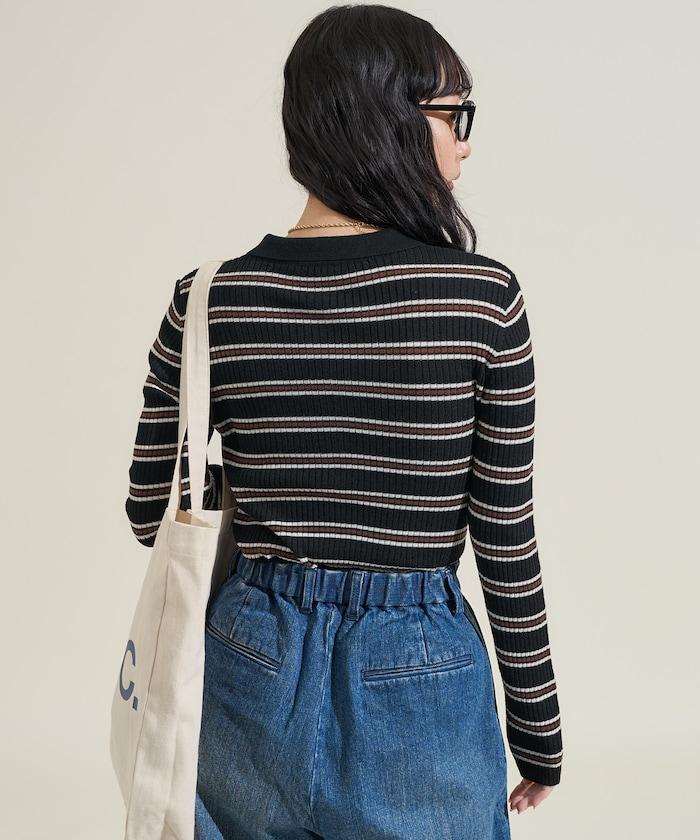 可水洗多色條紋針織POLO衫