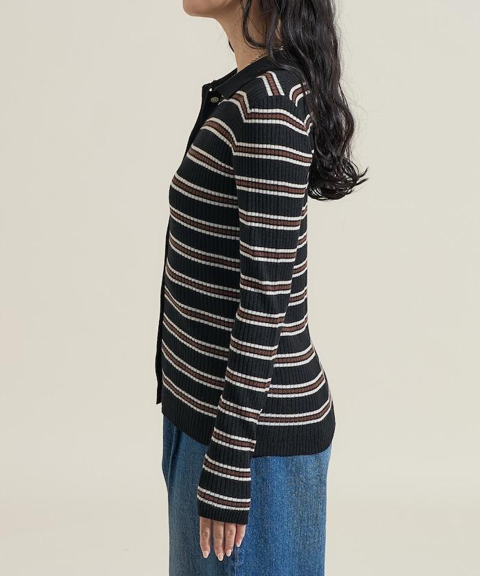 帶有醒目多條紋圖案的馬球針織開衫
