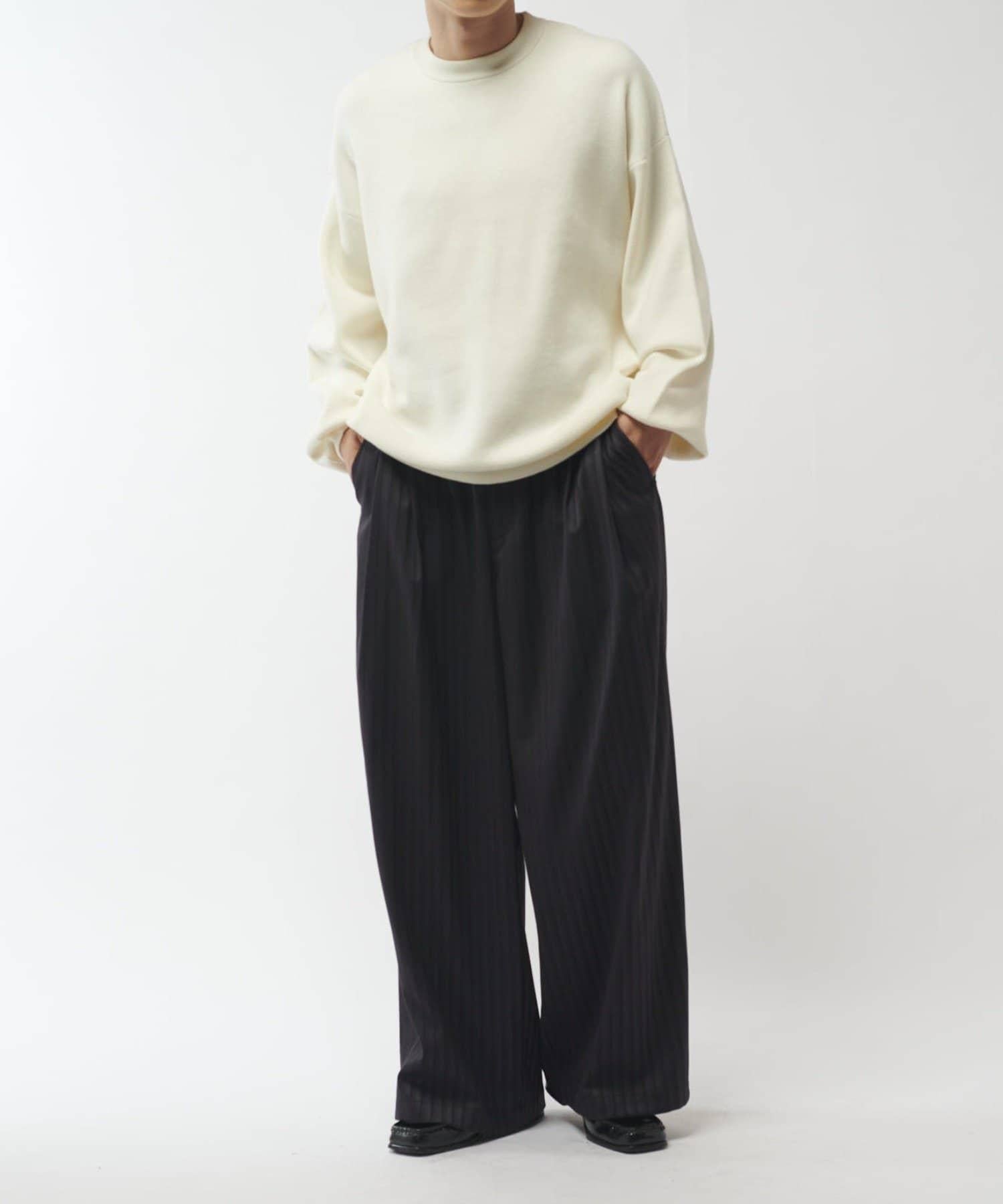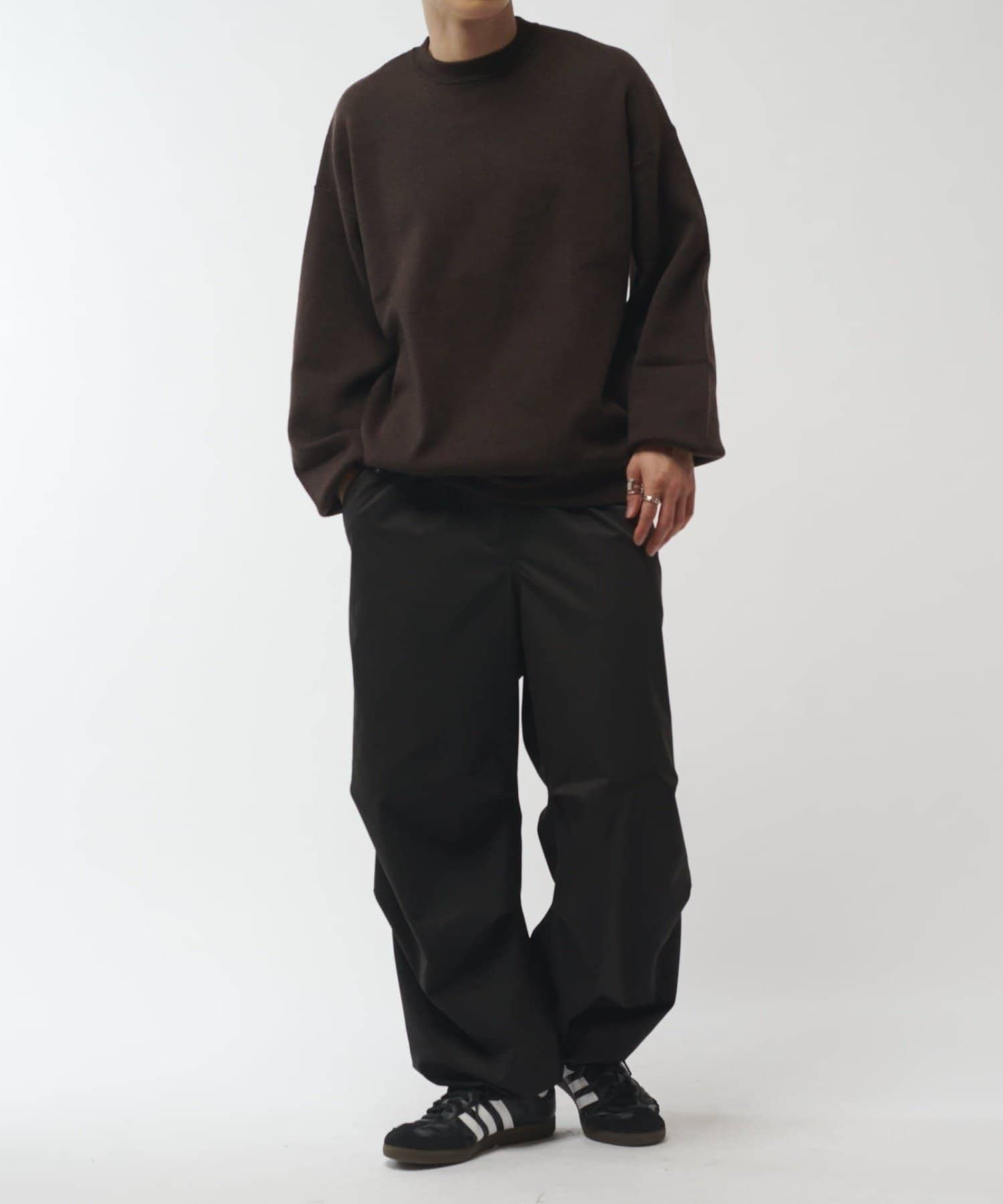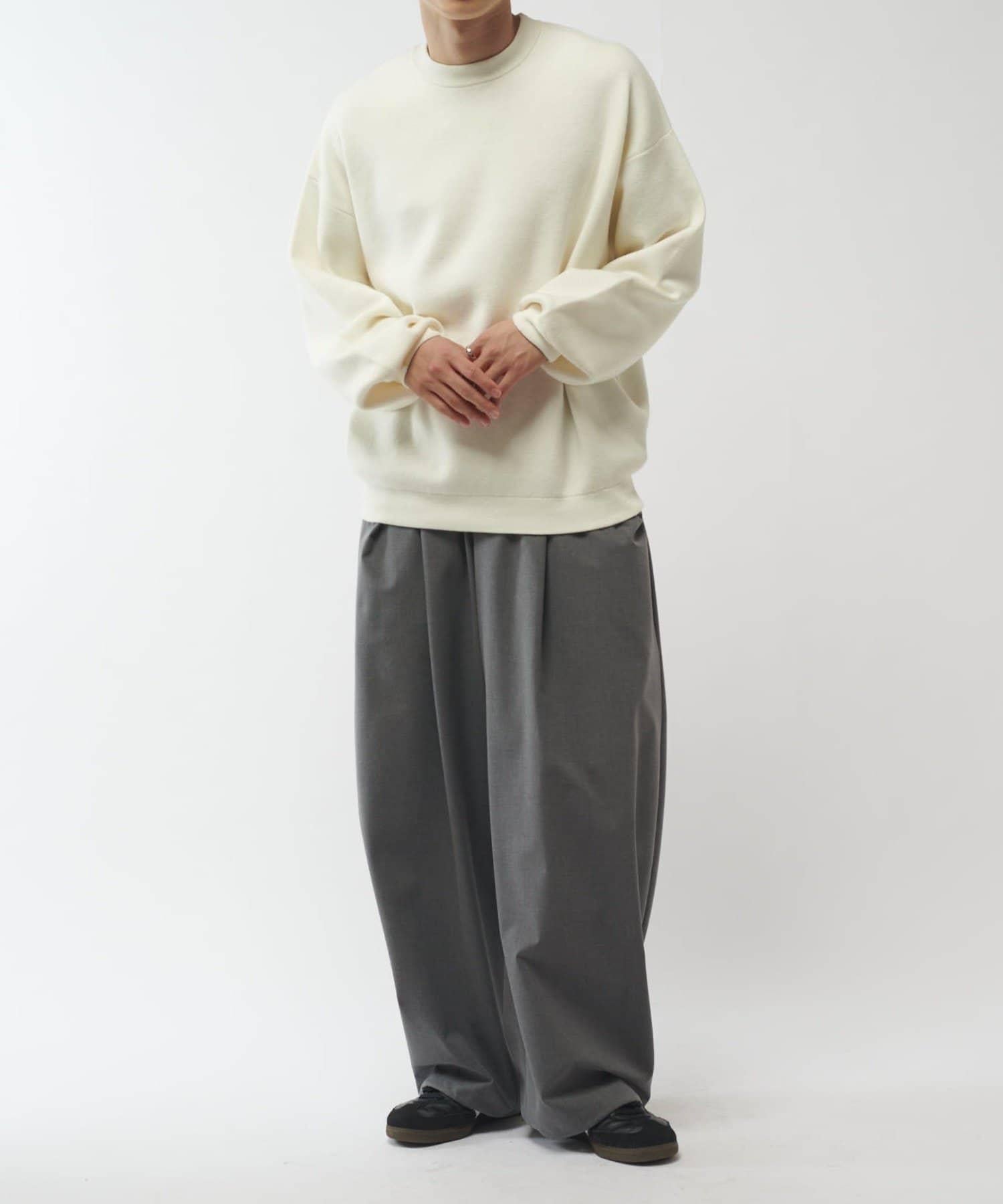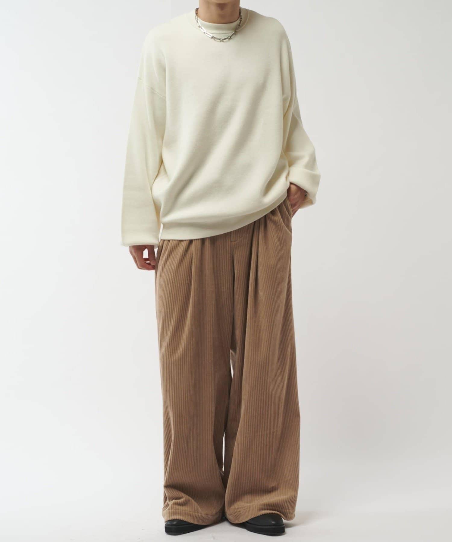基本簡約的圓領針織衫,可搭配多種款式。
