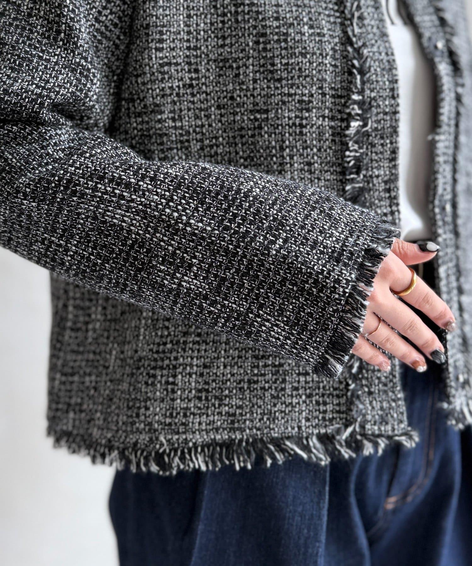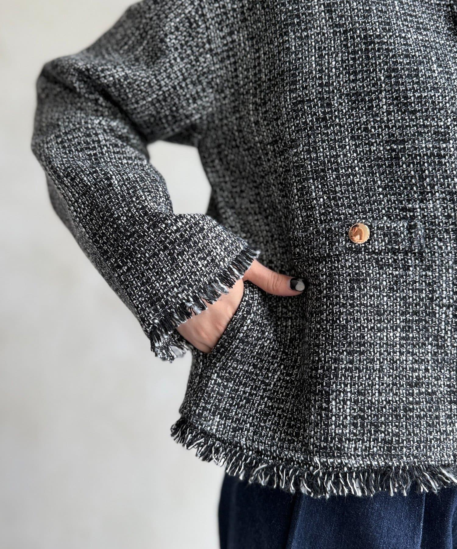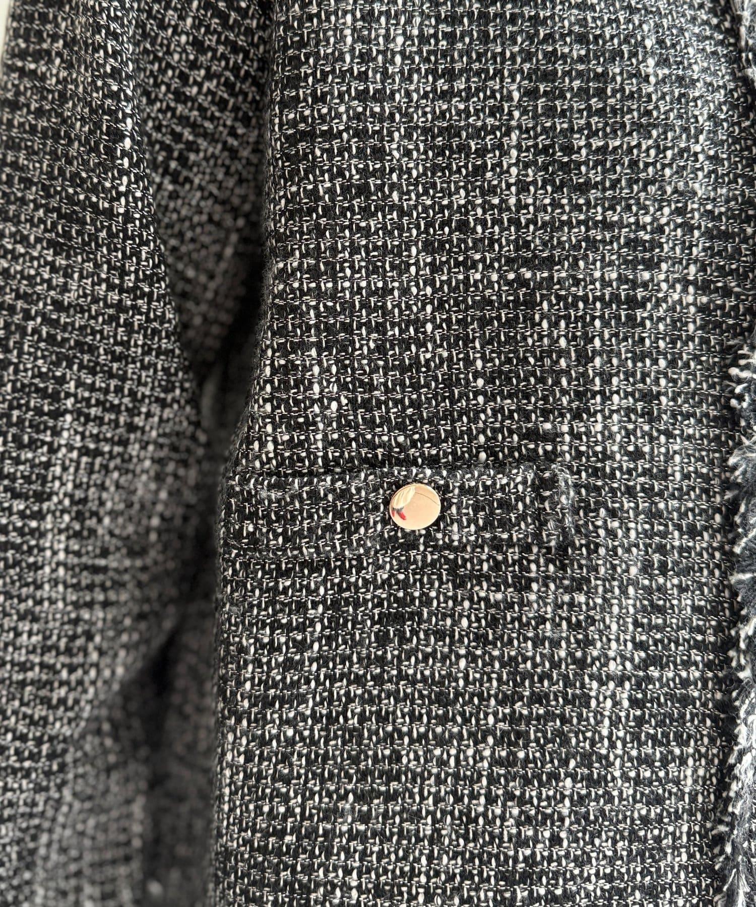 口袋、袖口和門襟均有流蘇,金色紐扣更顯奢華迷人。