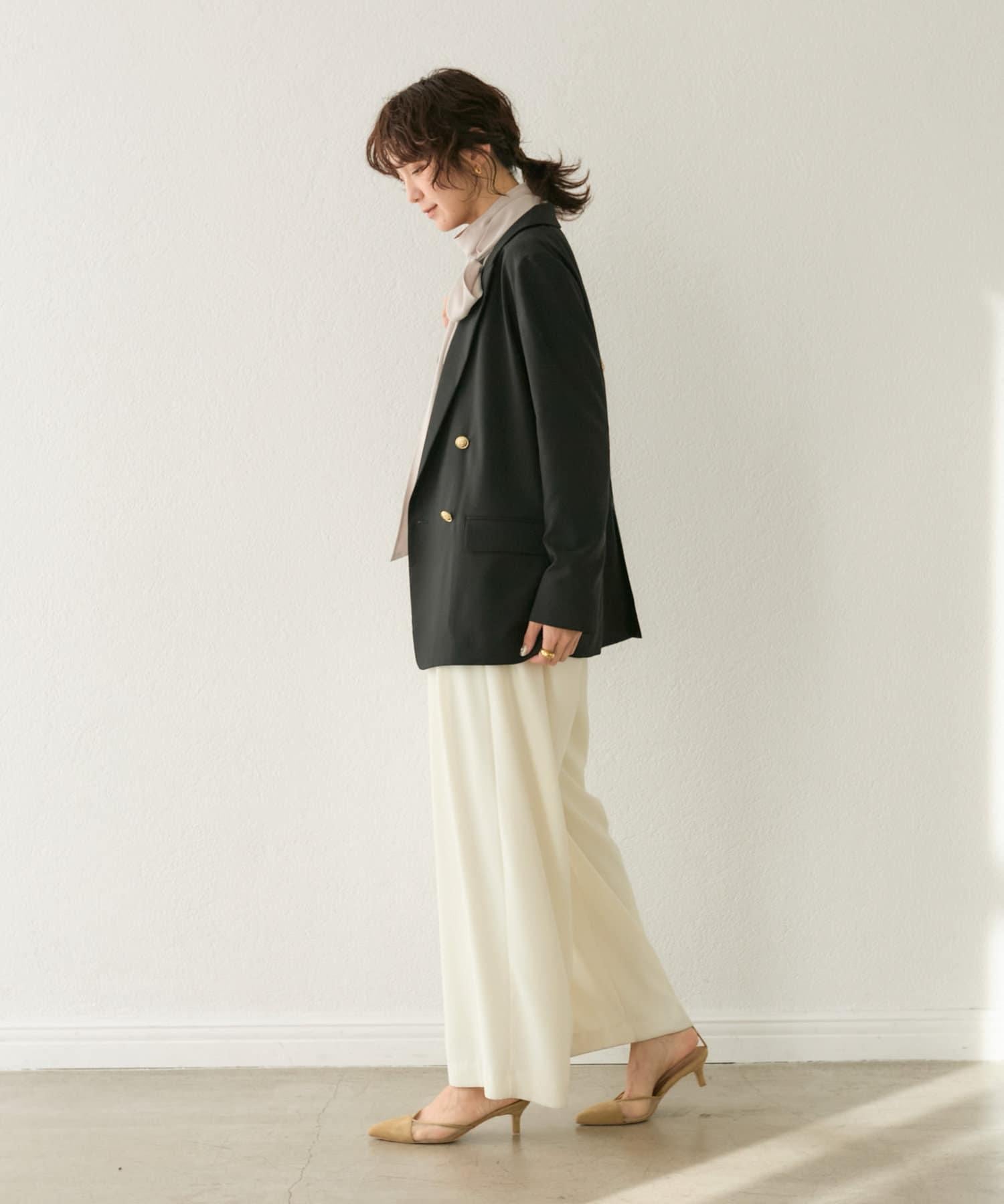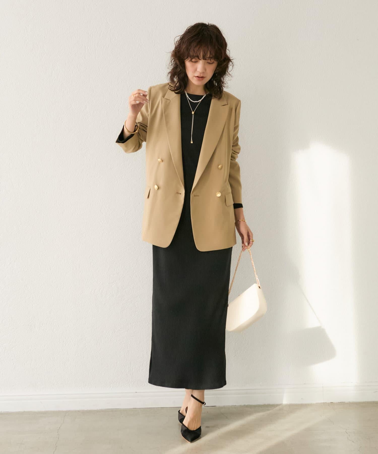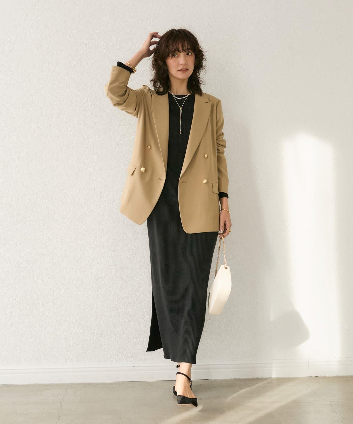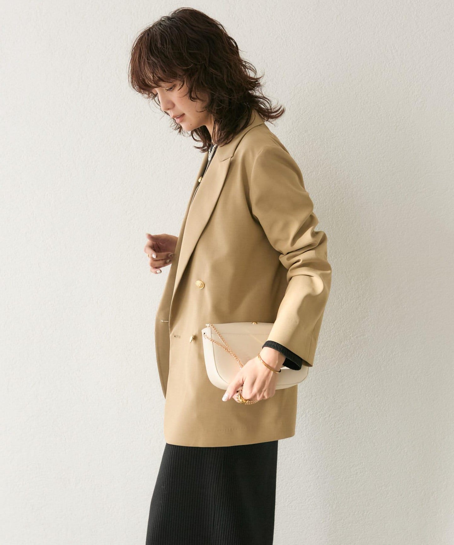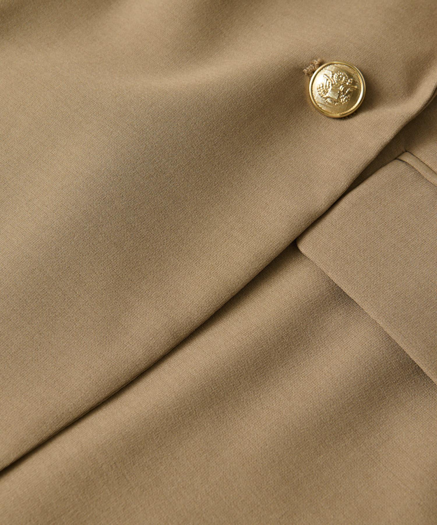 有黑色、米色和海軍藍三種顏色可供選擇,金色紐扣使其更加合身。