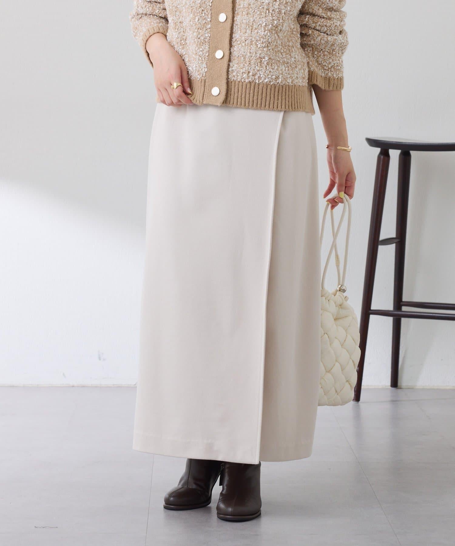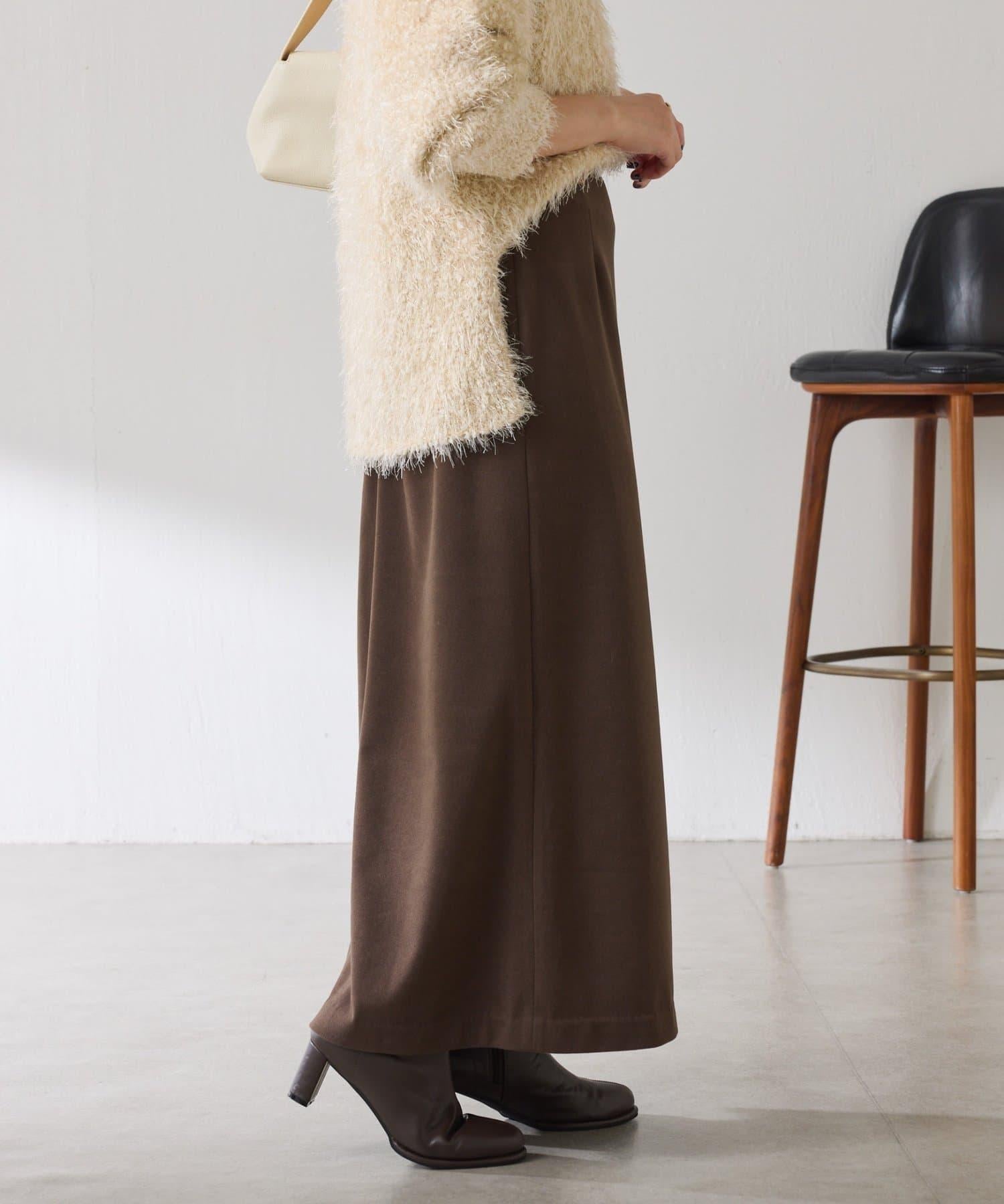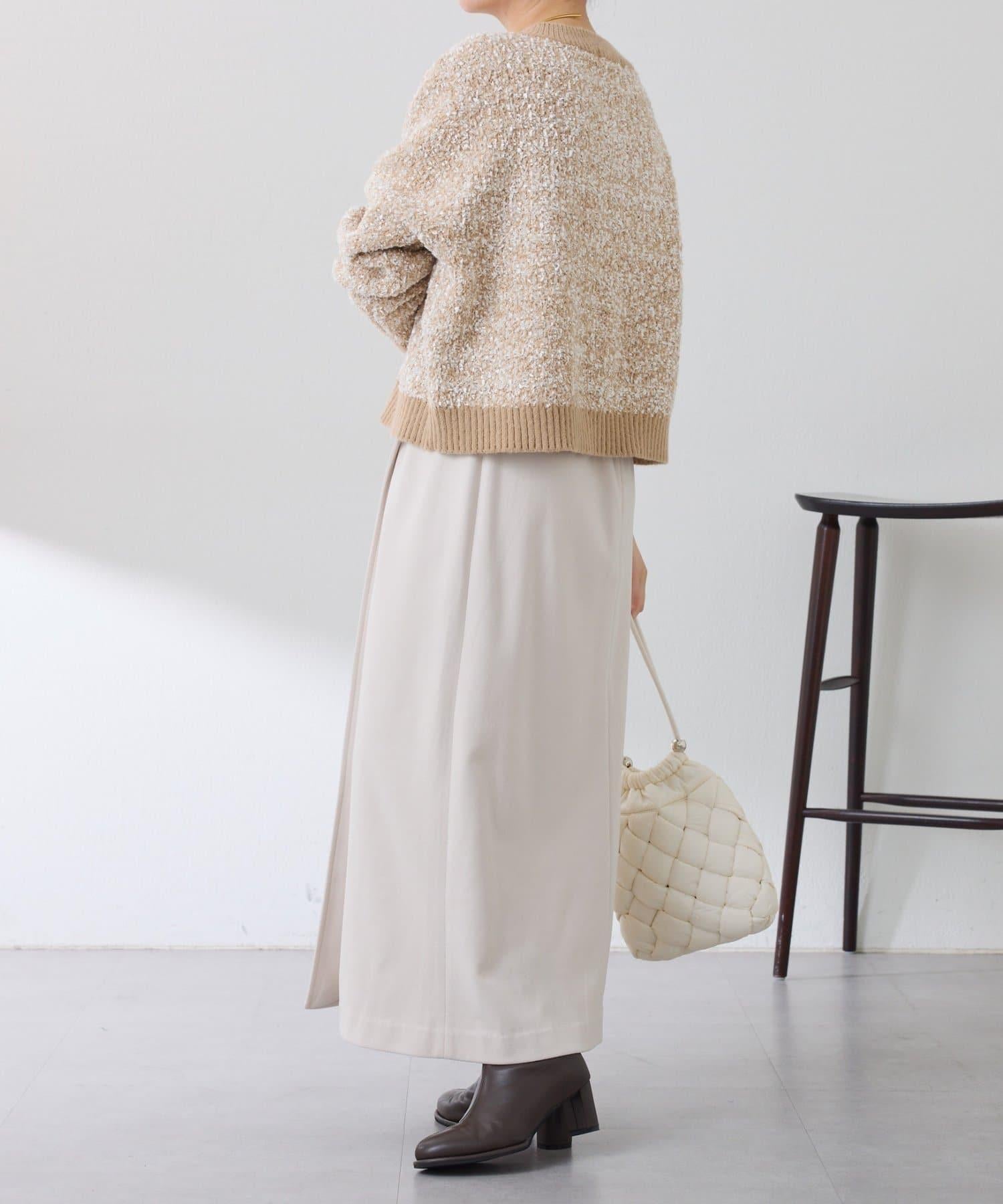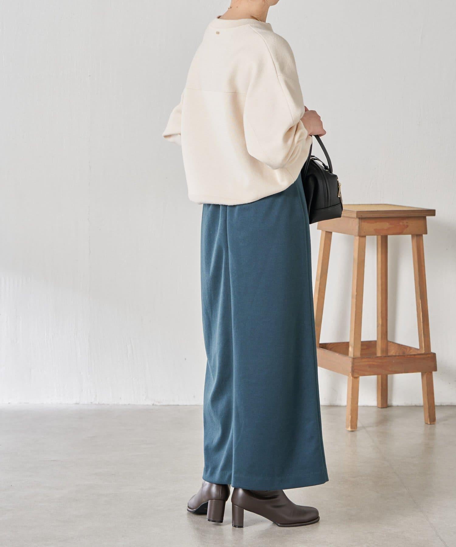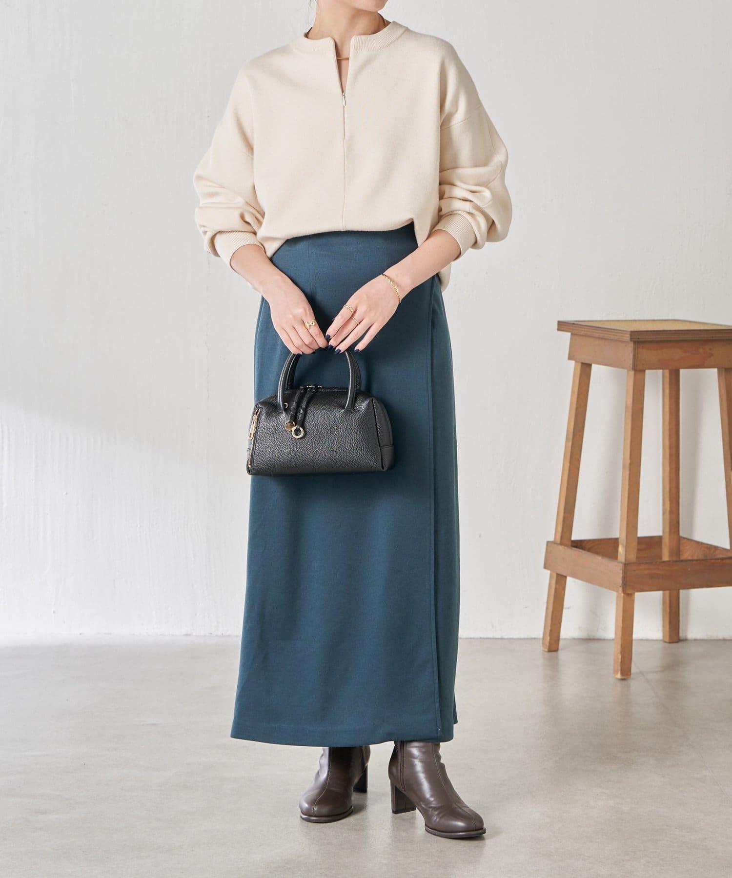 這款裙子採用凸起的材質,因此能提升溫暖秋冬的格調。米白色的材質也不透明。
