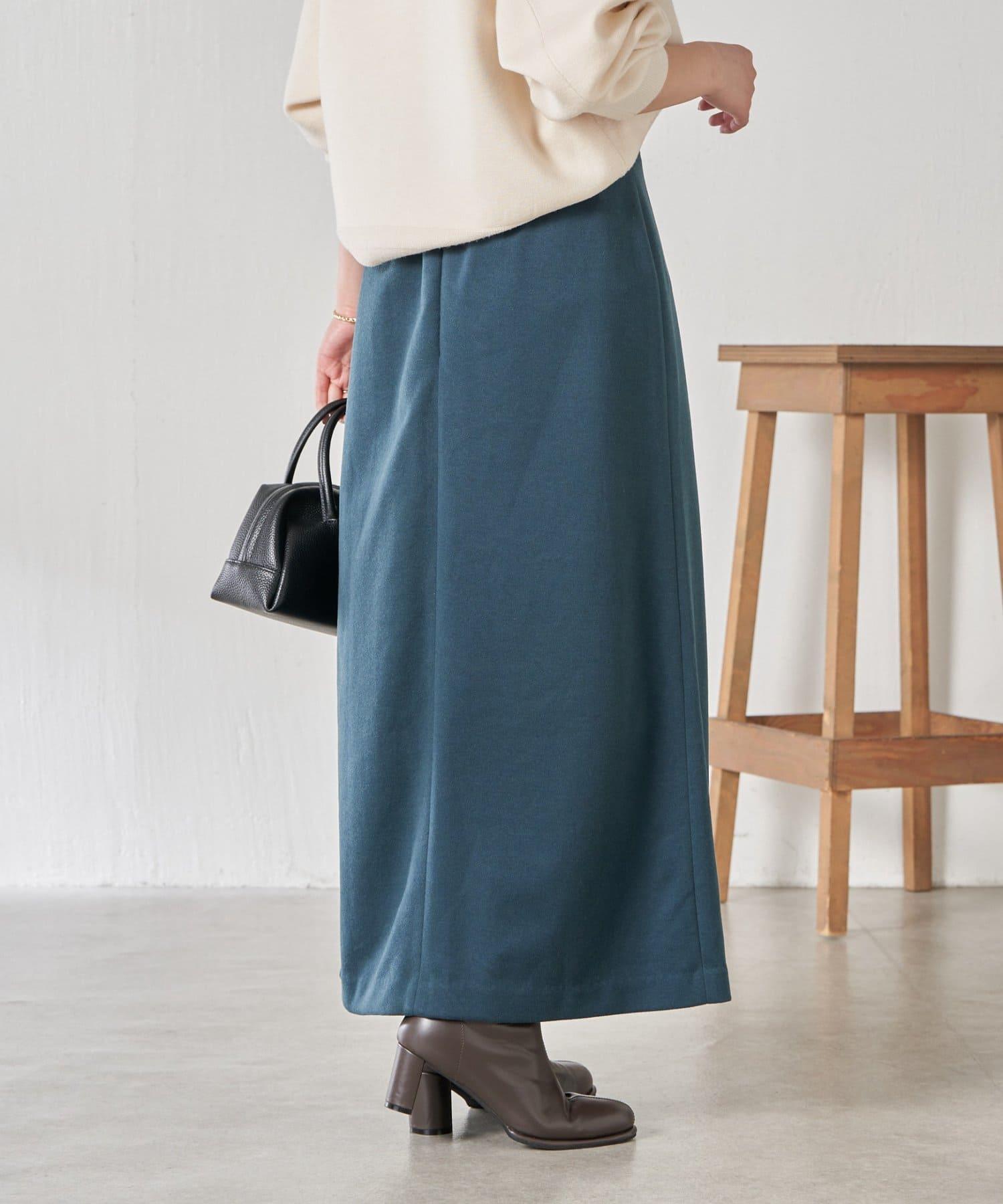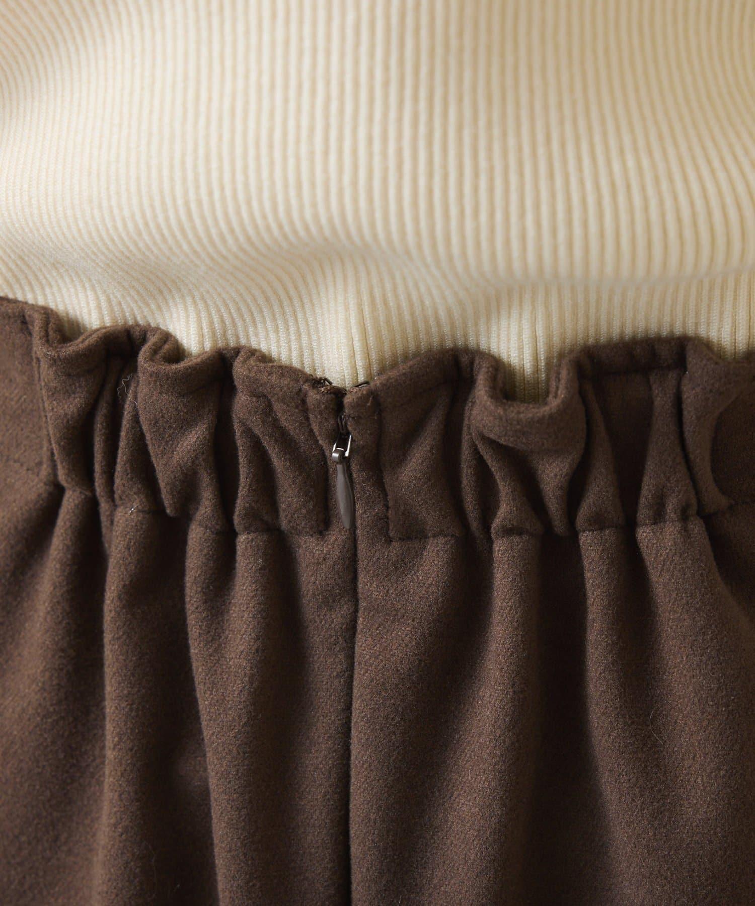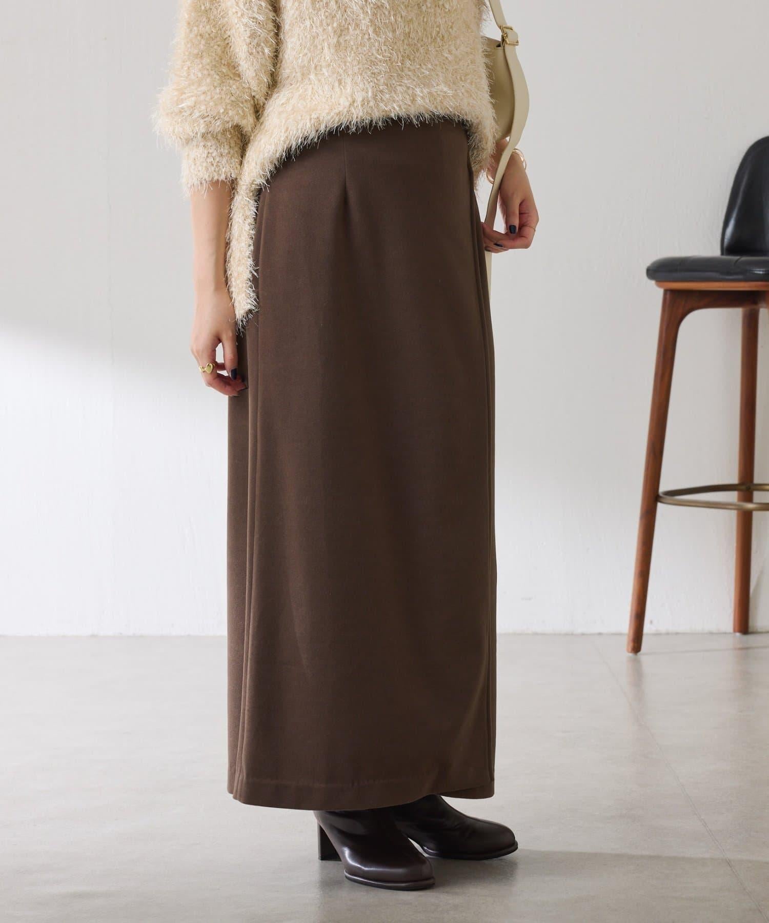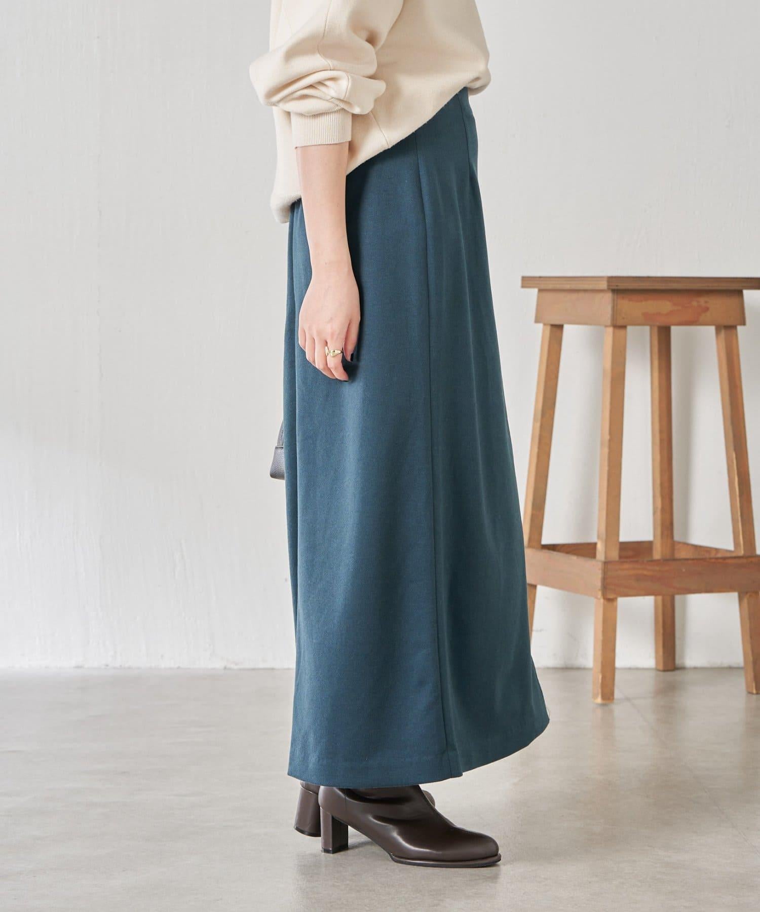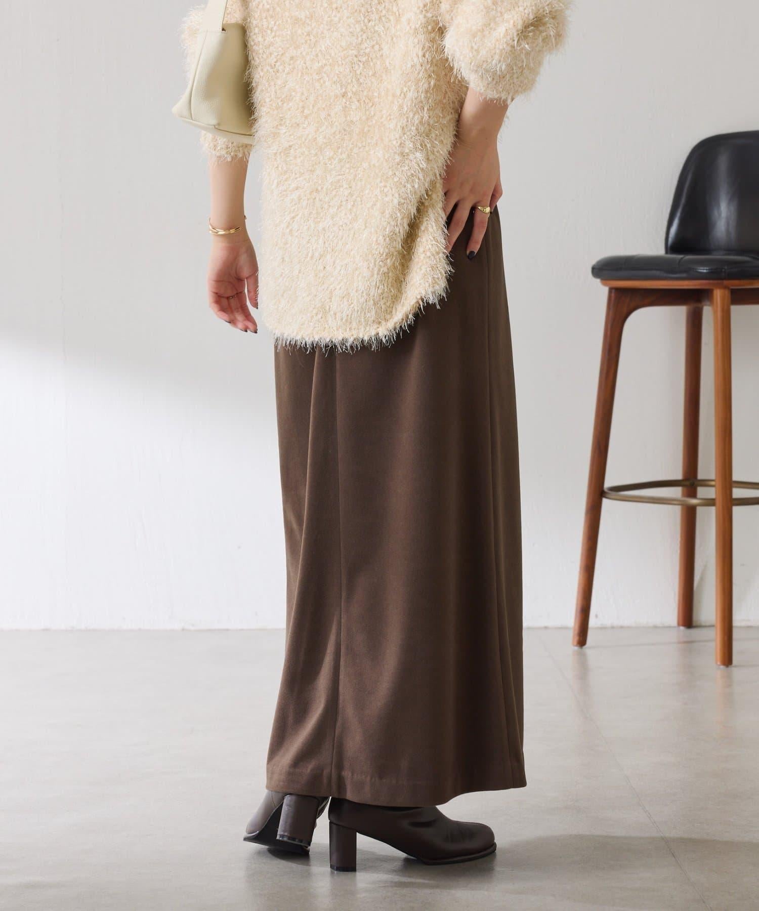 這款裙子採用凸起的材質,因此能提升溫暖秋冬的格調。米白色的材質也不透明。