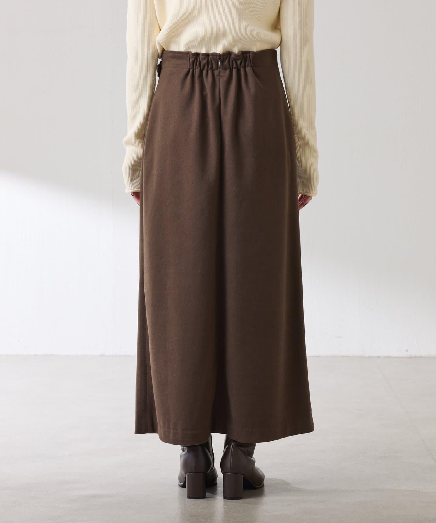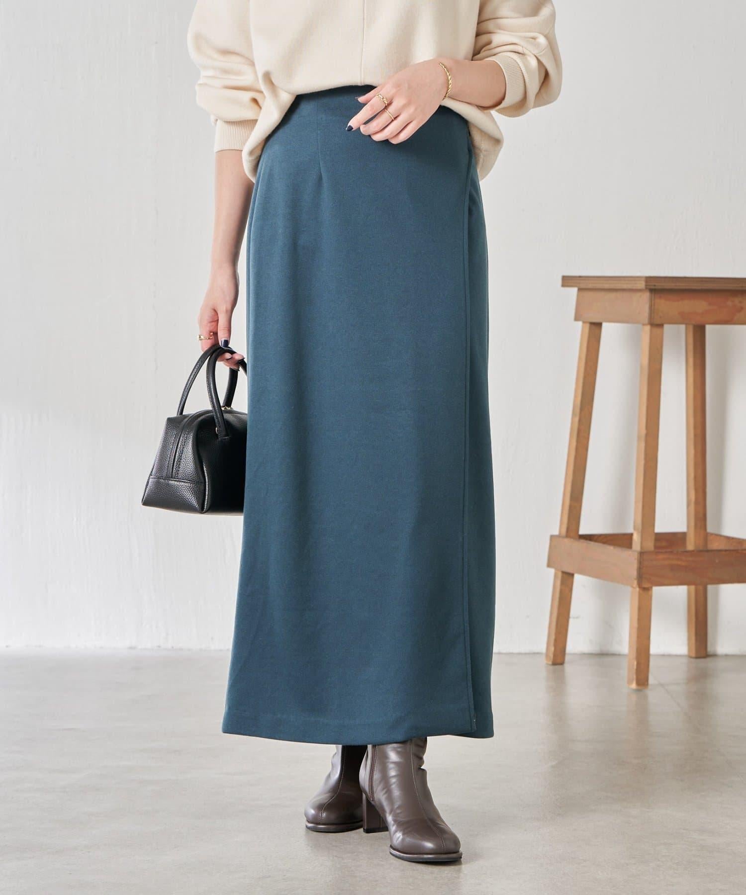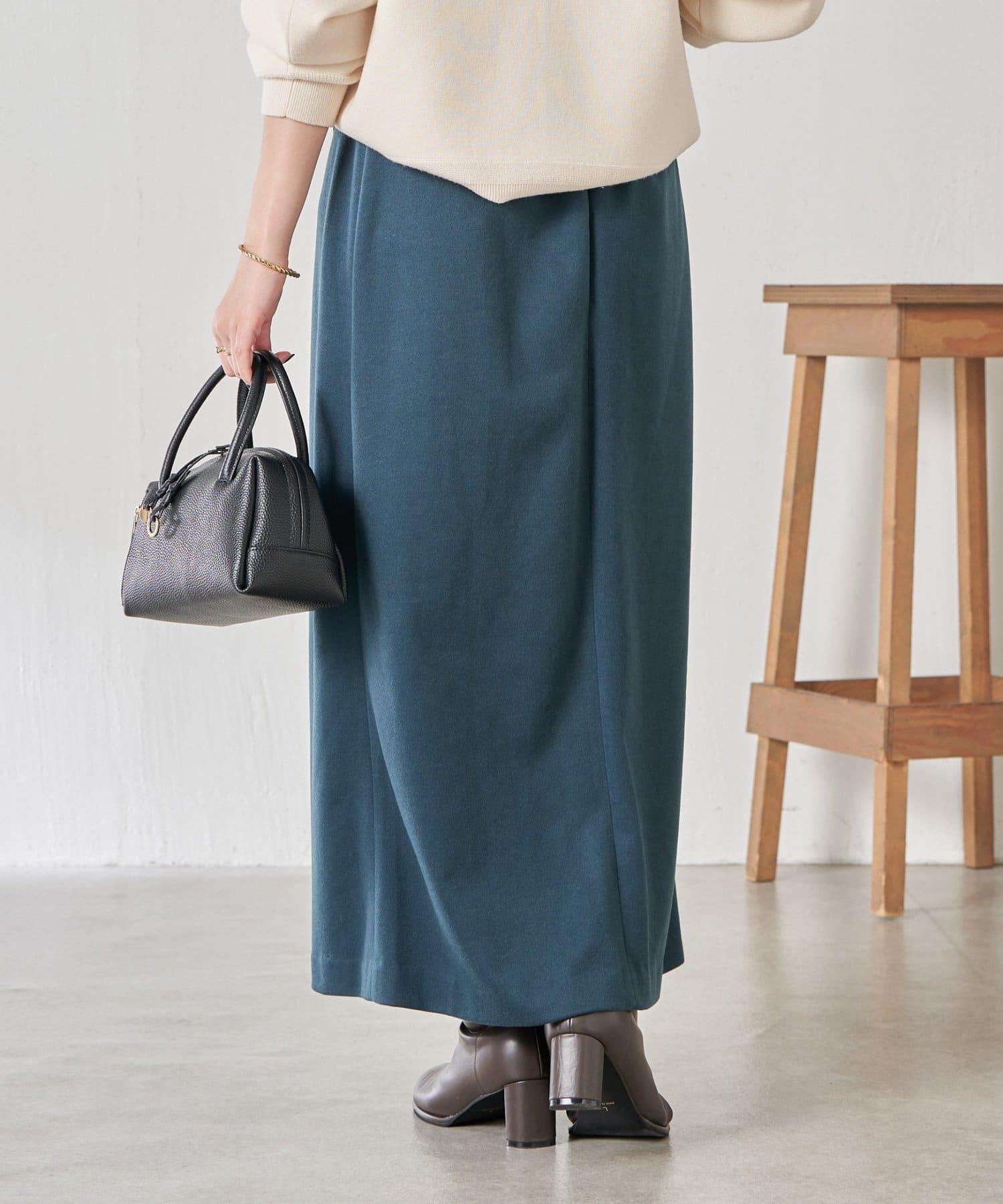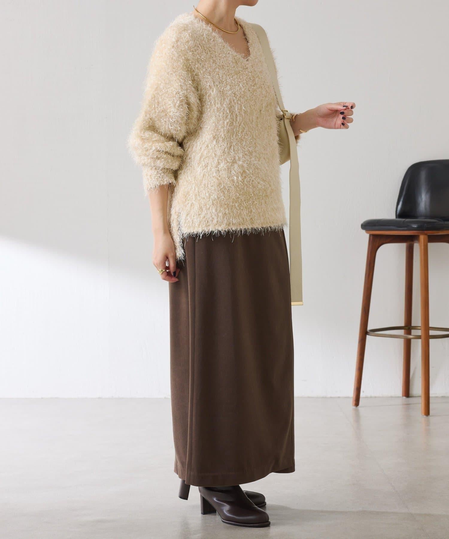 這款裙子採用凸起的材質,因此能提升溫暖秋冬的格調。米白色的材質也不透明。