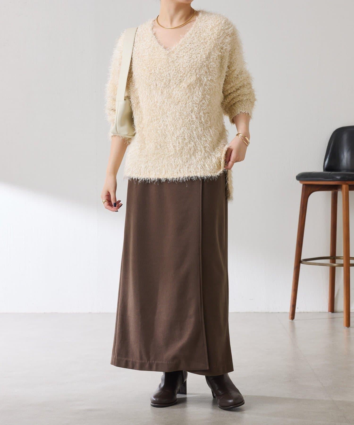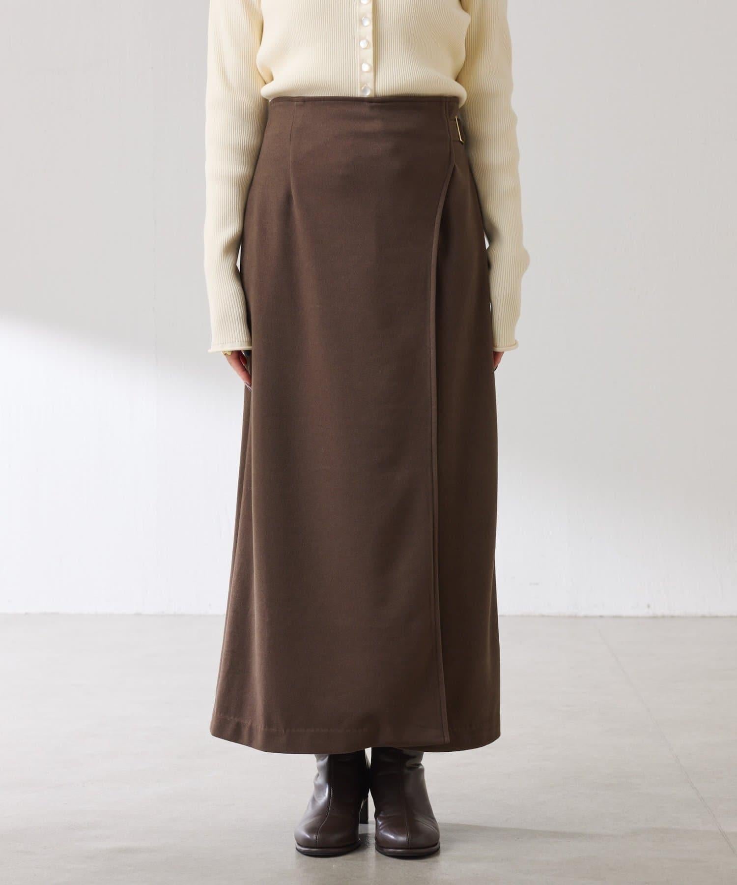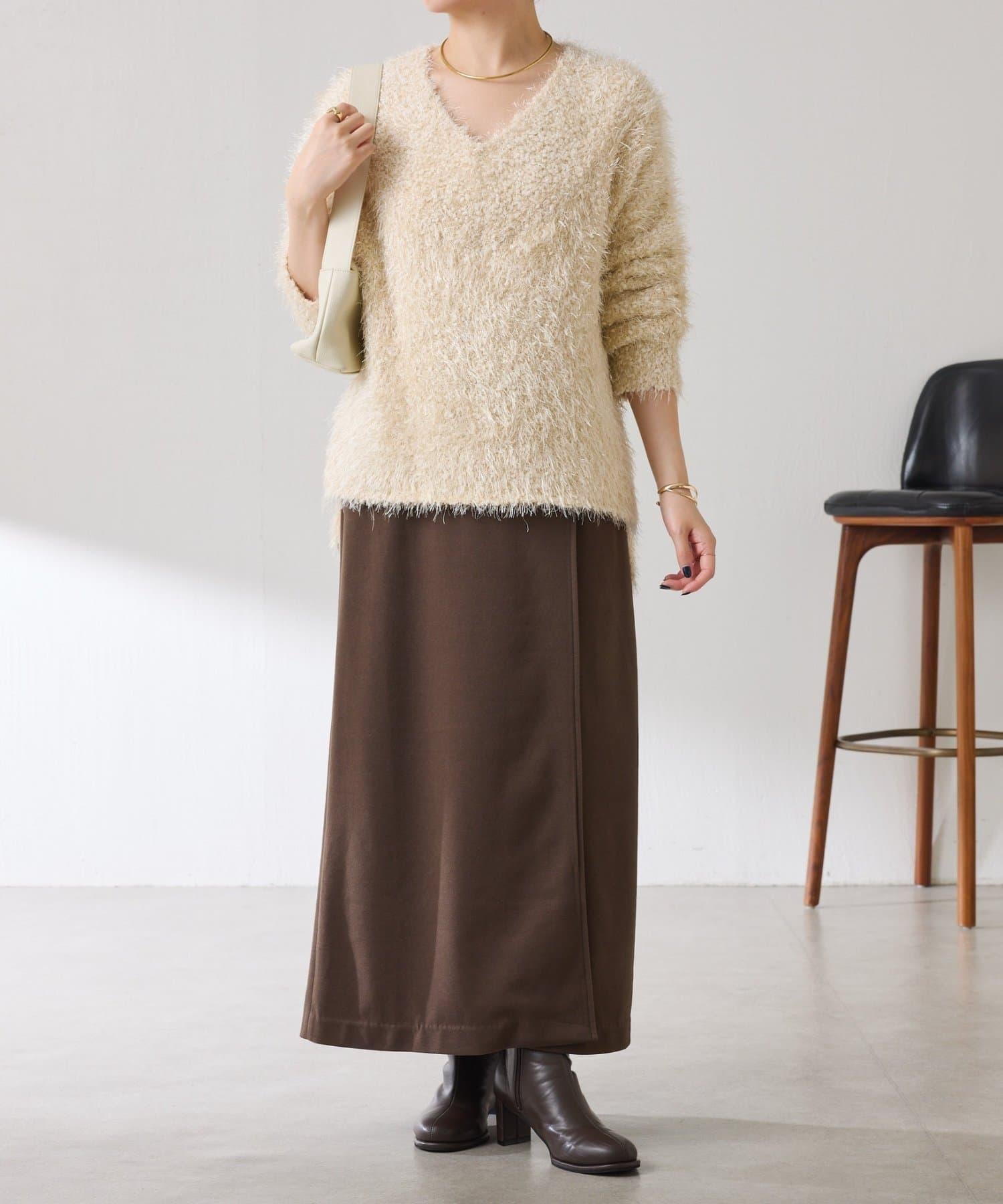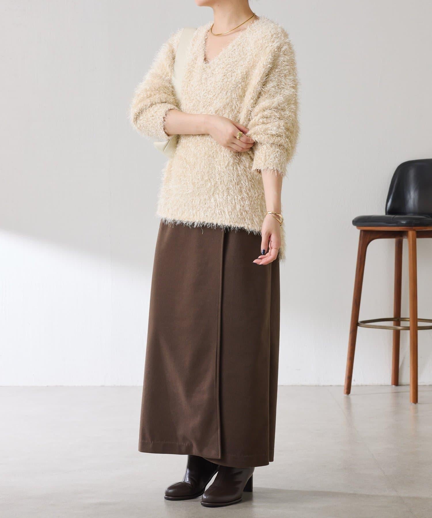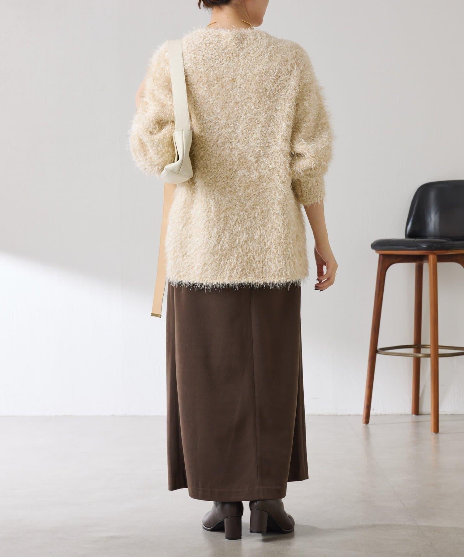 這款裙子採用凸起的材質,因此能提升溫暖秋冬的格調。米白色的材質也不透明。