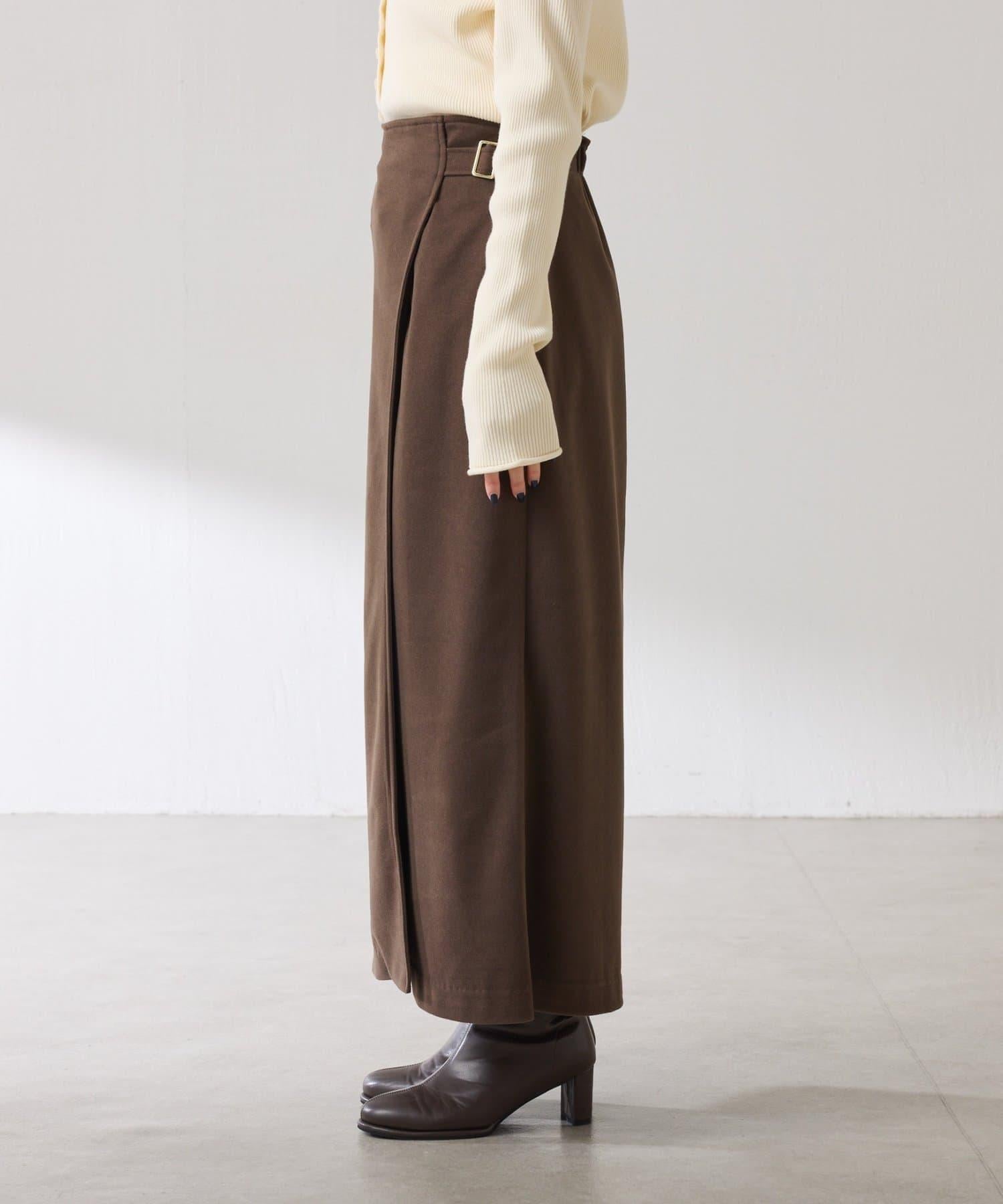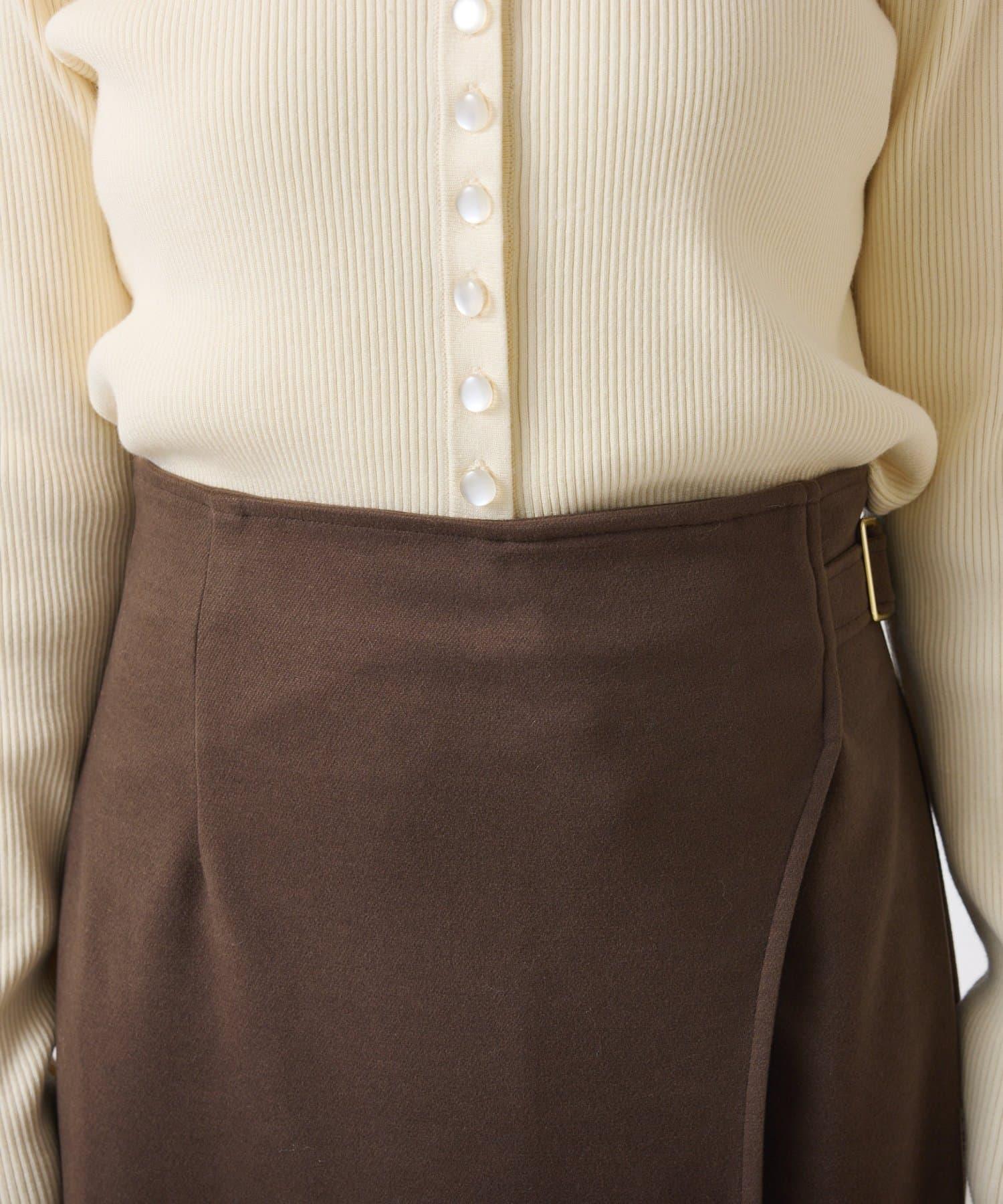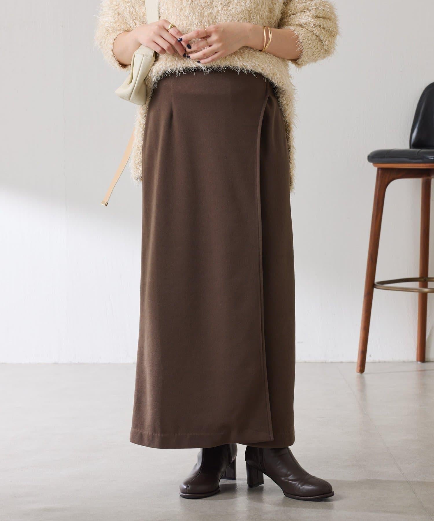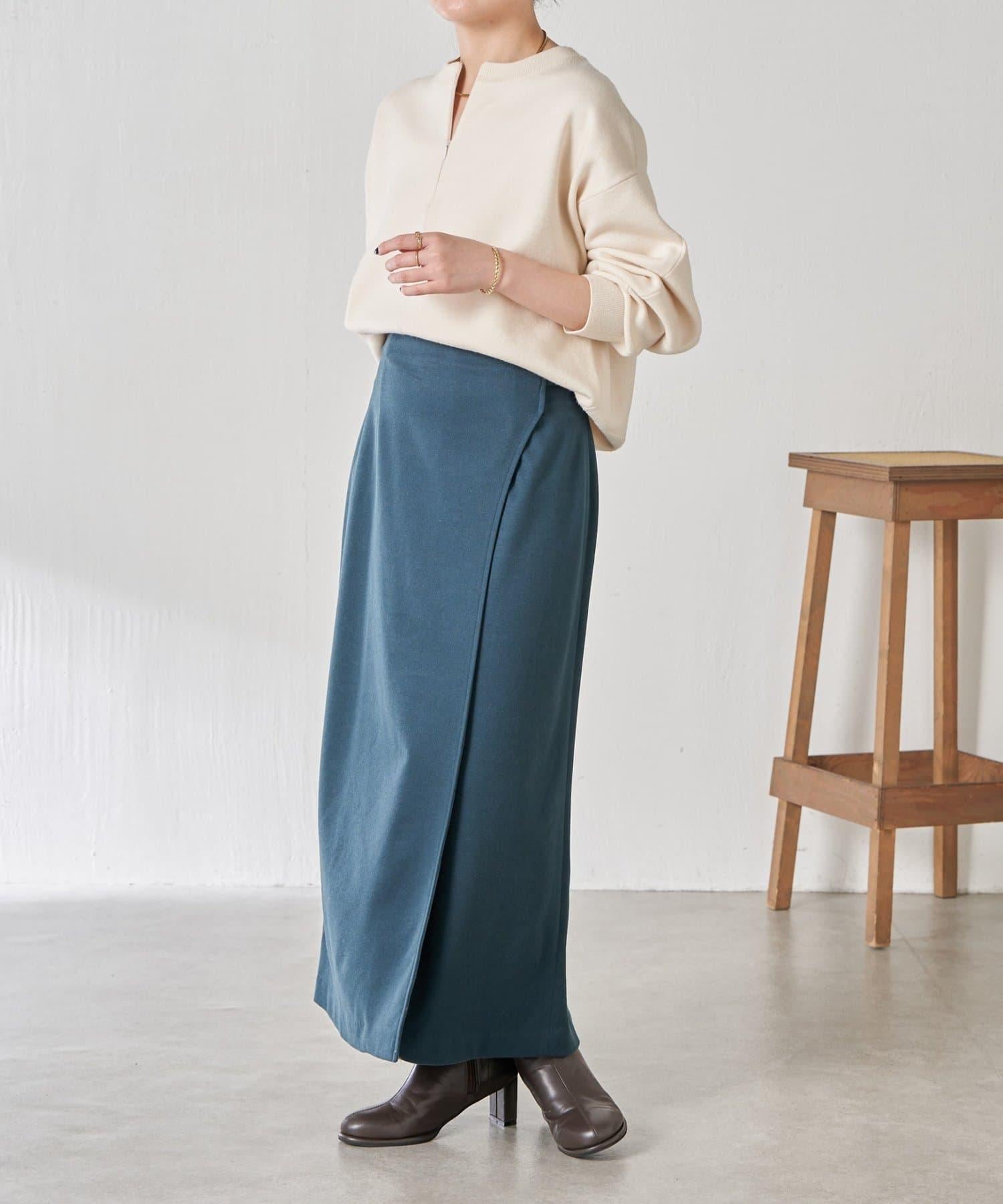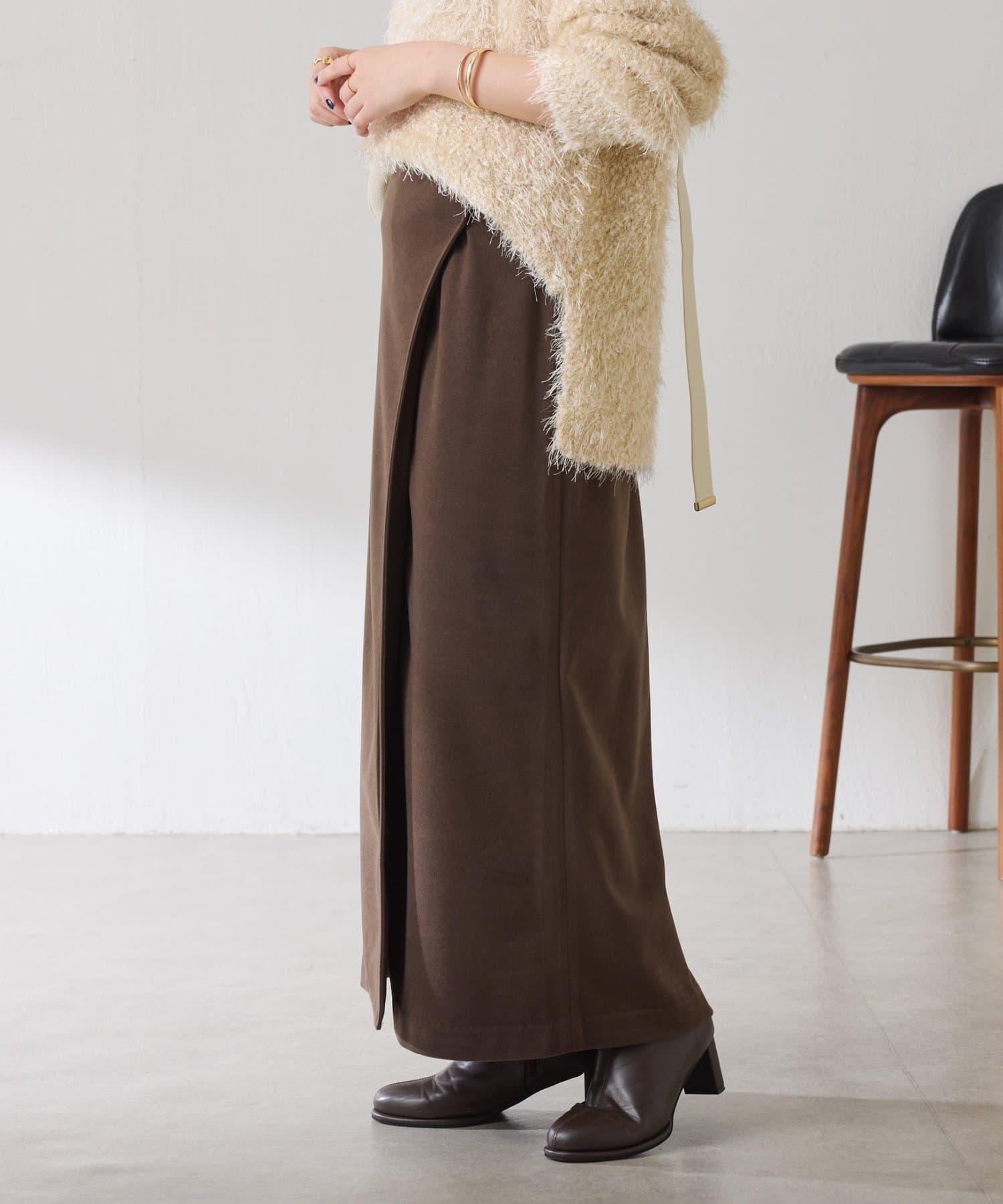 這款裙子採用凸起的材質,因此能提升溫暖秋冬的格調。米白色的材質也不透明。
