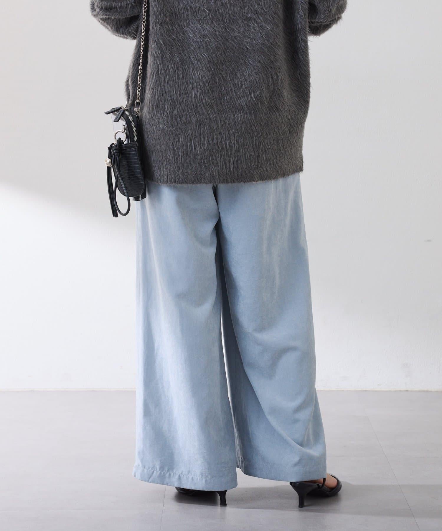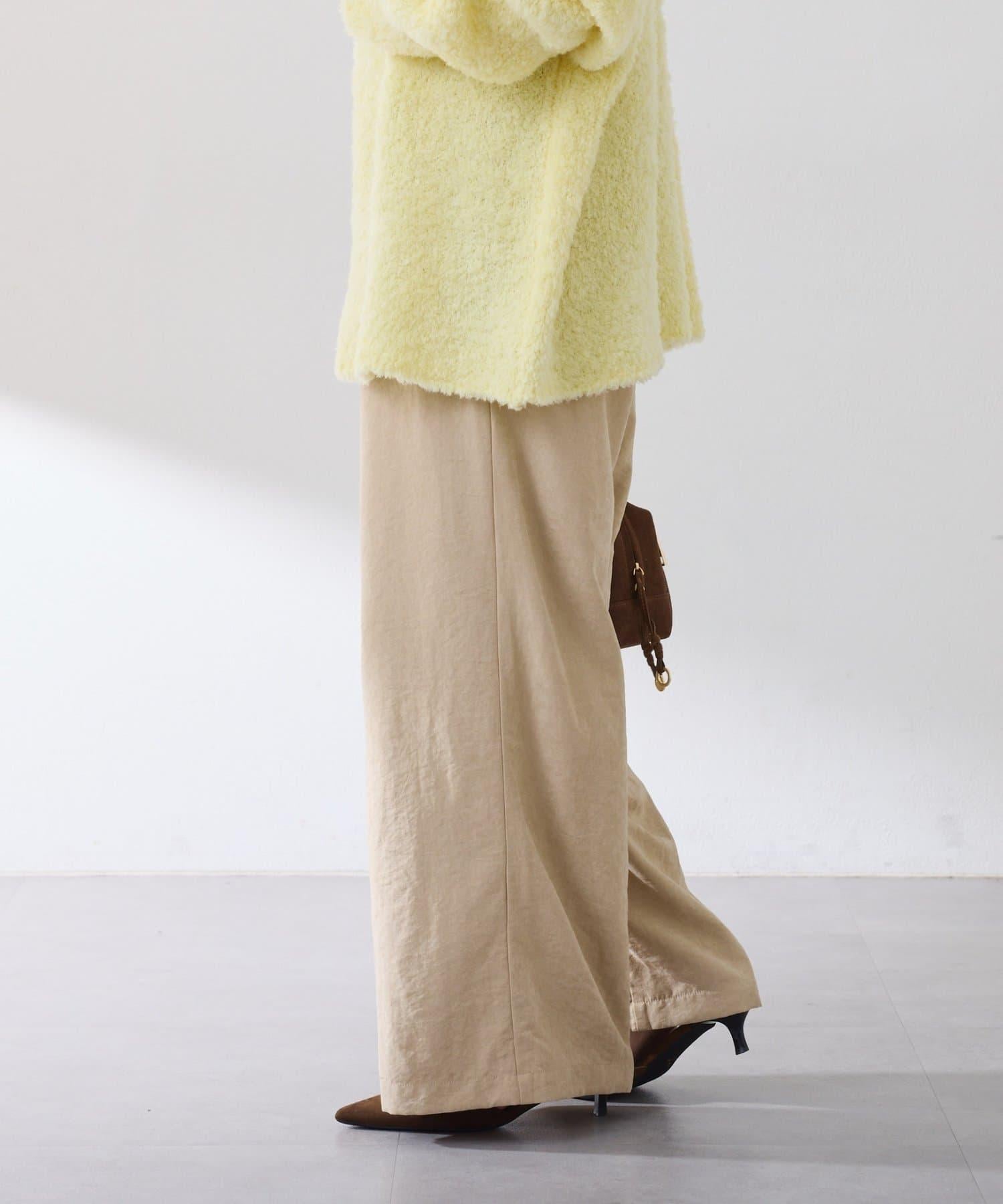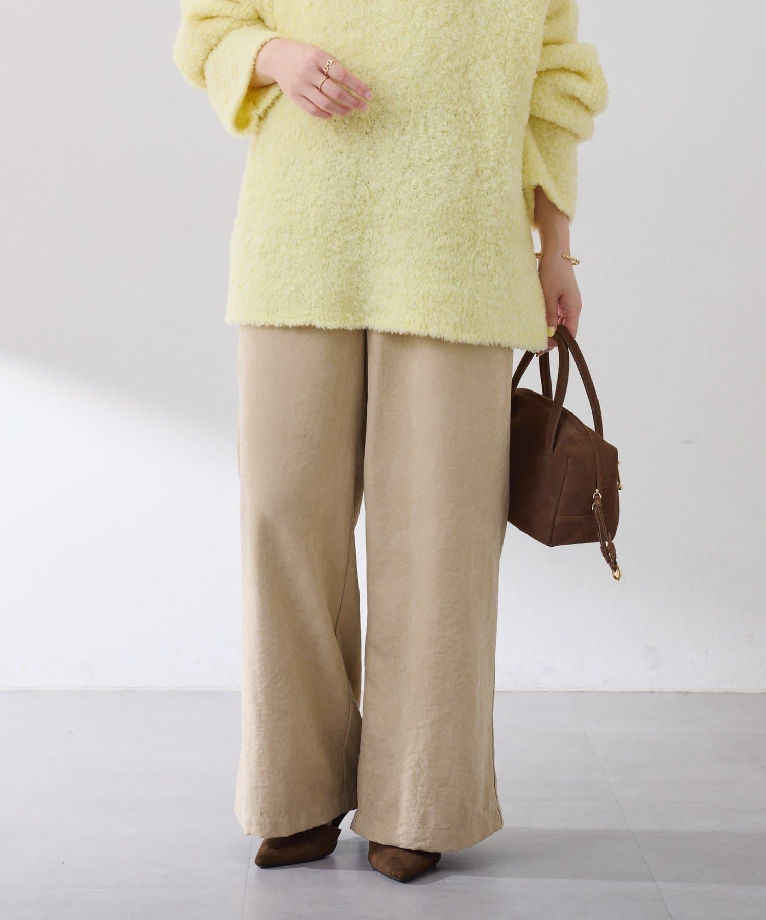 該款長褲款式輕鬆,桃紅色微微凸起的啞光質地給人以沉穩的印象。
