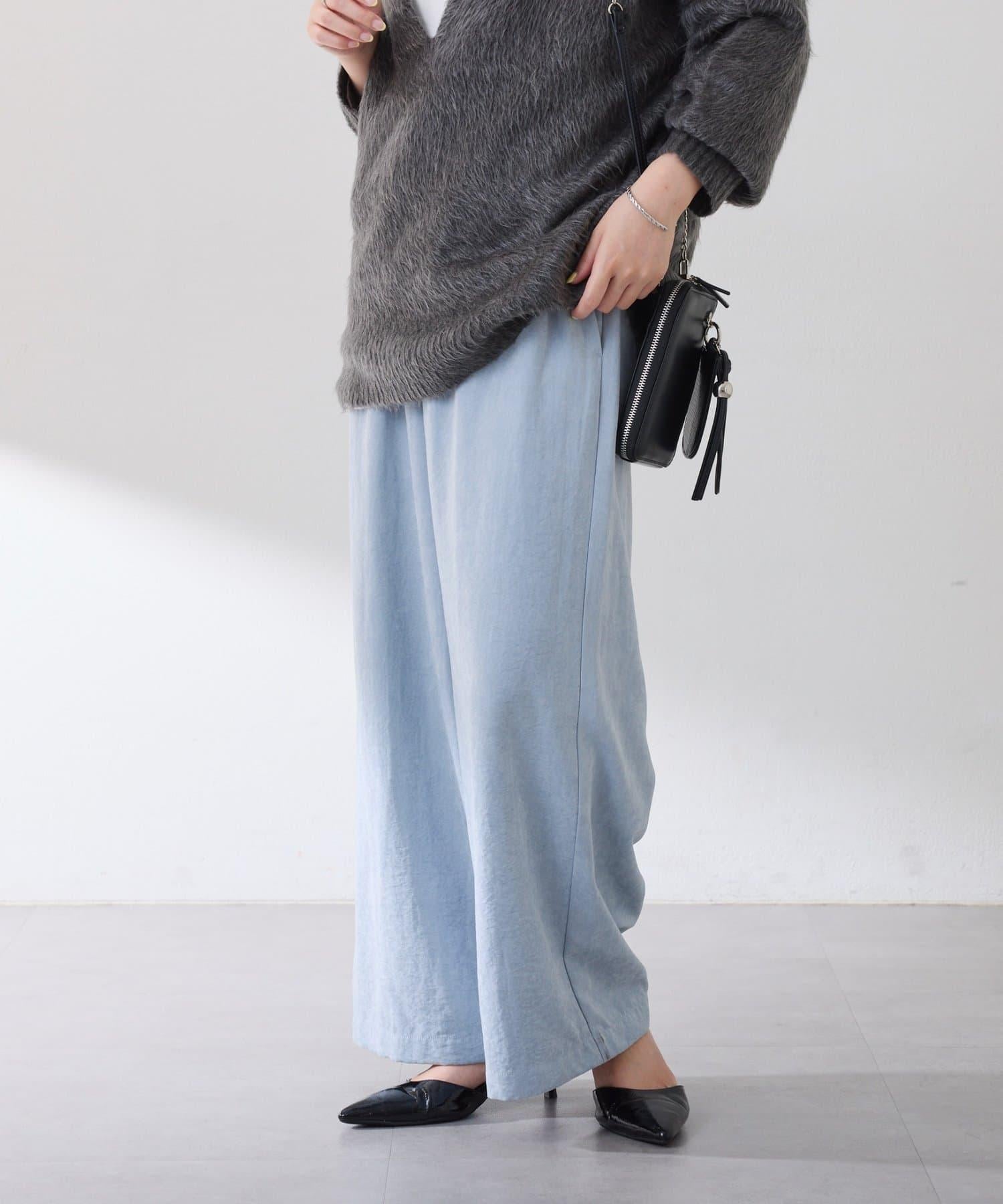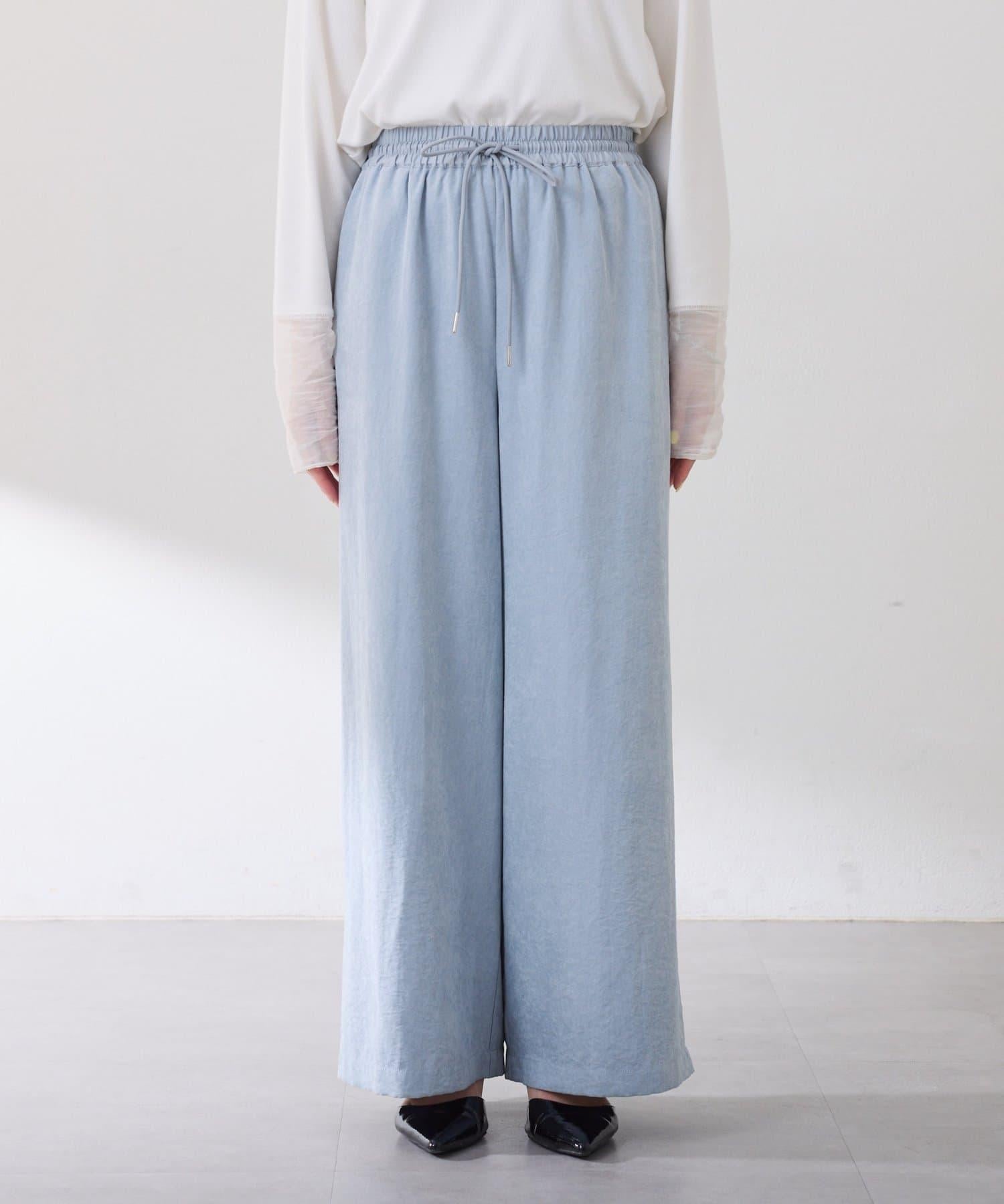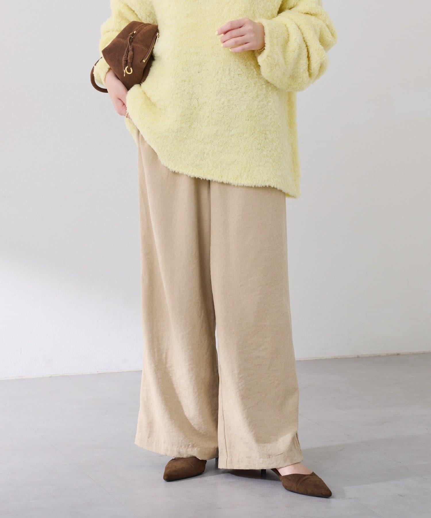 該款長褲款式輕鬆,桃紅色微微凸起的啞光質地給人以沉穩的印象。