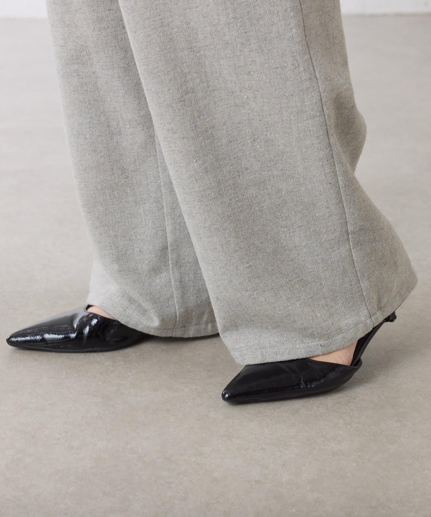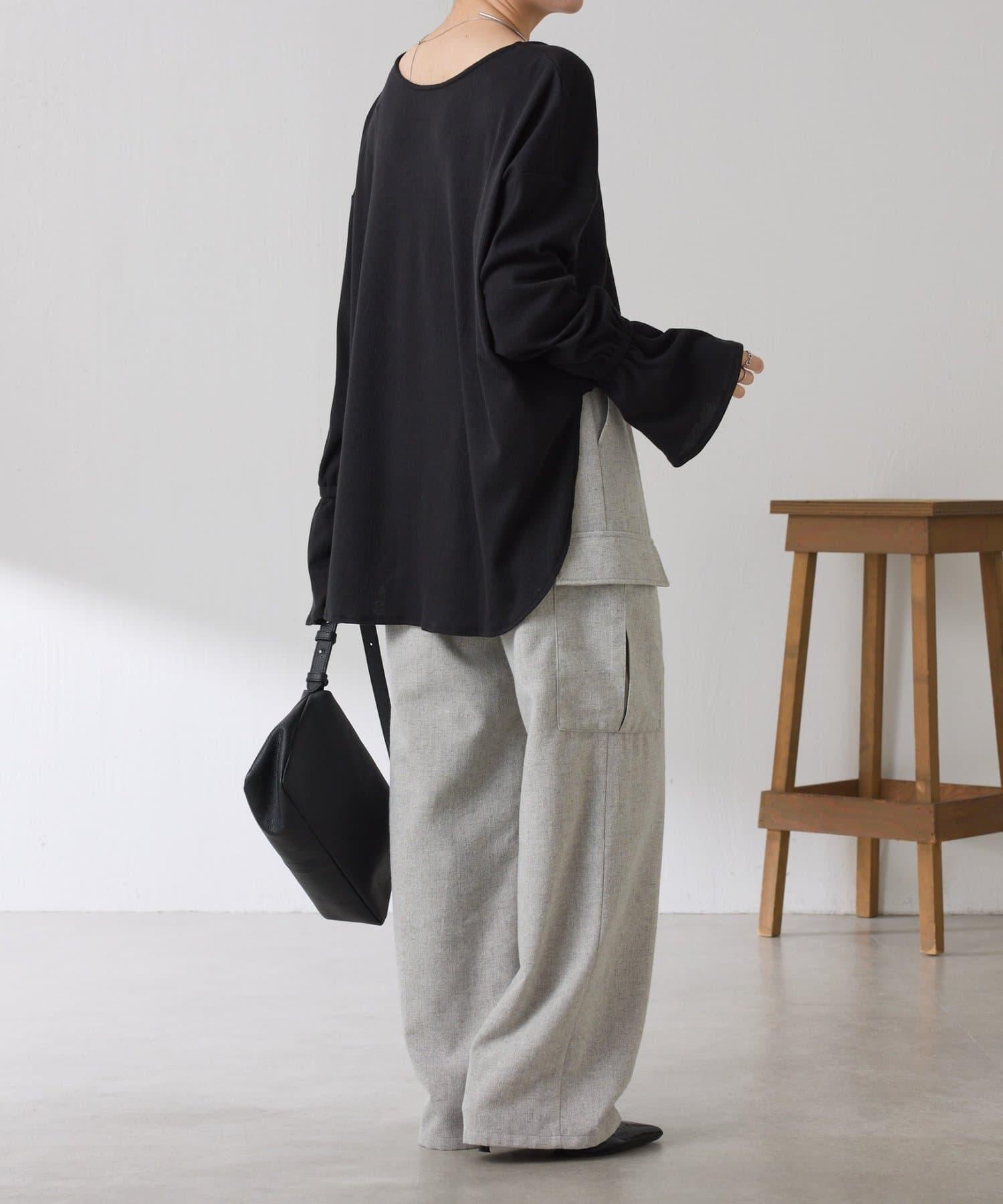 這款簡便褲子採用暖霓綸面料,帶有紗結。