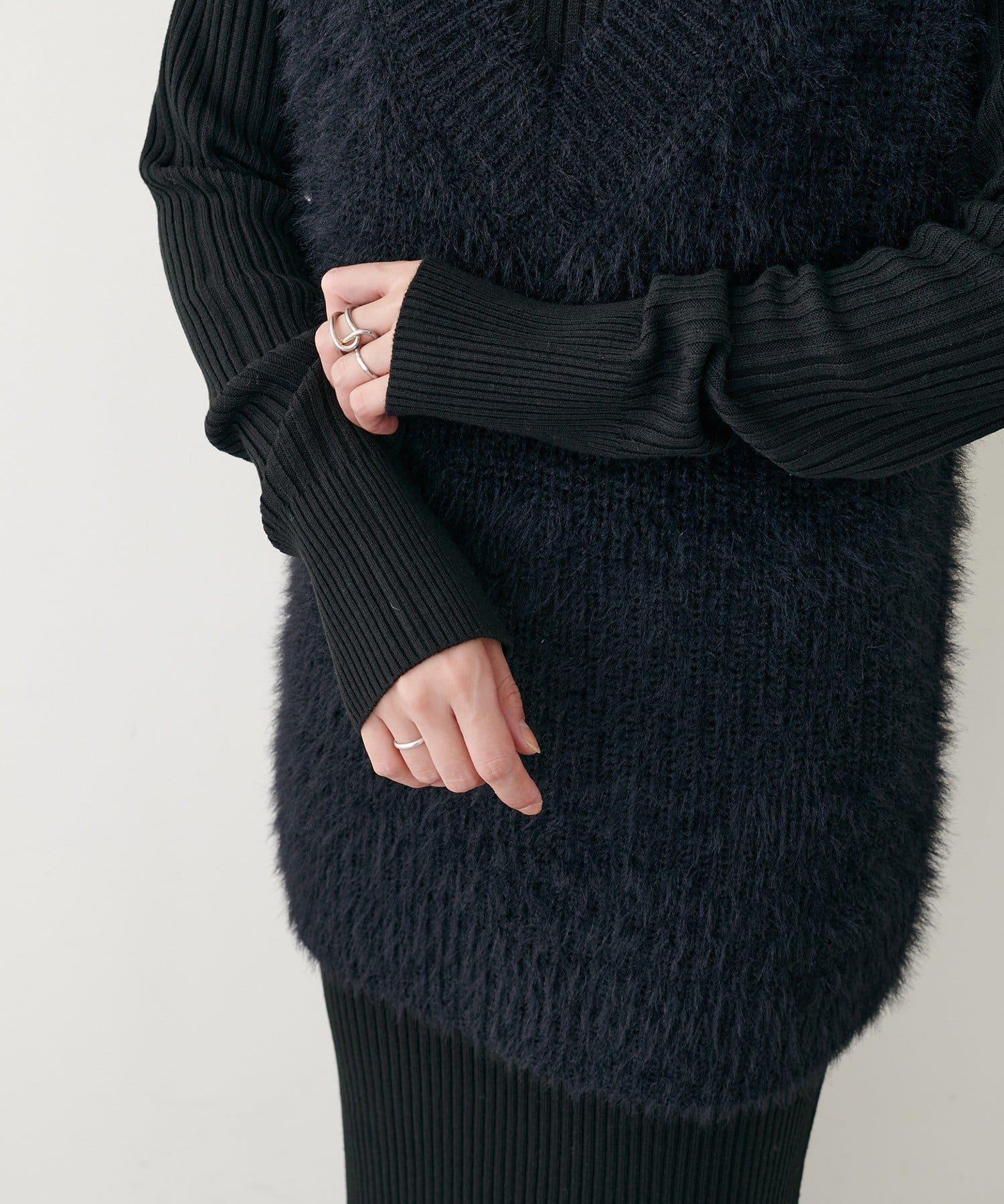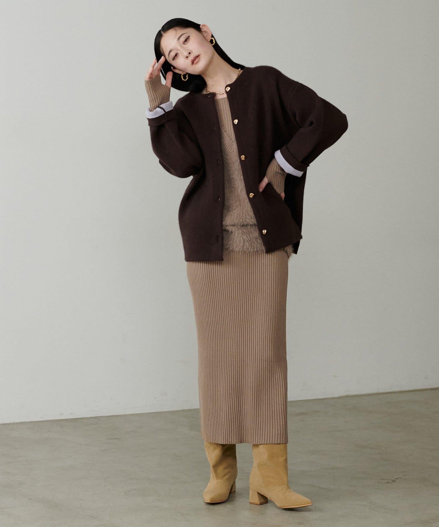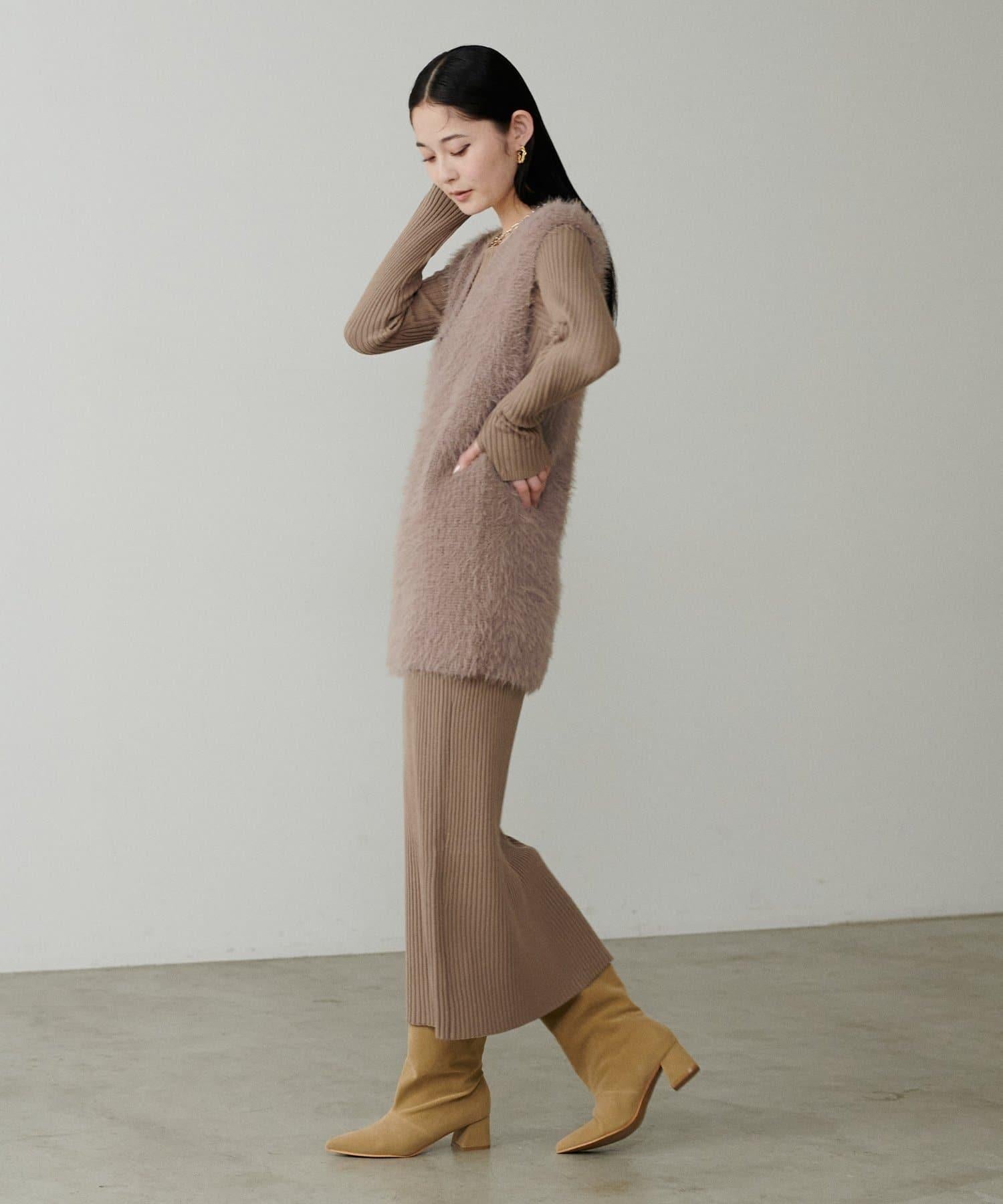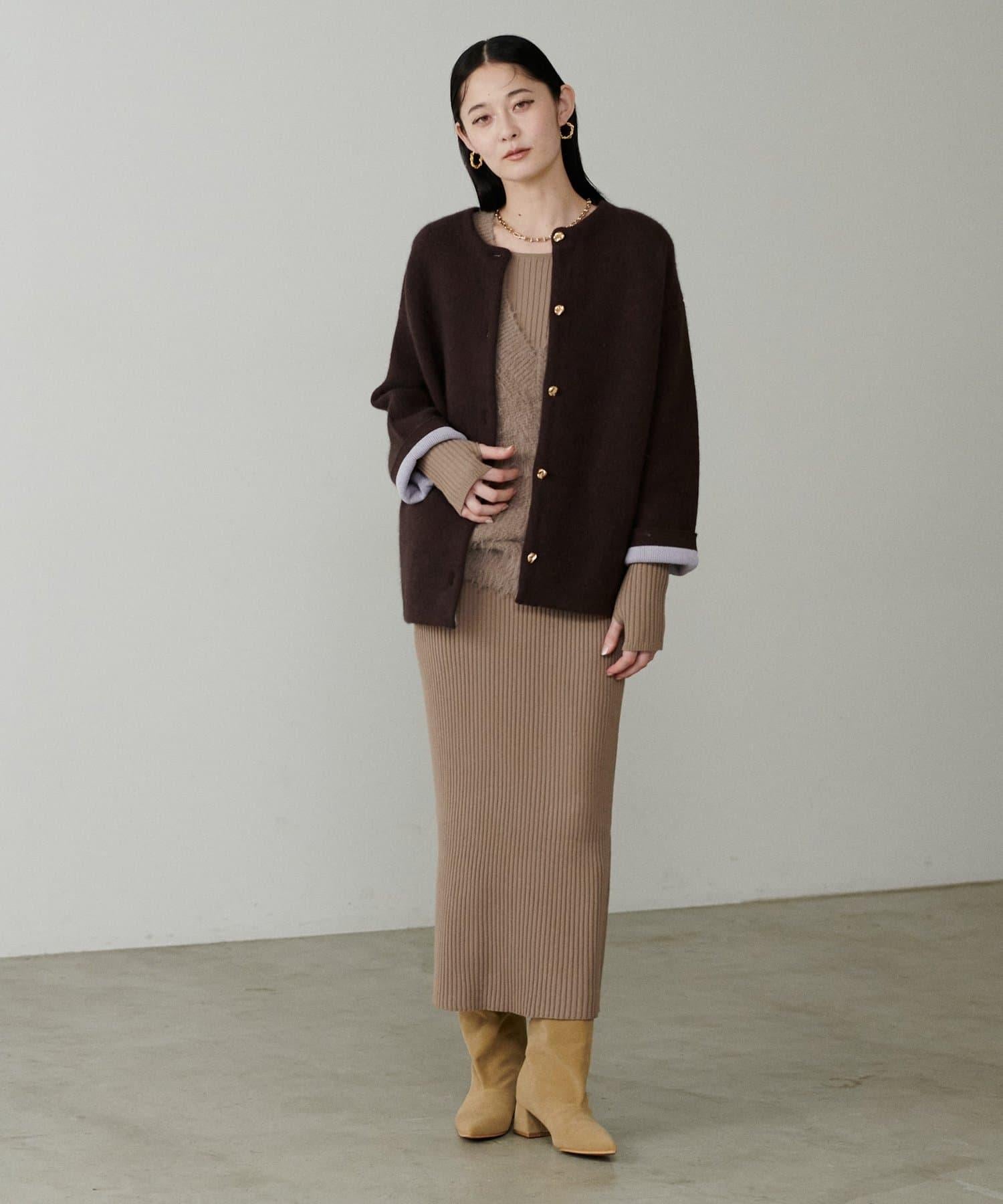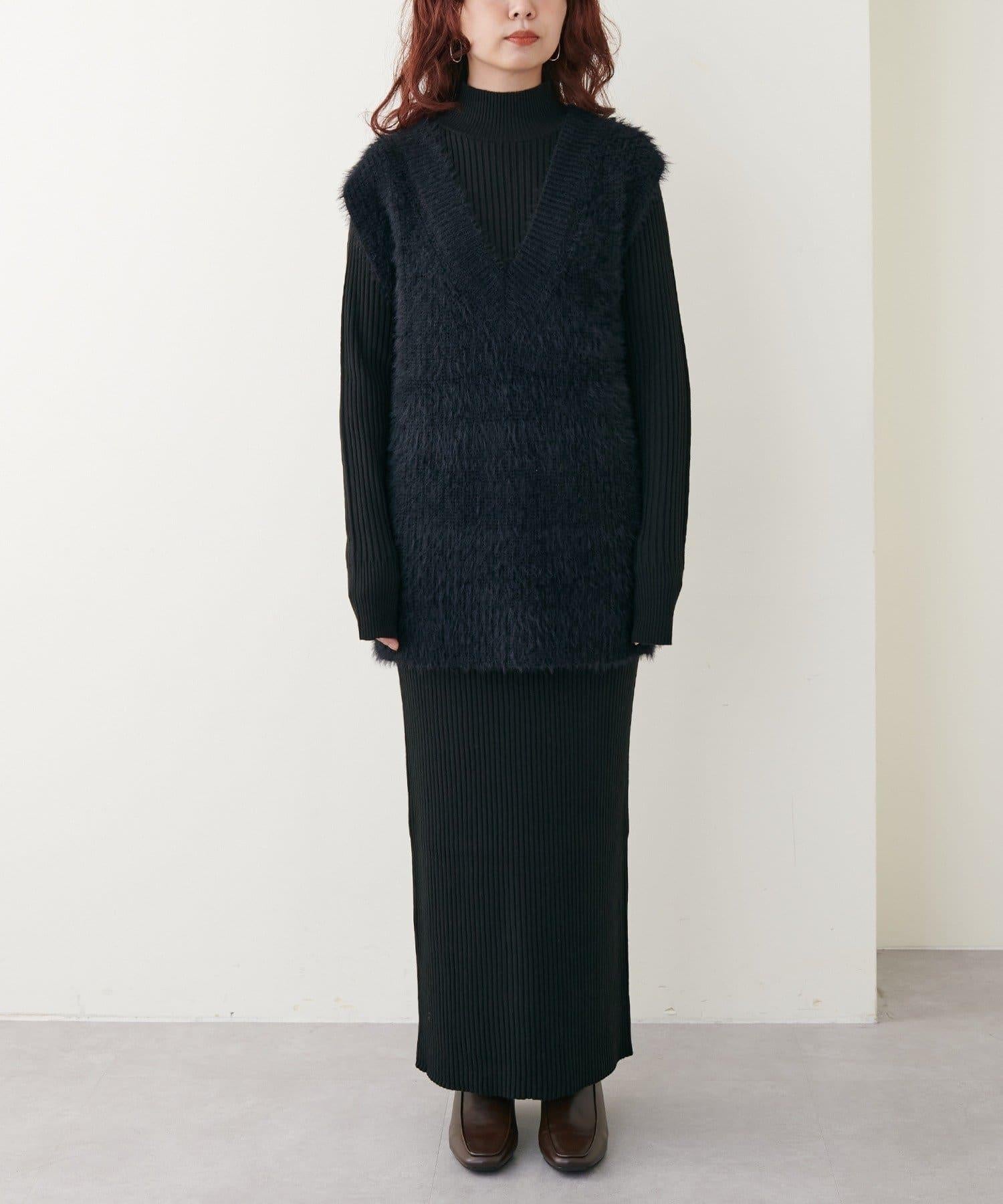 可選的條紋針織連衣裙×羽毛馬甲套裝