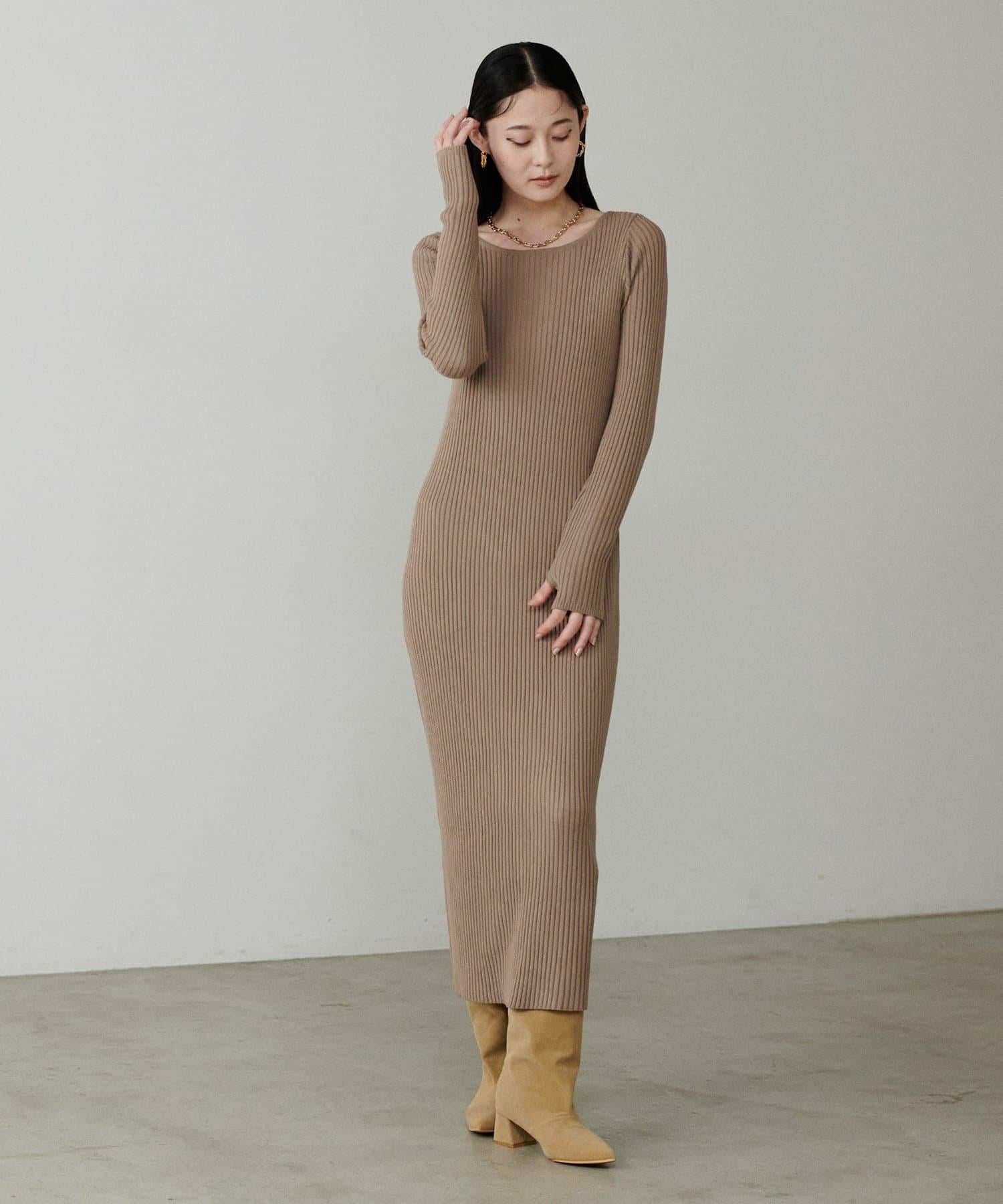 針織連衣裙採用不刺手的紗線製成,具有彈力羅紋效果。