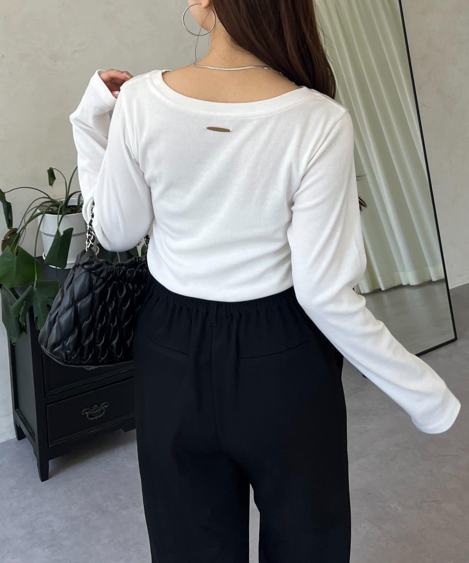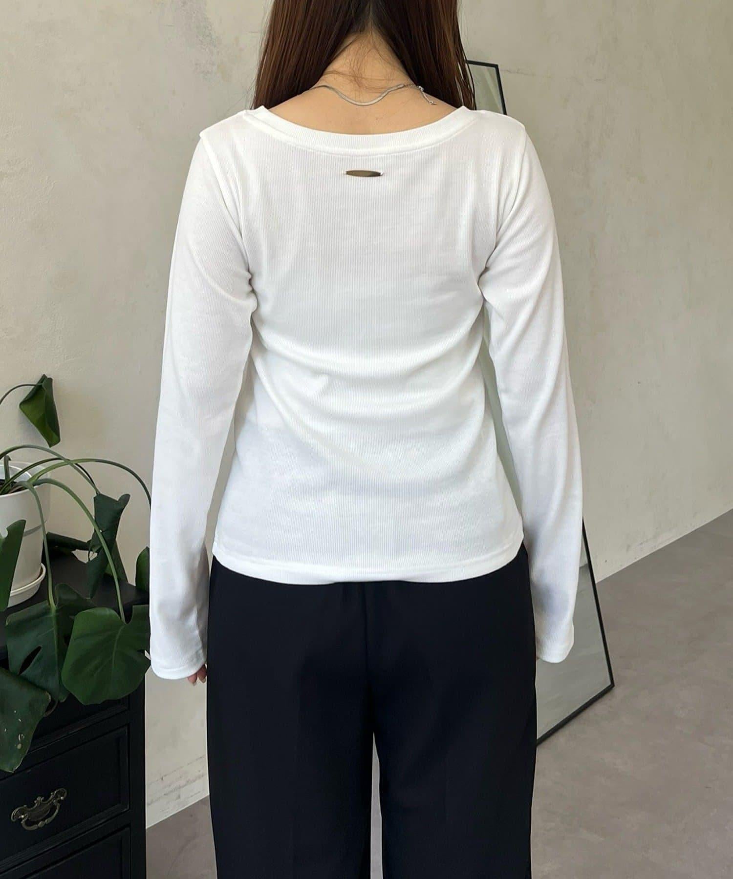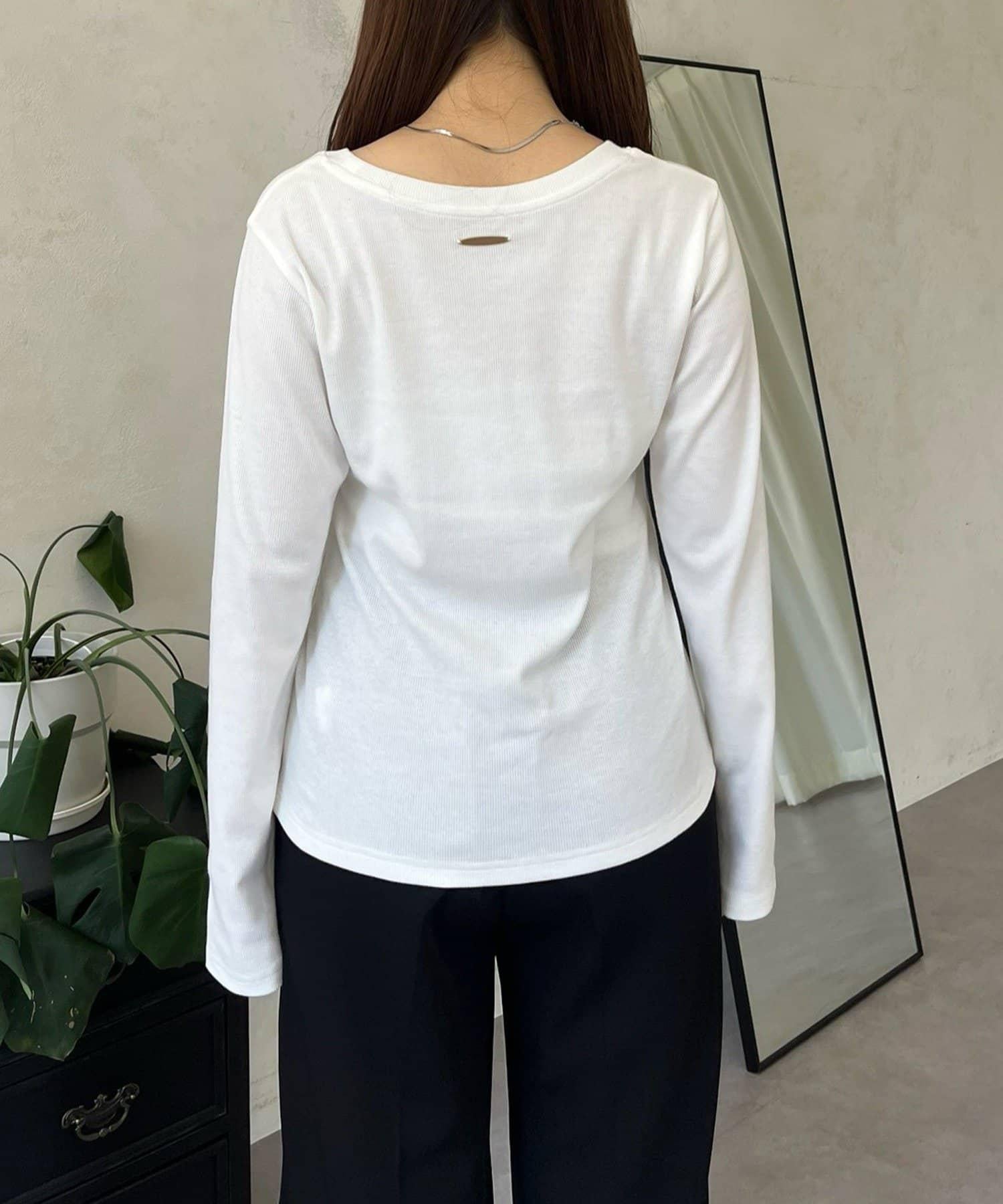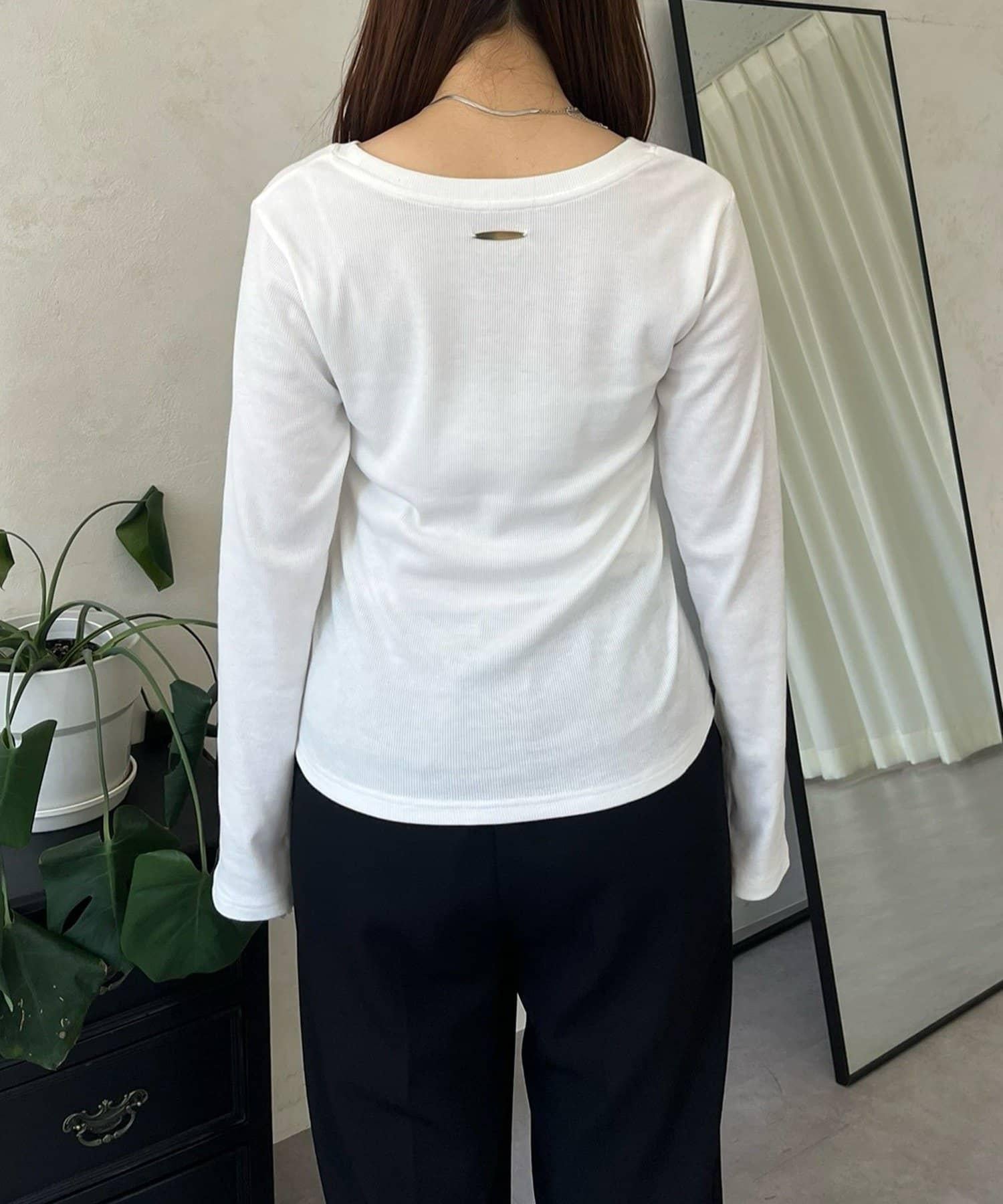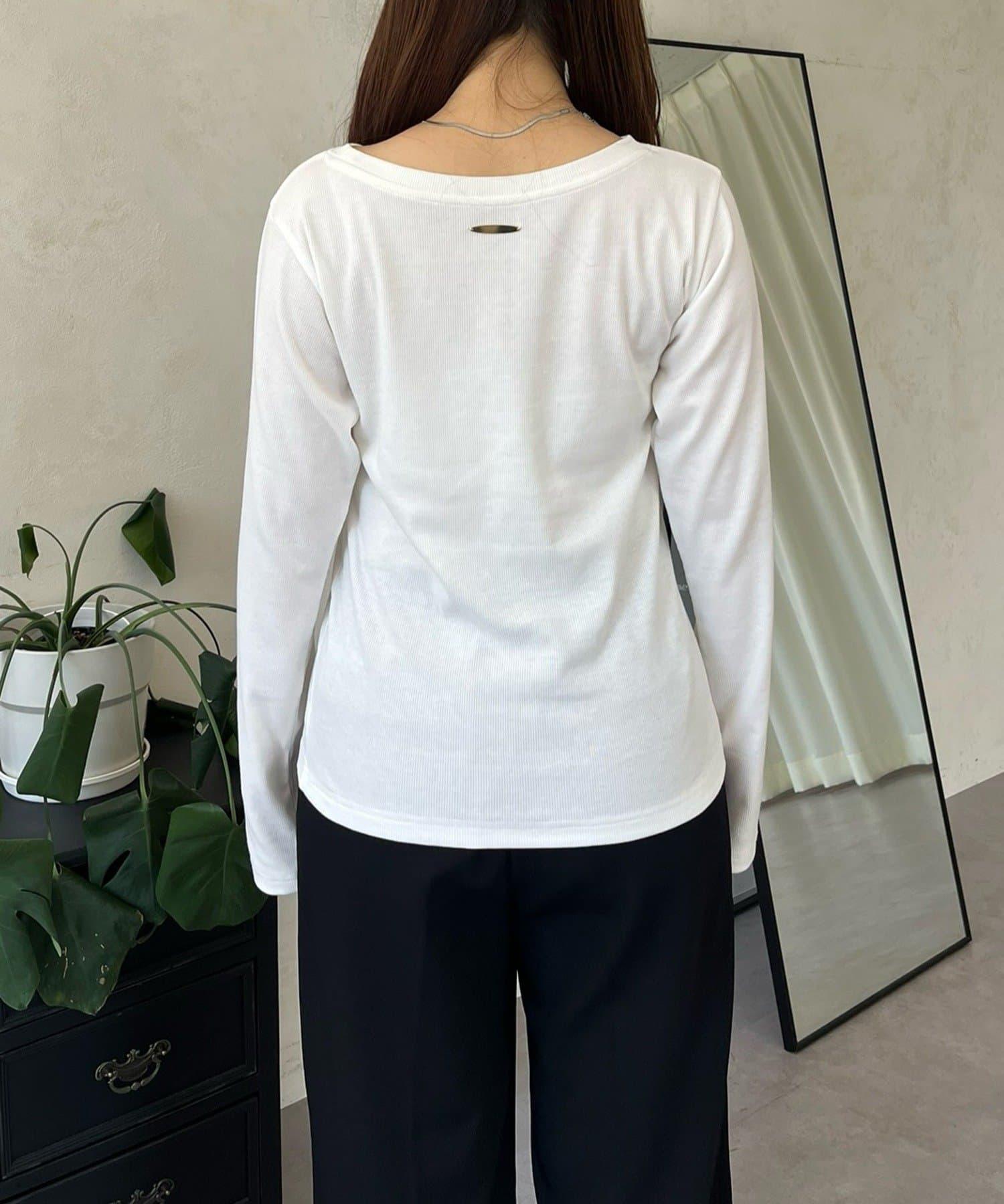 【可選領型】背部金屬裝飾羅紋長袖T恤