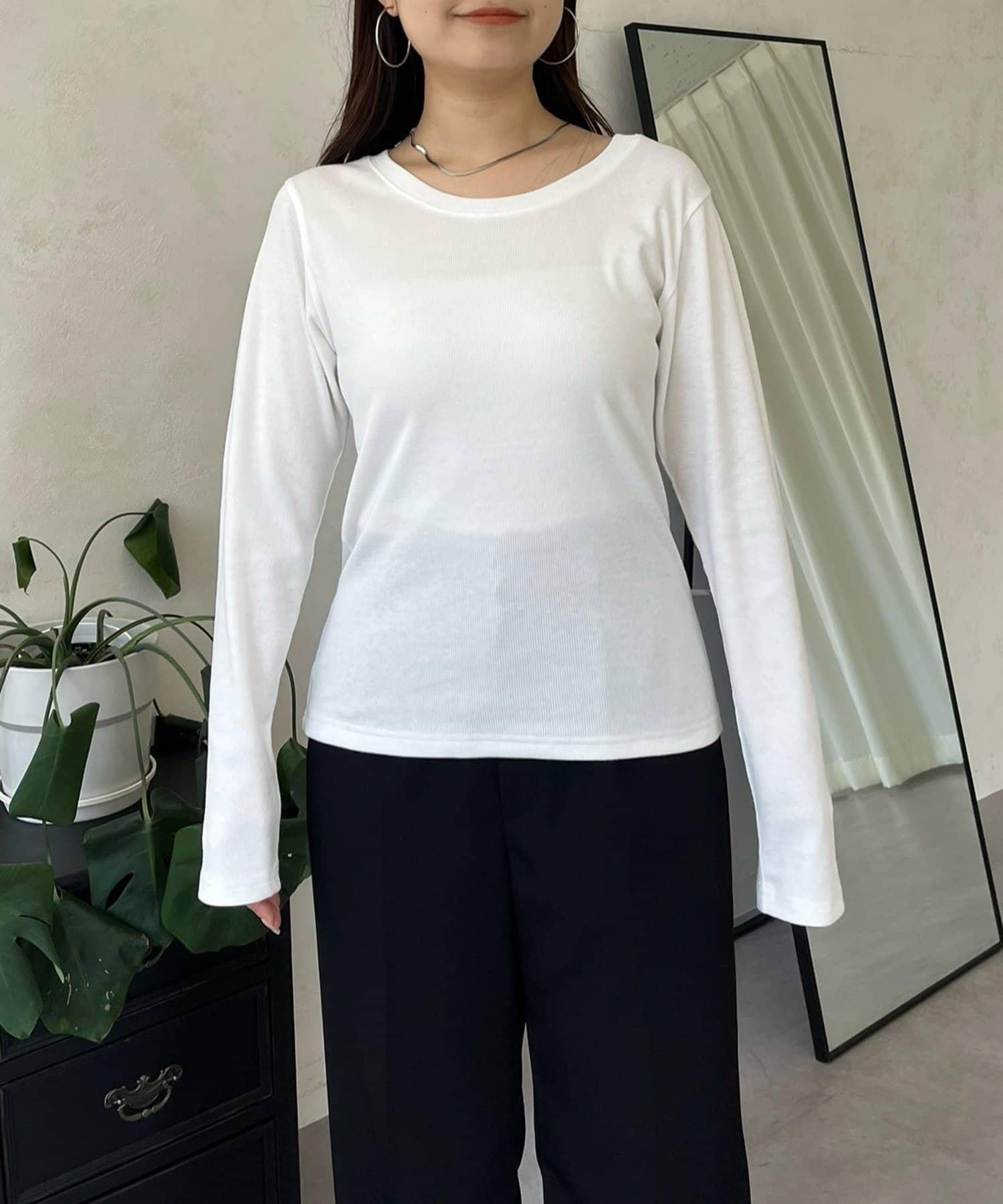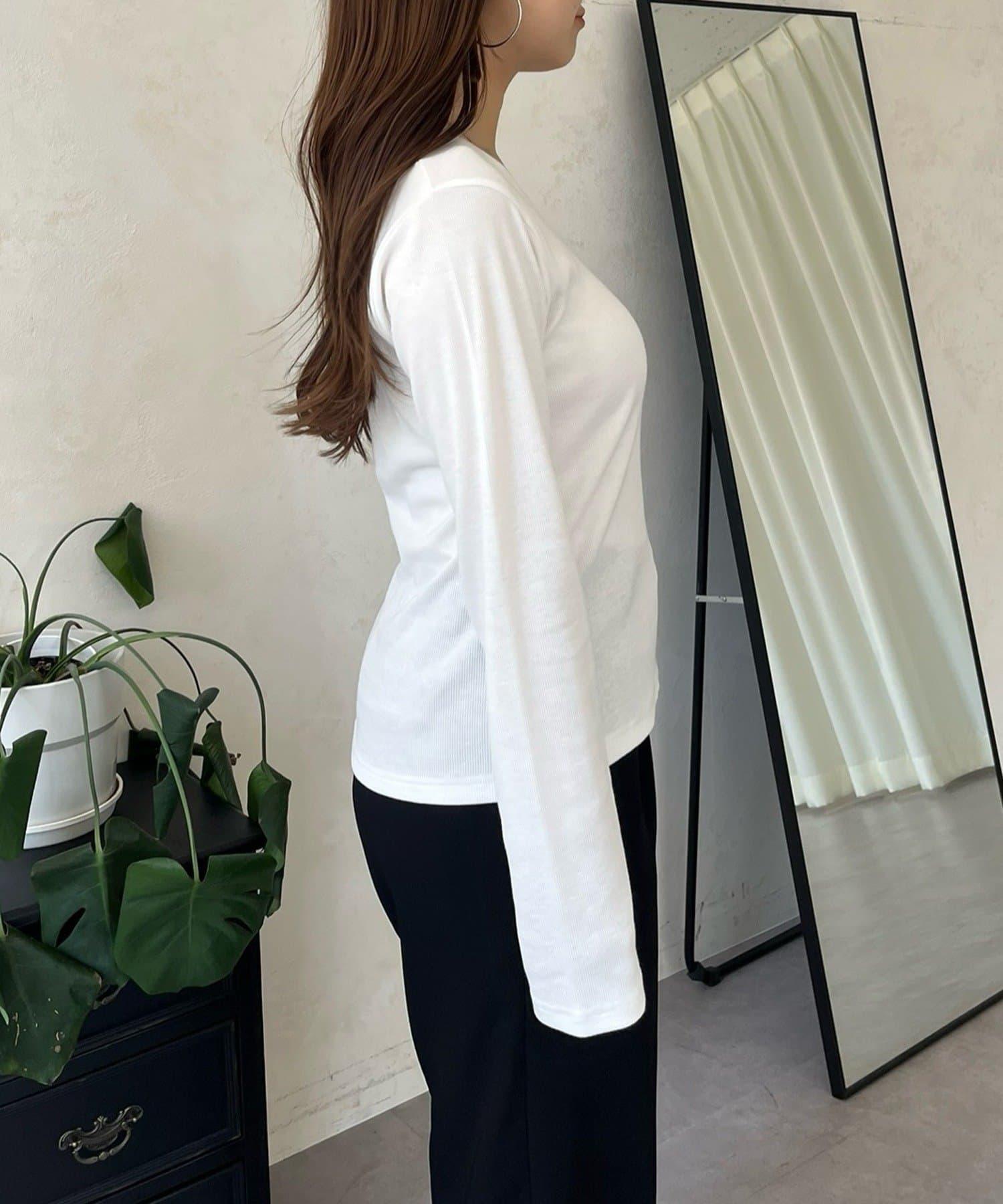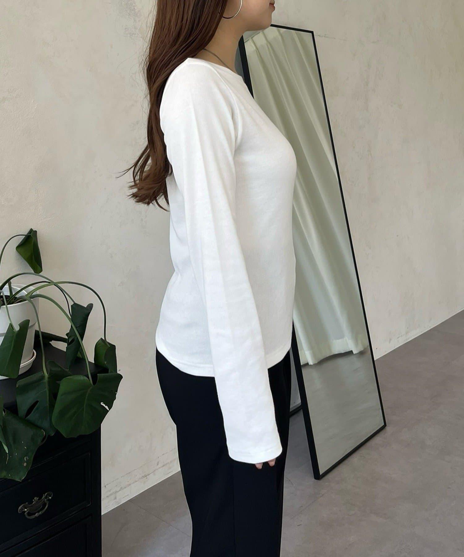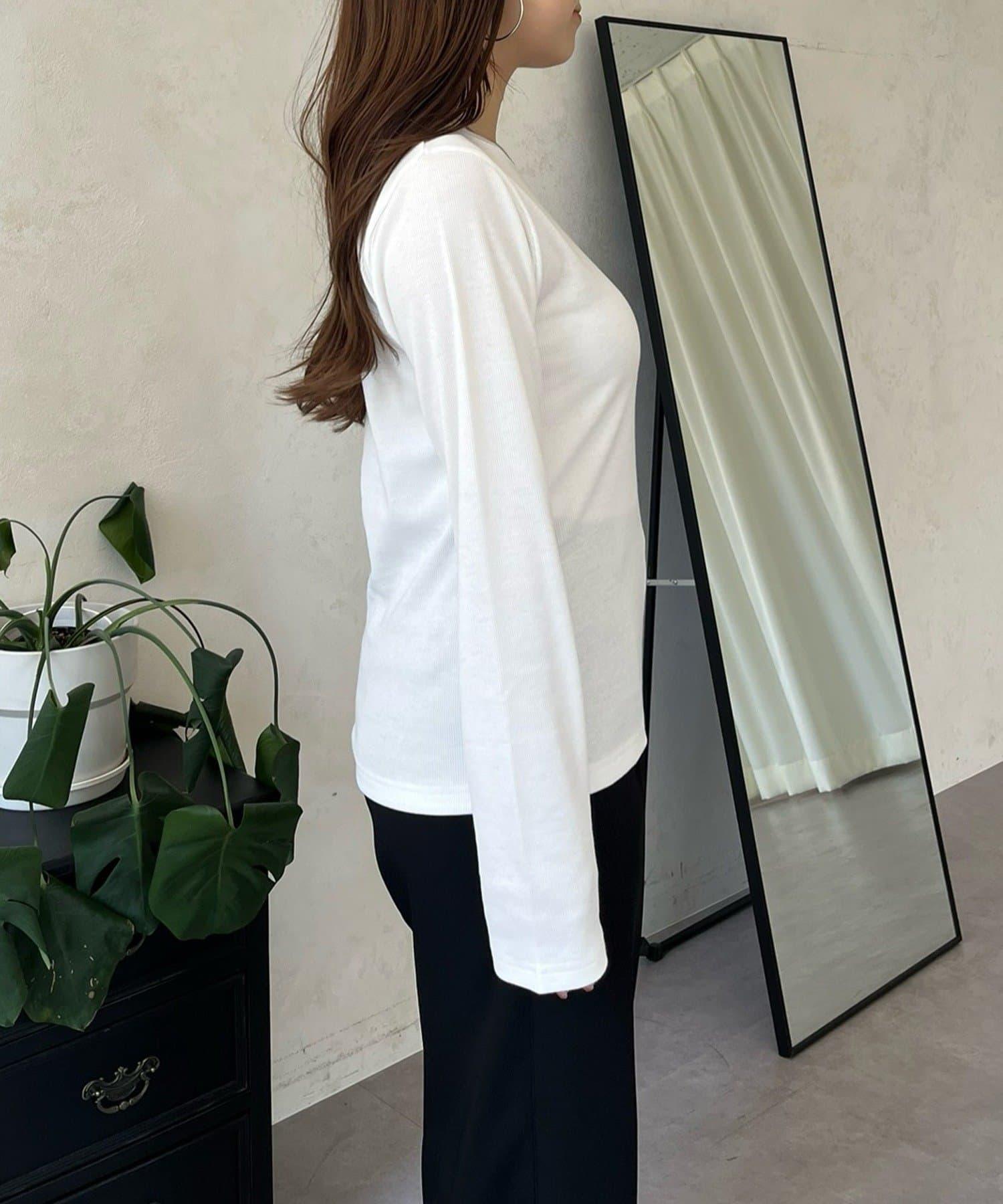 【可選領型】背部金屬裝飾羅紋長袖T恤