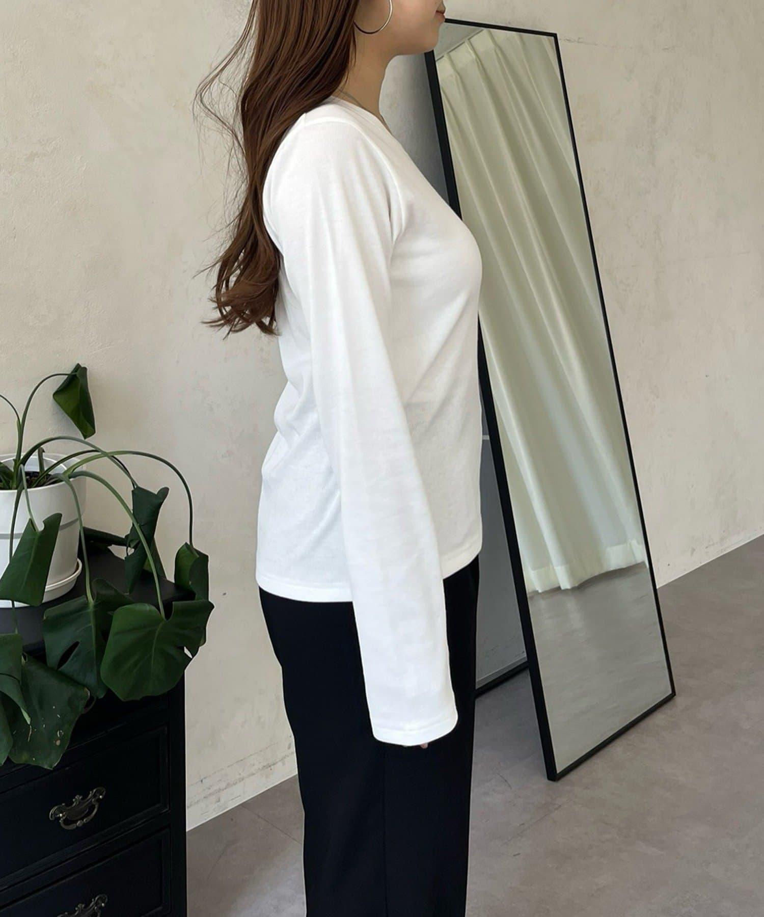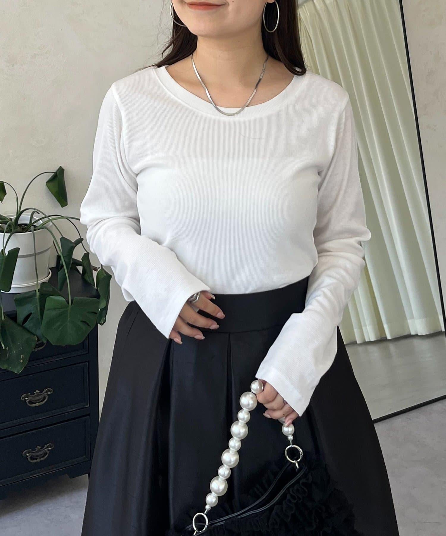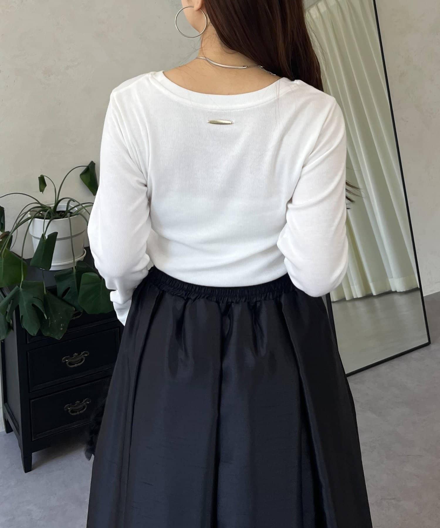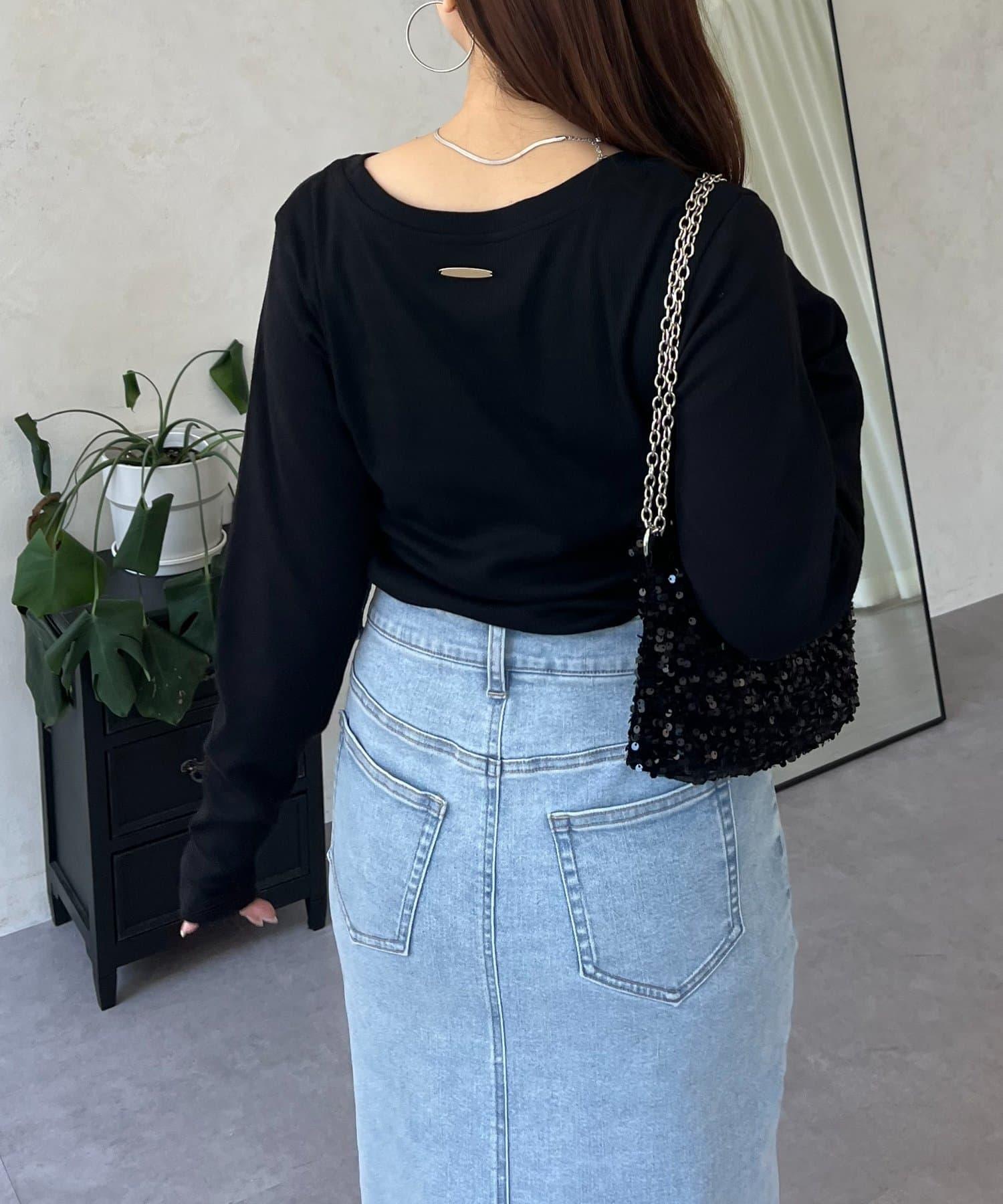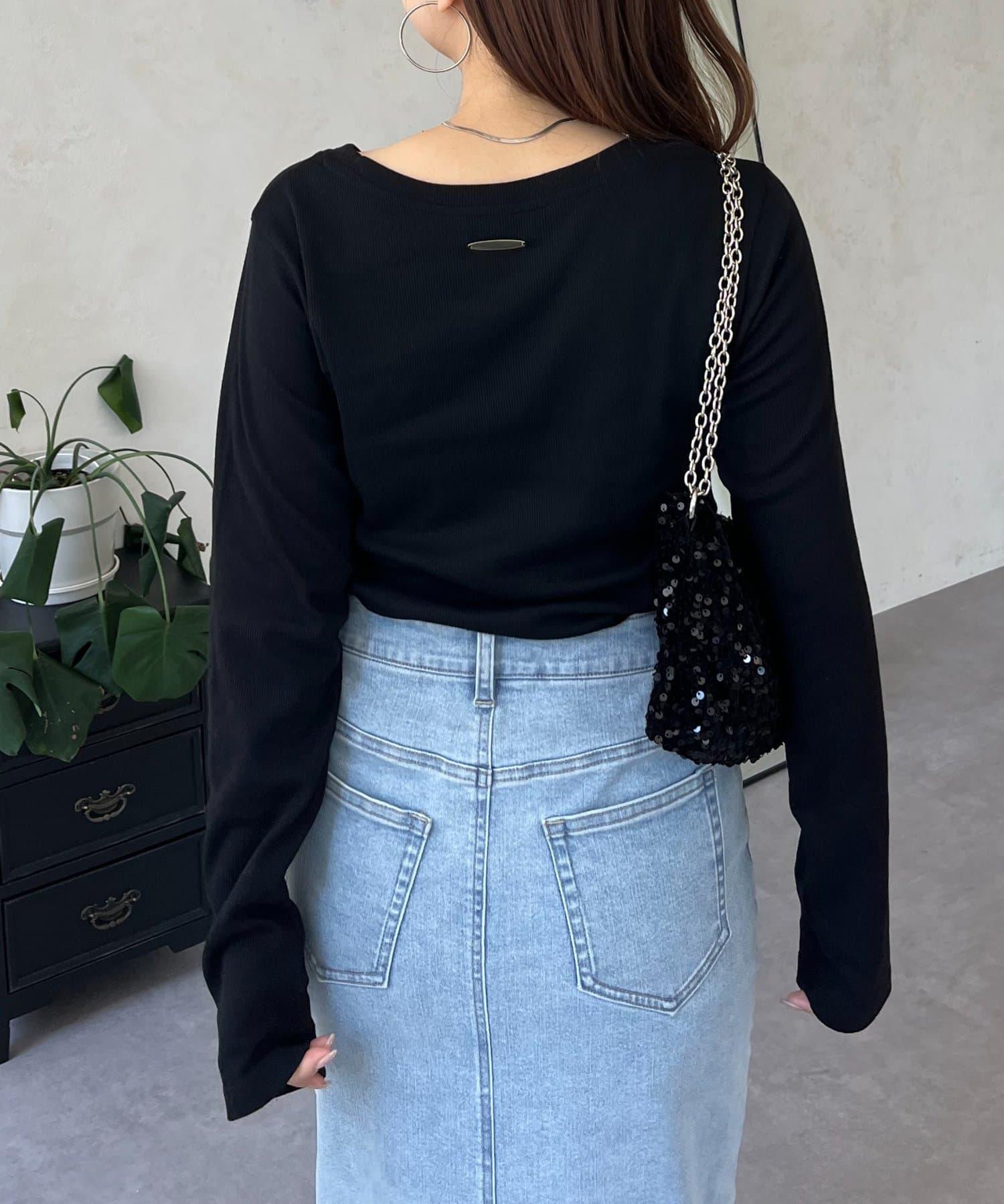 【可選領型】背部金屬裝飾羅紋長袖T恤