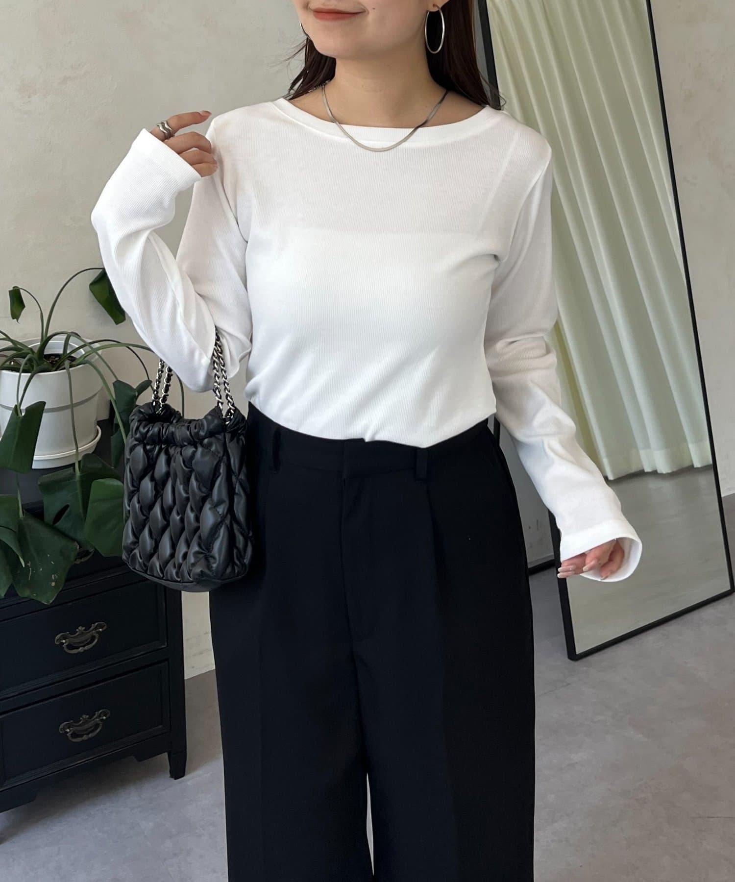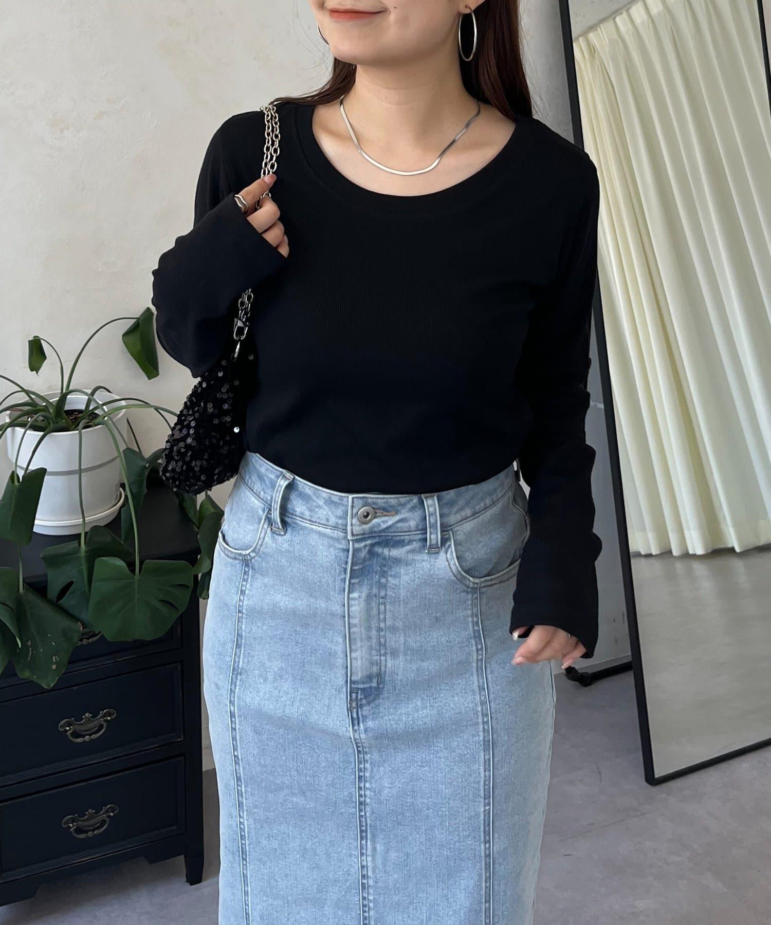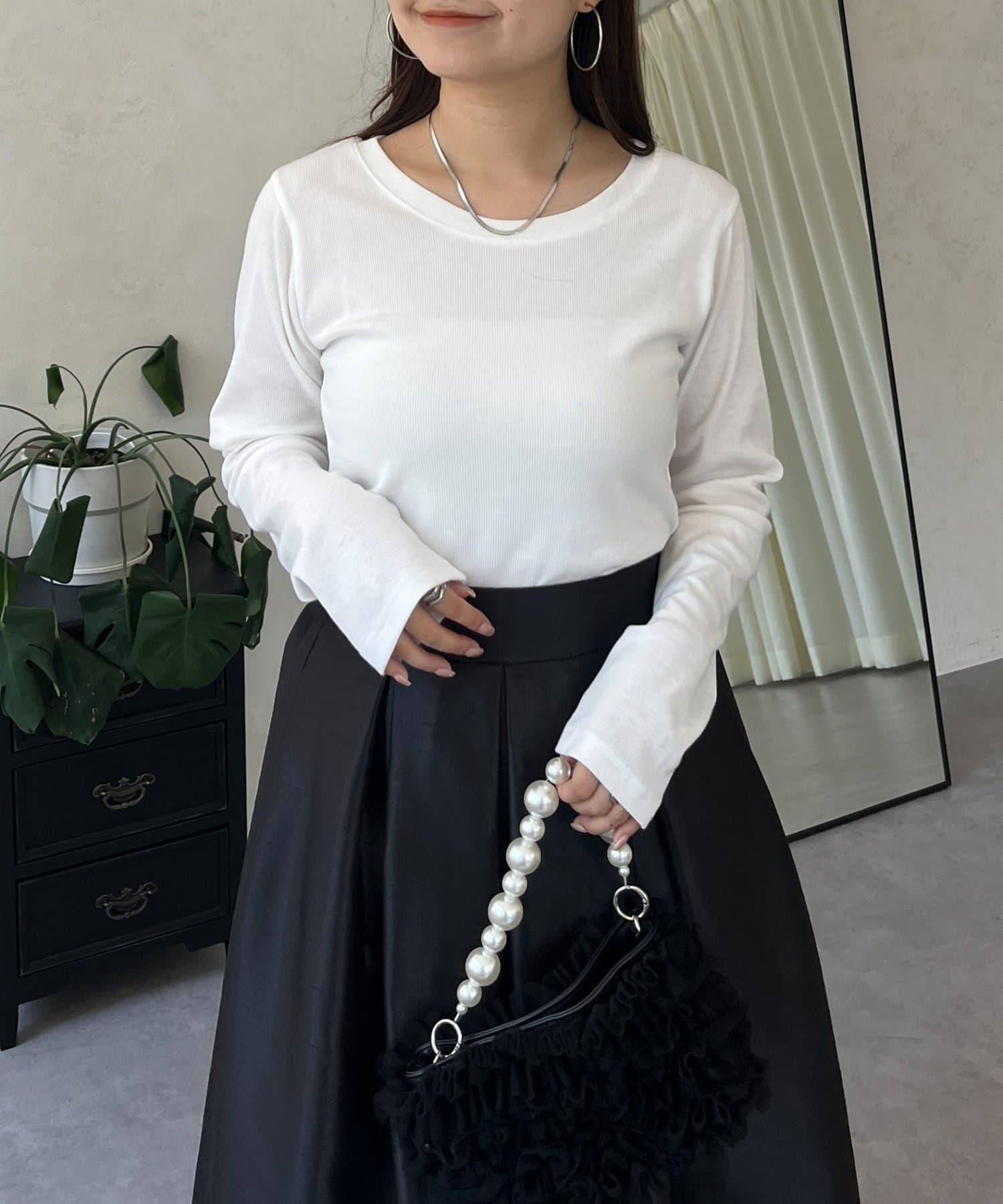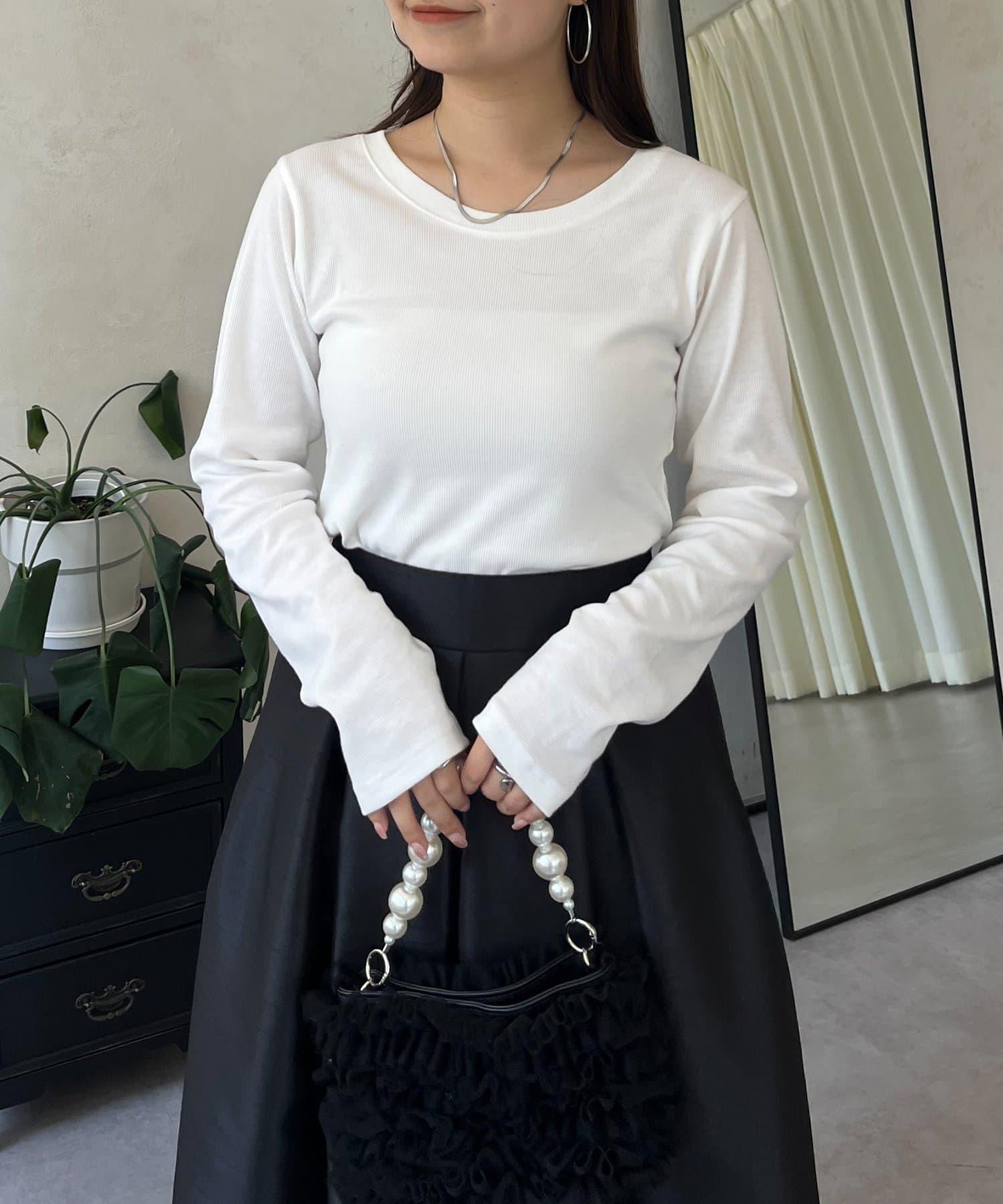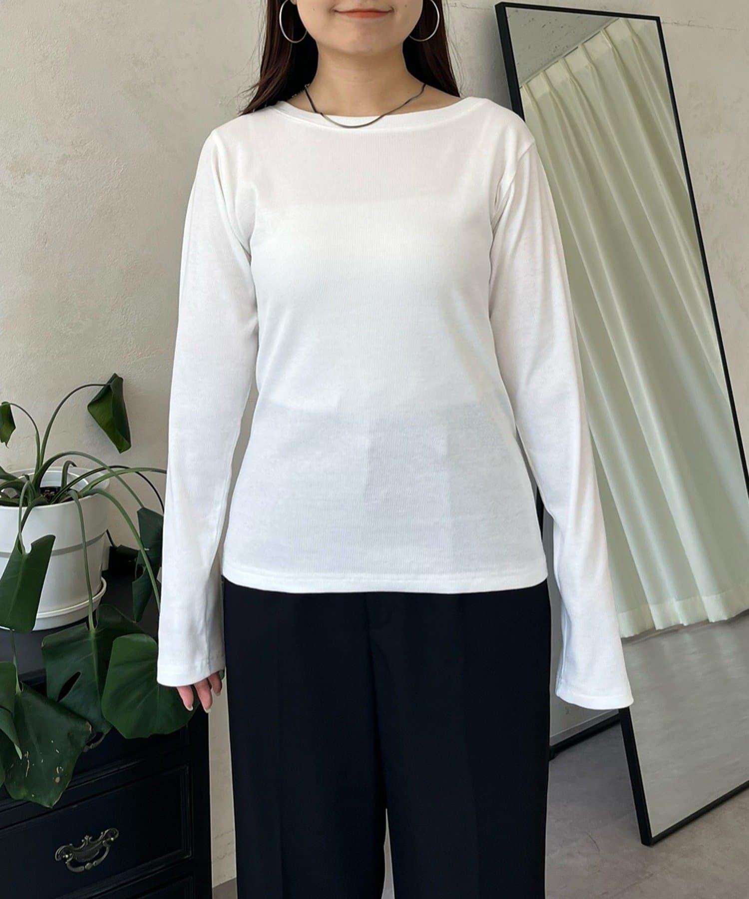 【可選領型】背部金屬裝飾羅紋長袖T恤