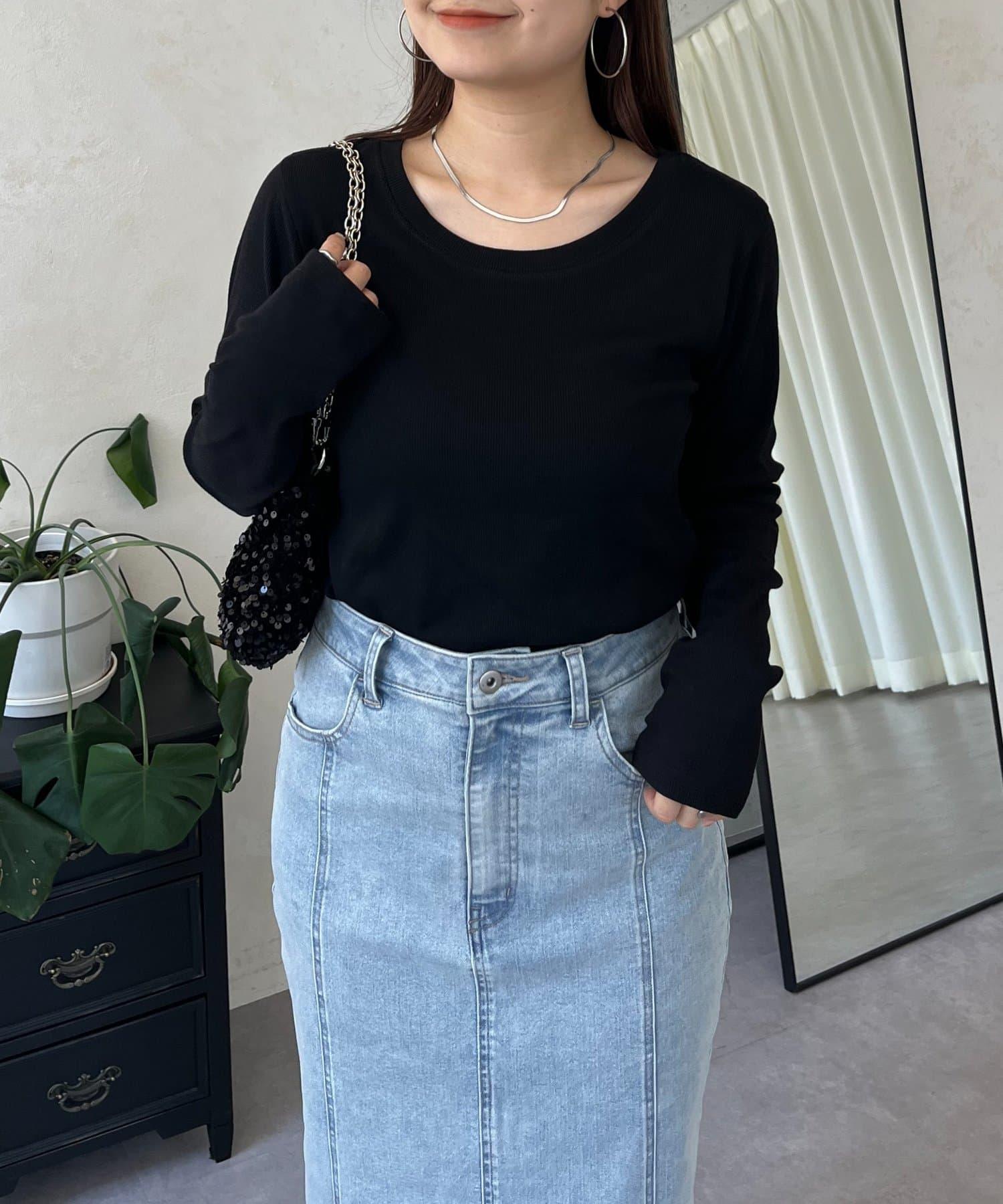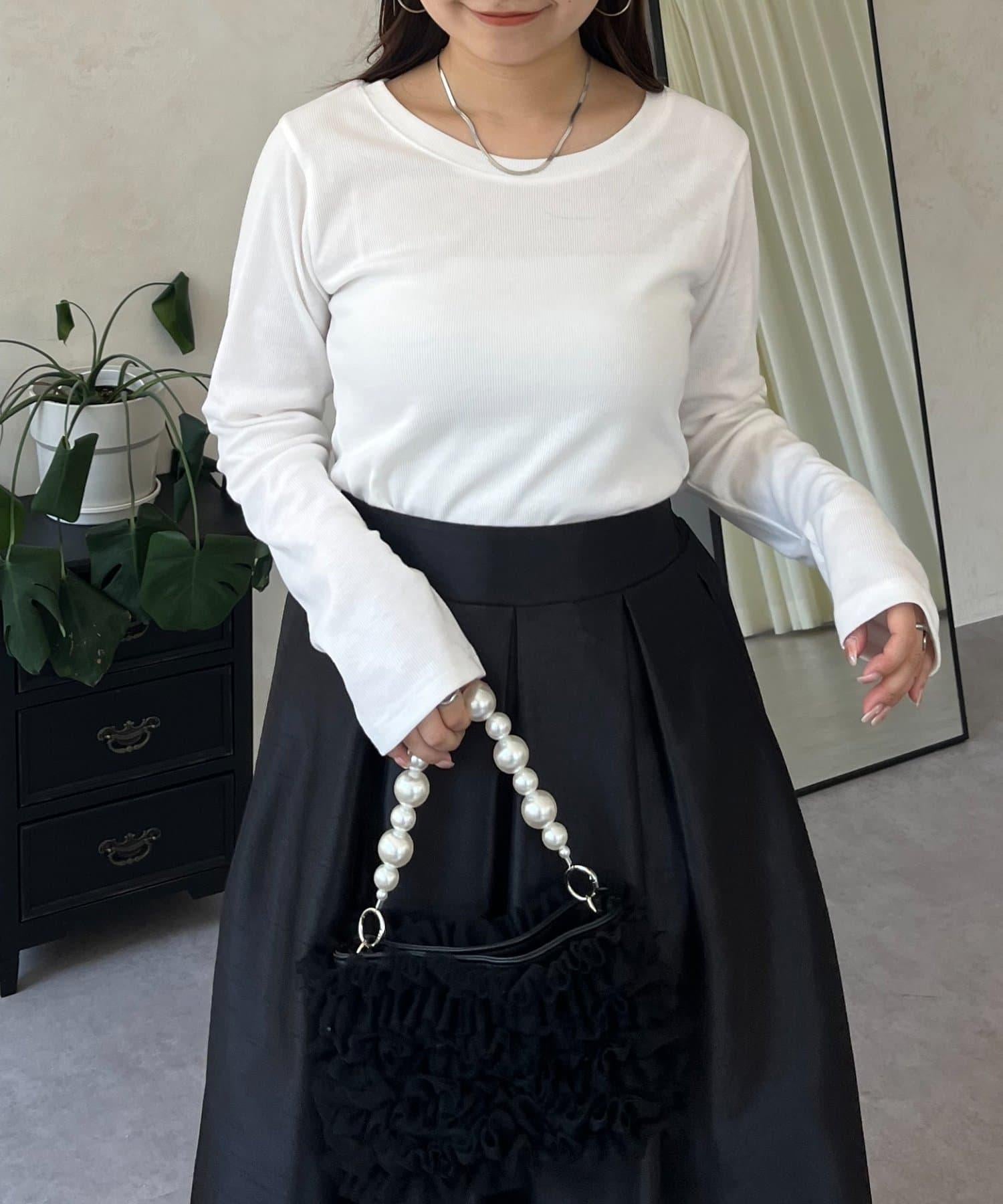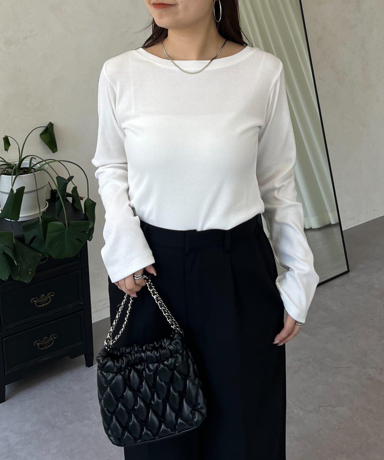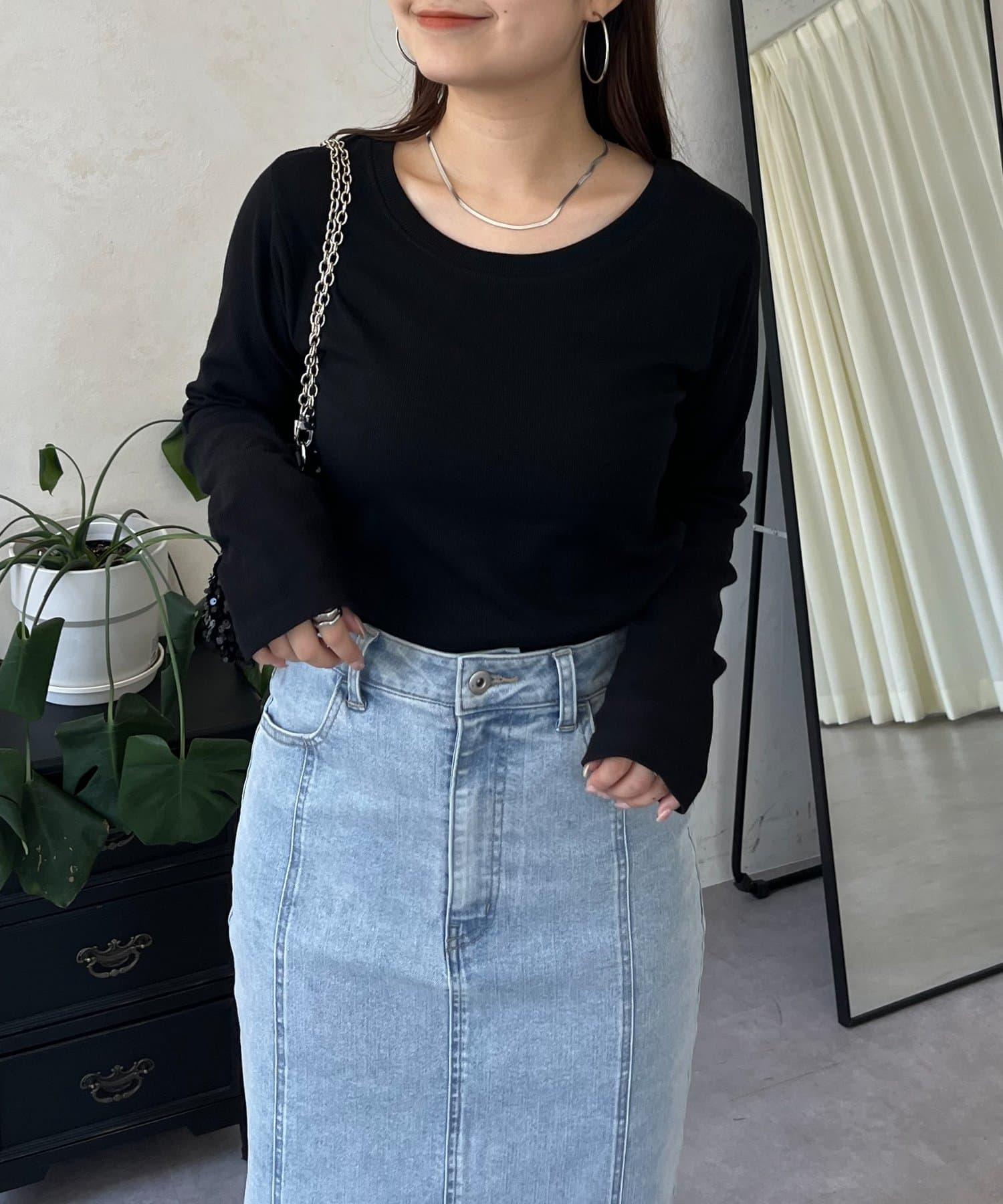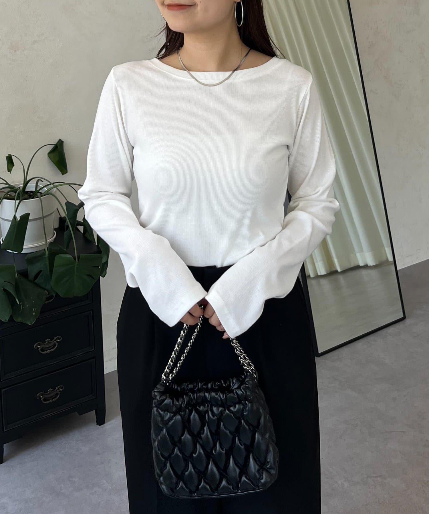 【可選領型】背部金屬裝飾羅紋長袖T恤