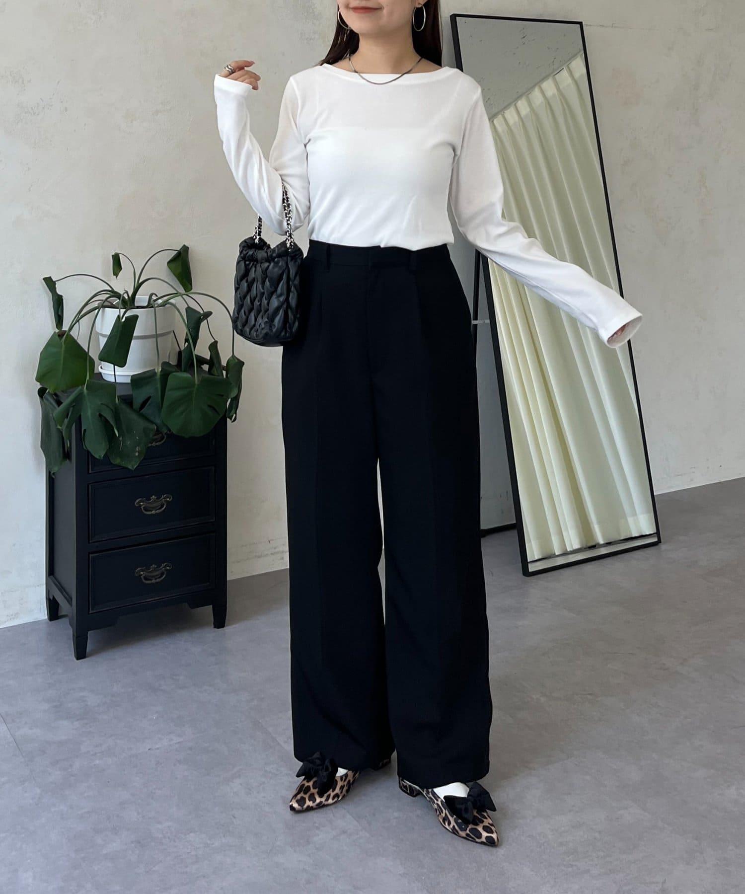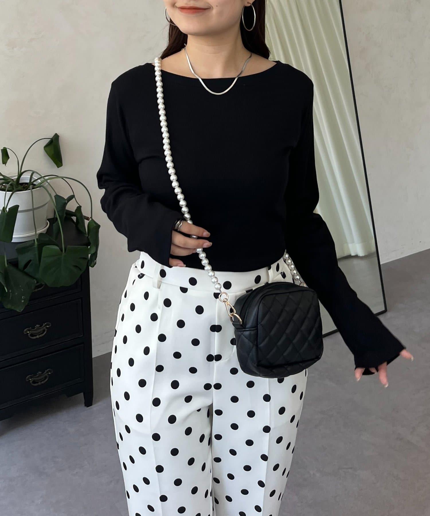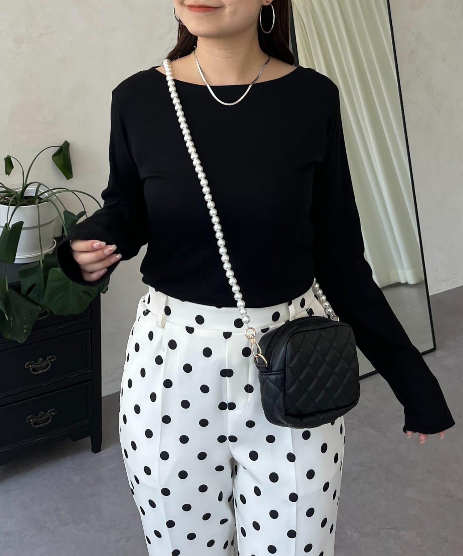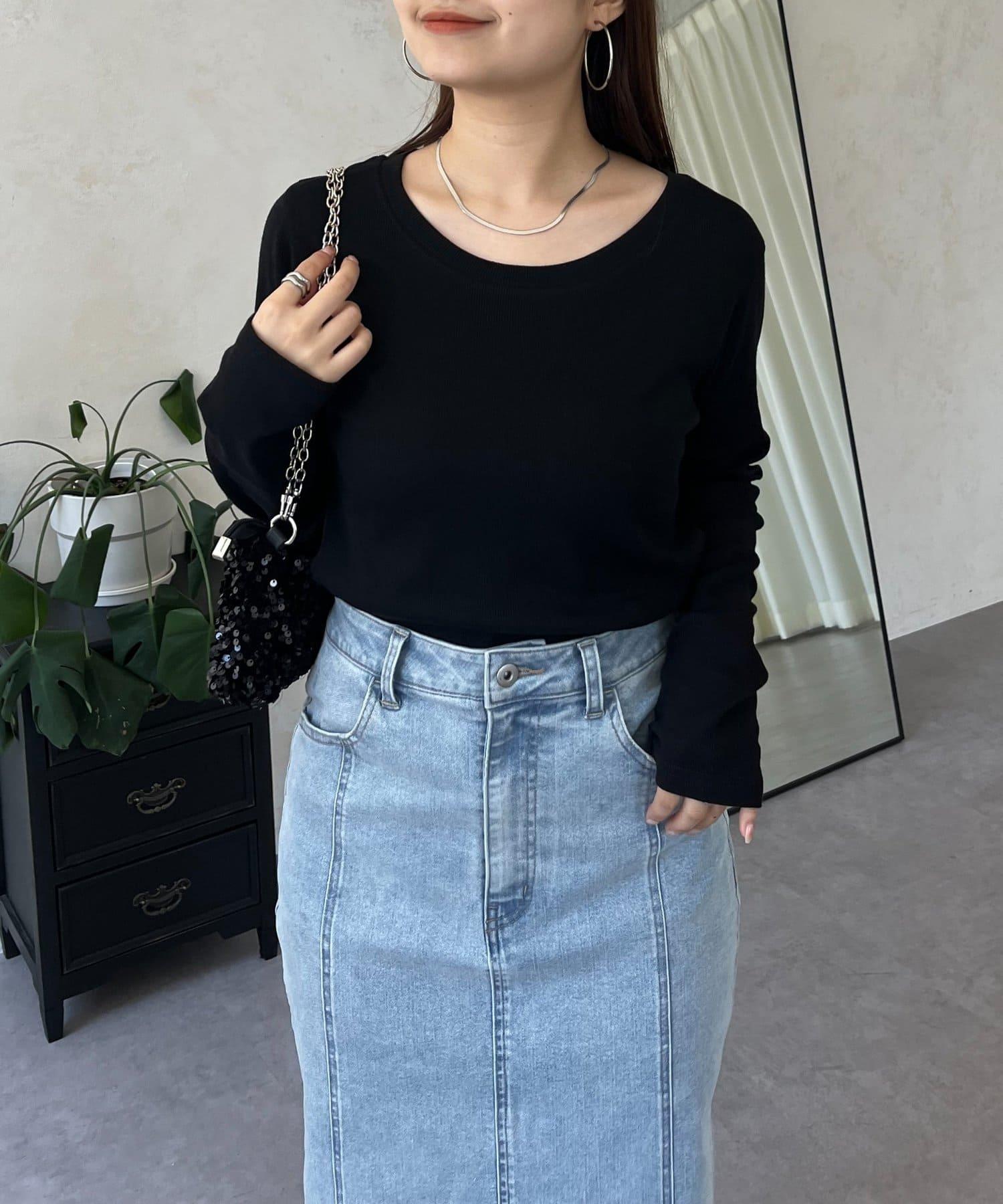 【可選領型】背部金屬裝飾羅紋長袖T恤