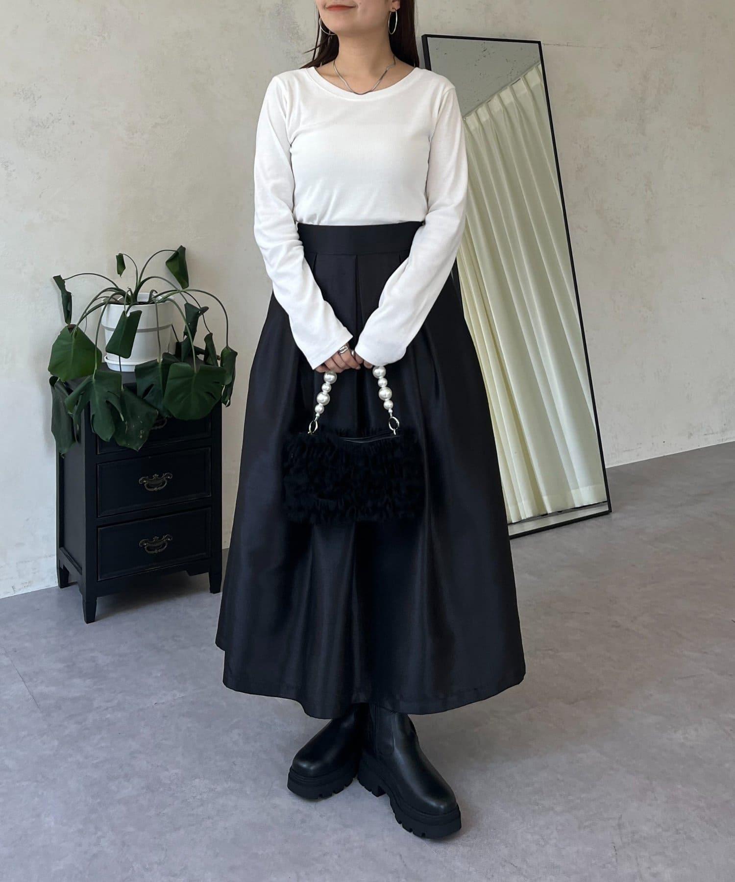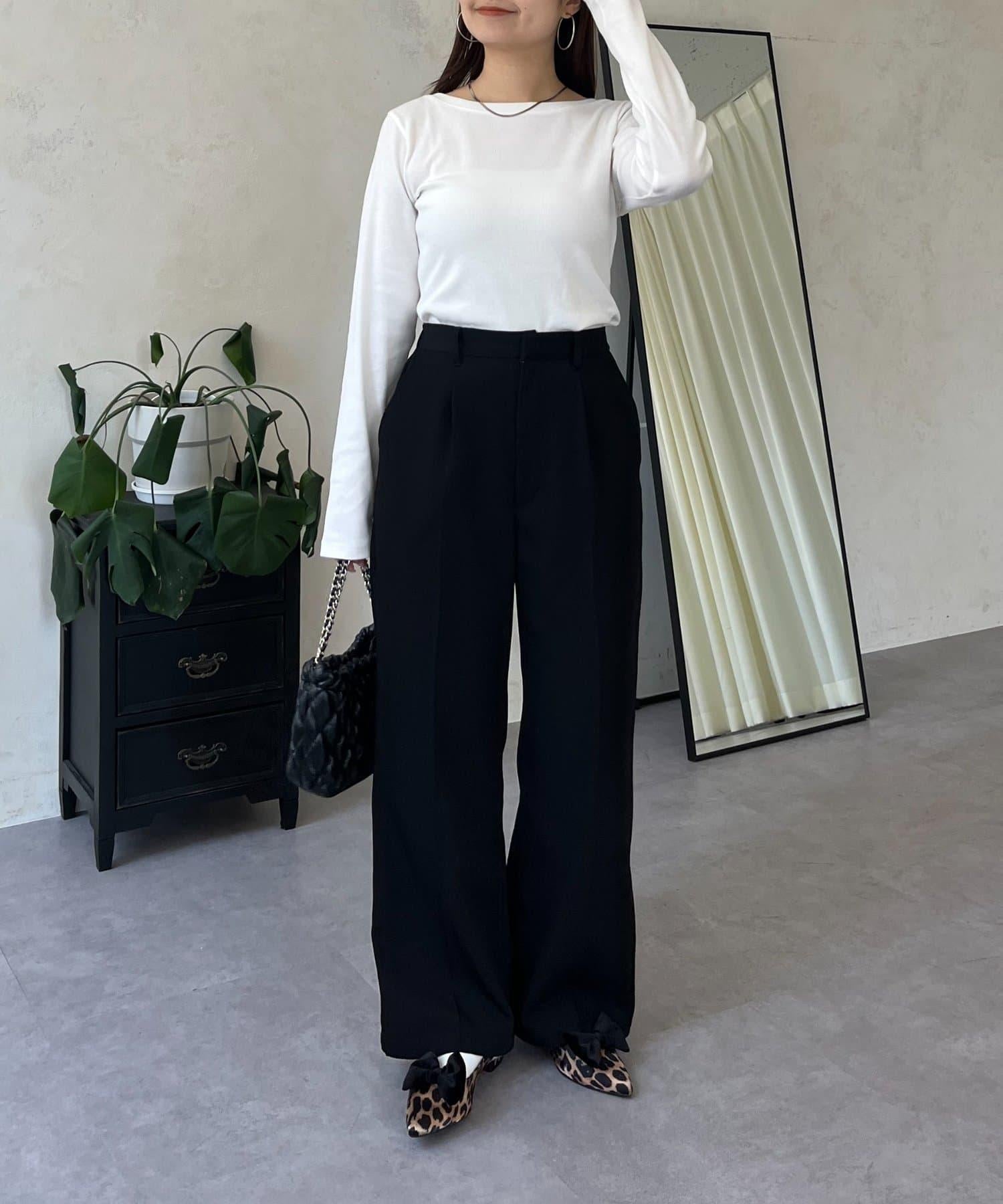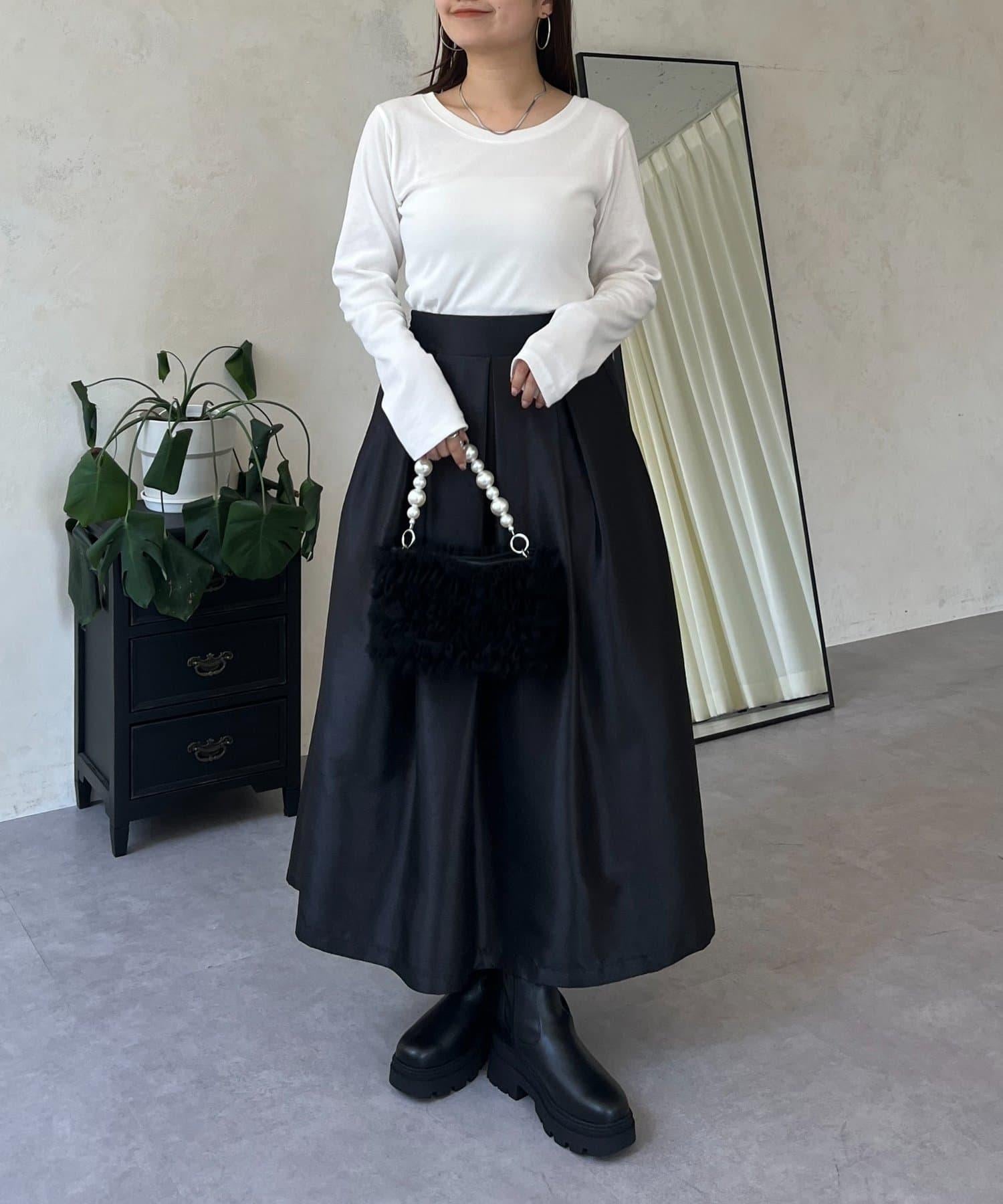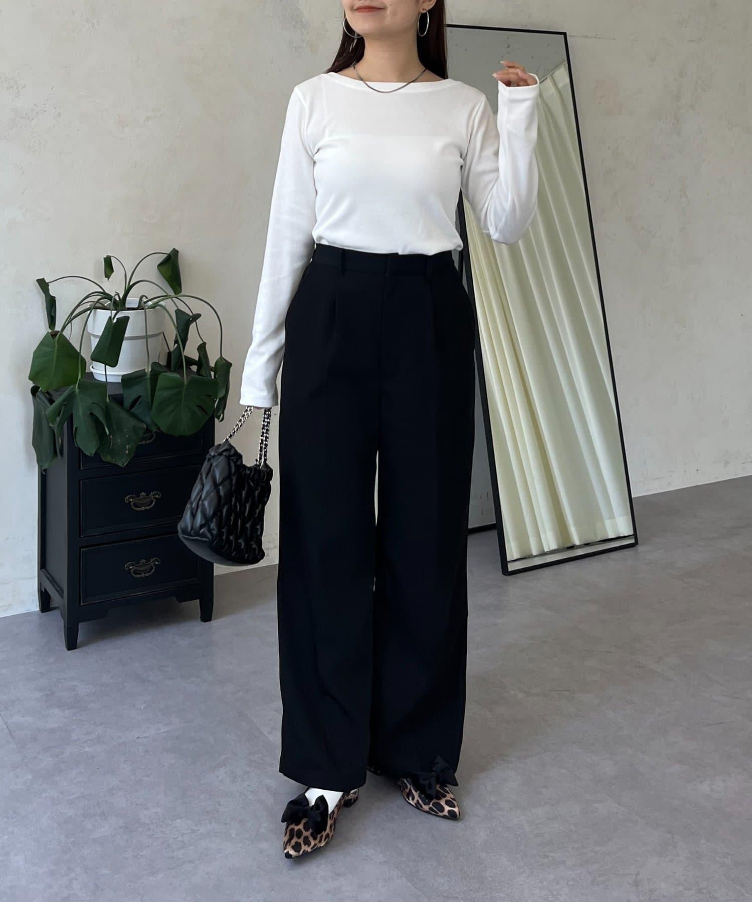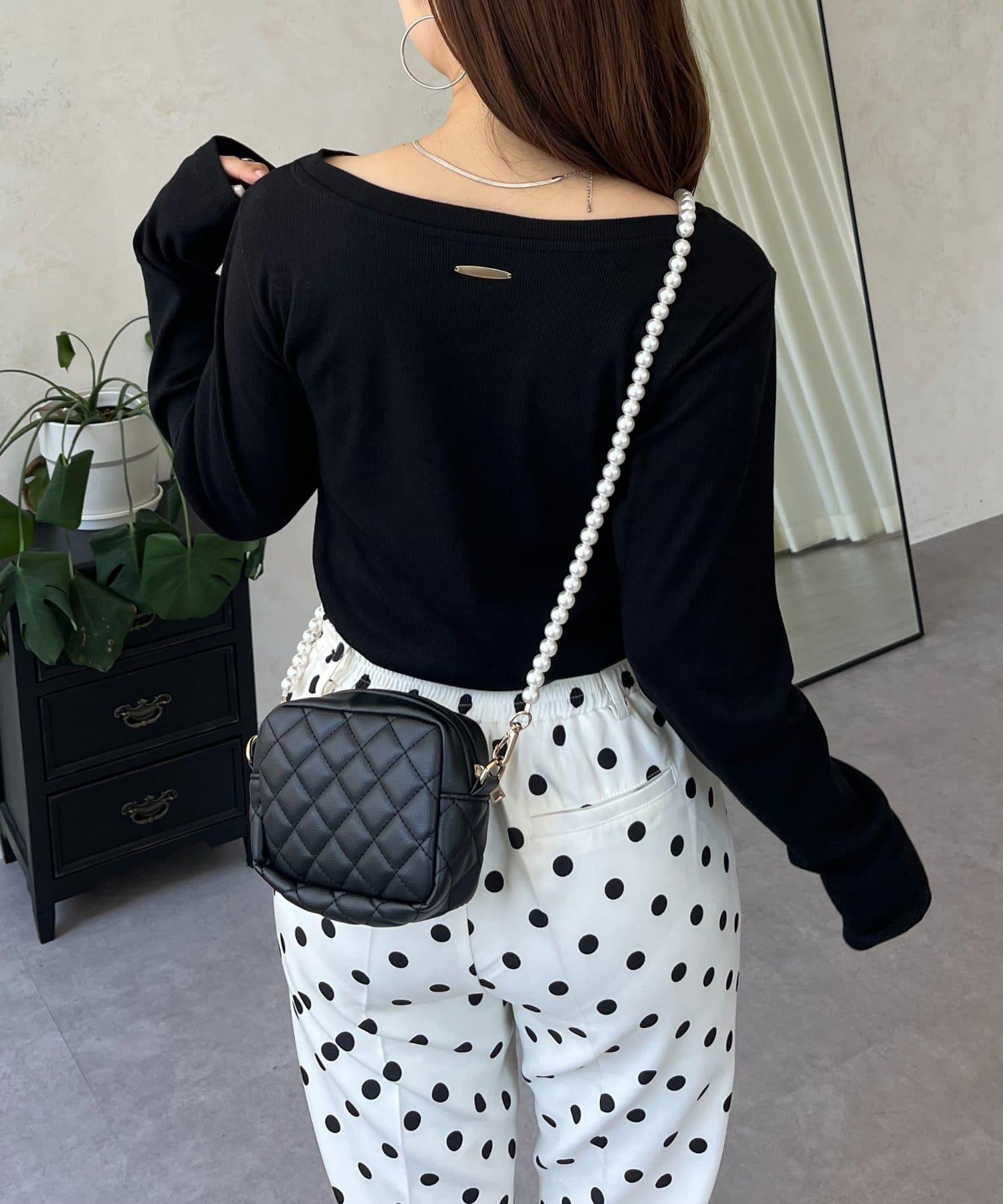 【可選領型】背部金屬裝飾羅紋長袖T恤