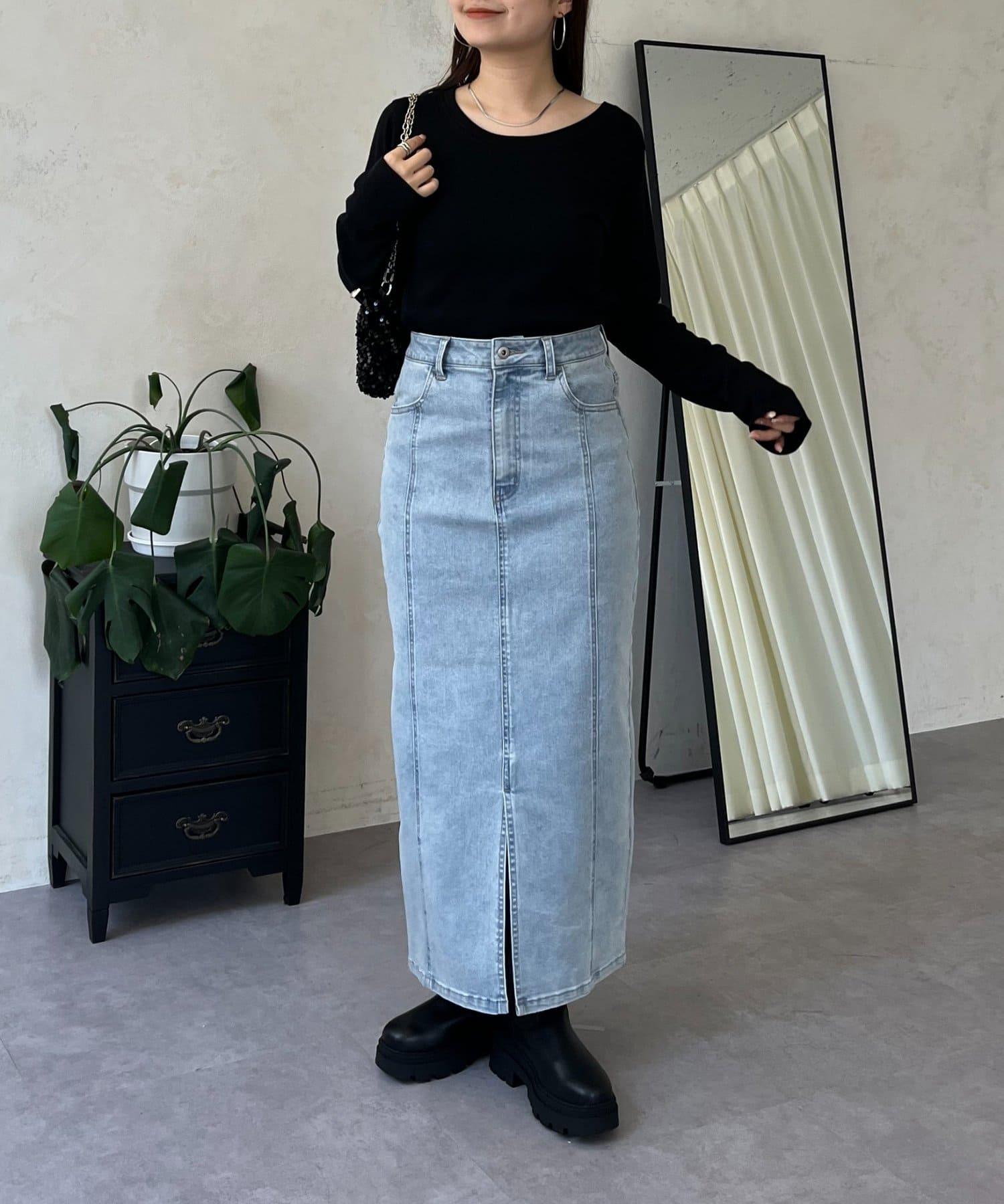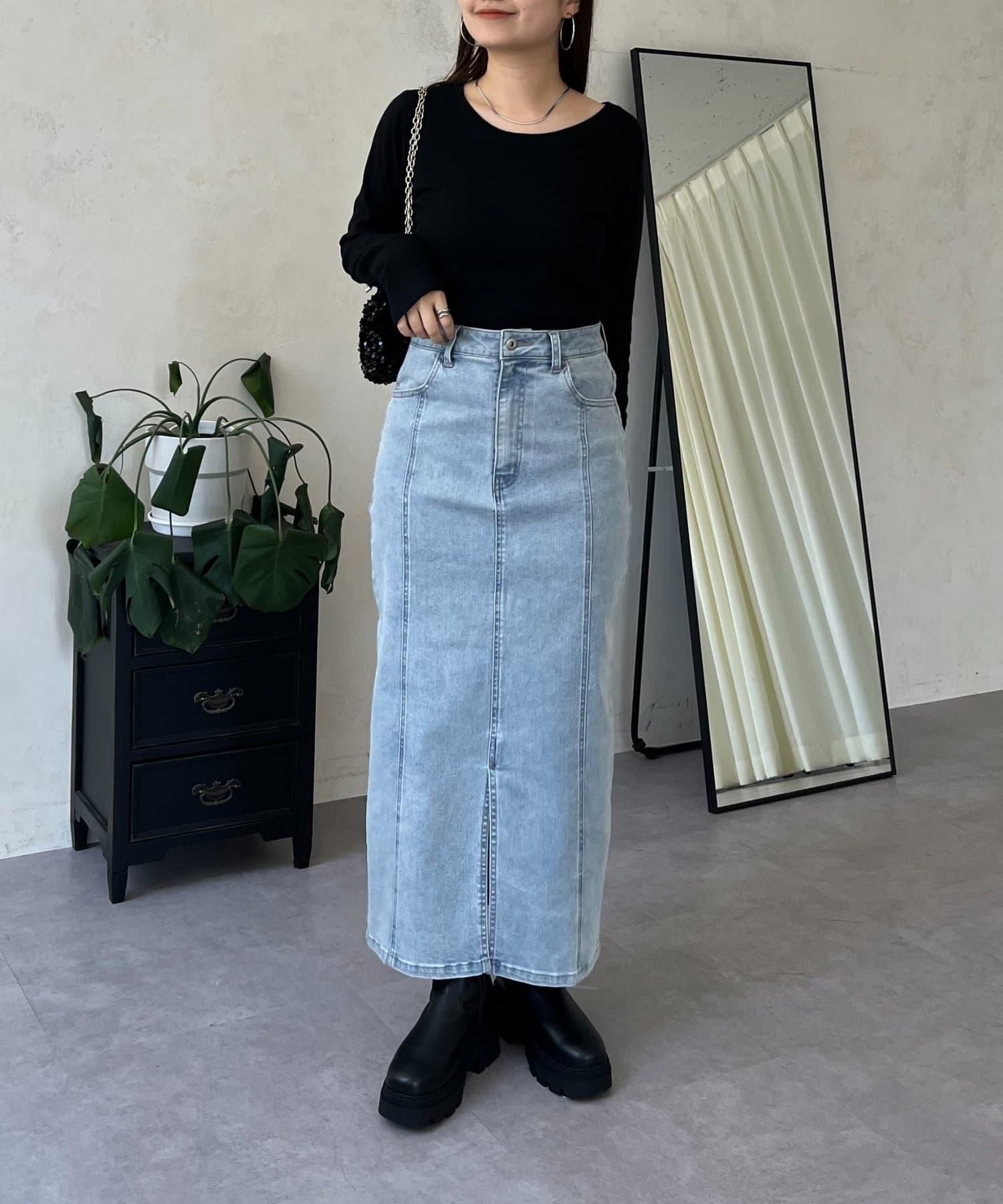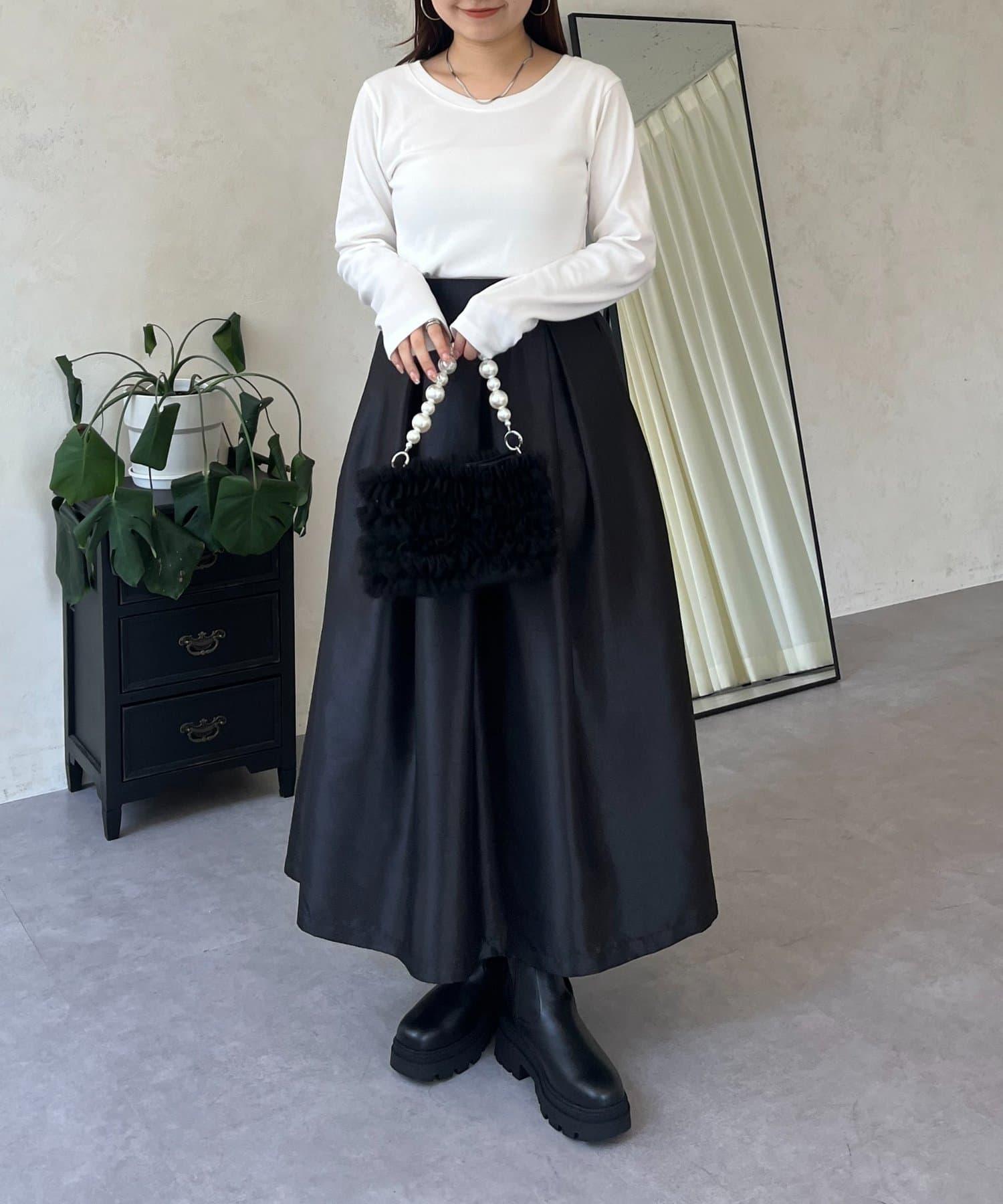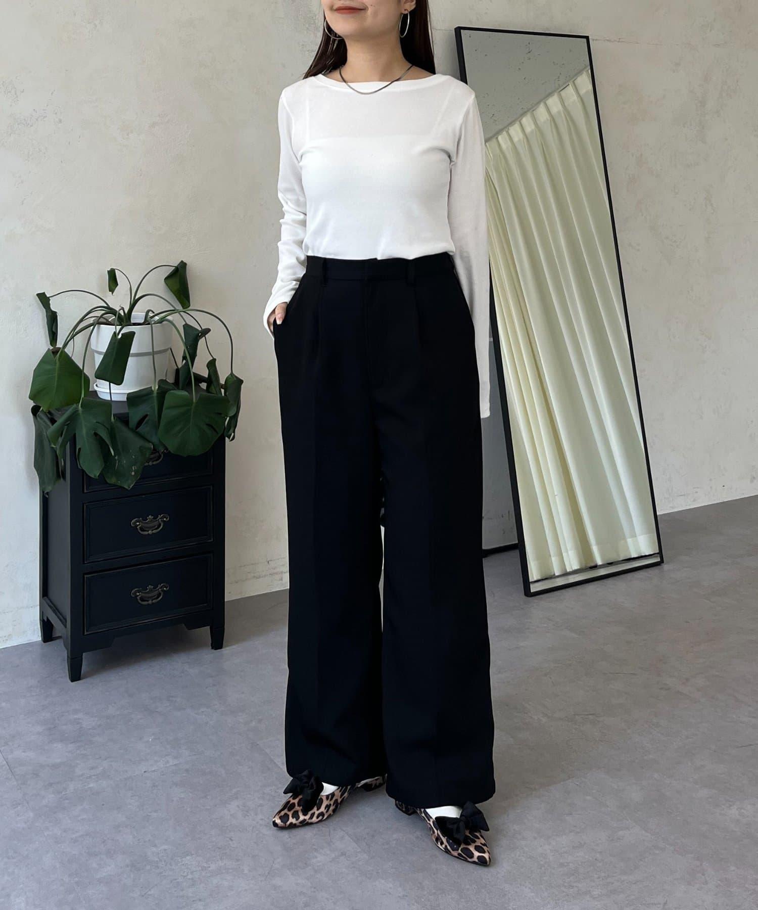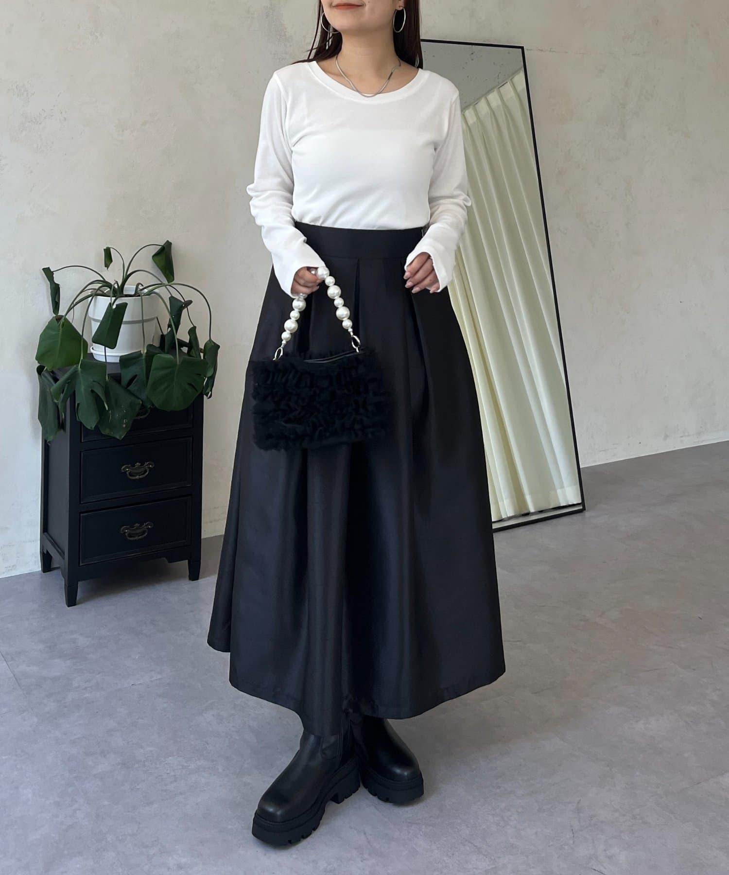 【可選領型】背部金屬裝飾羅紋長袖T恤