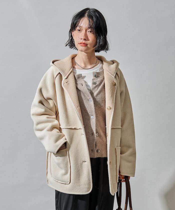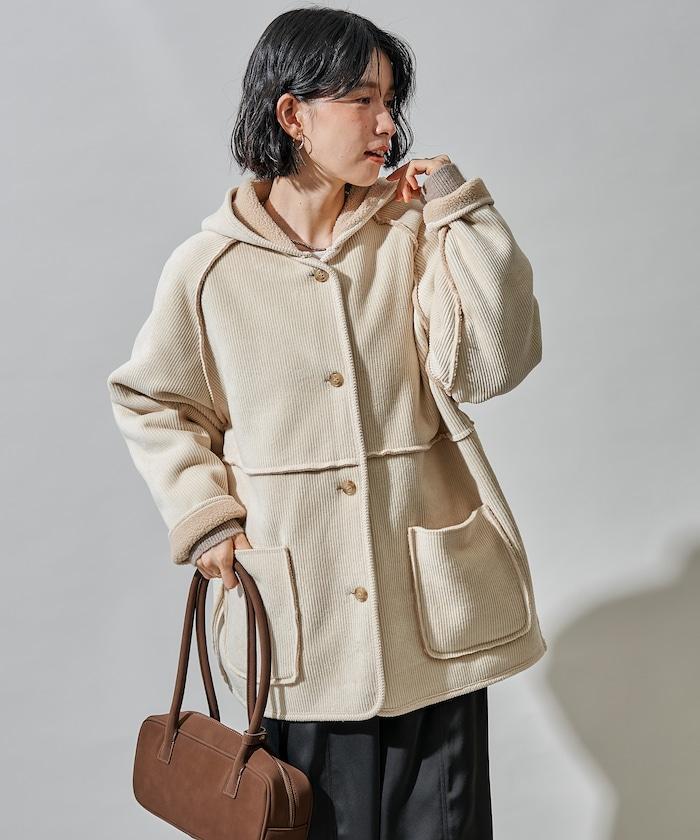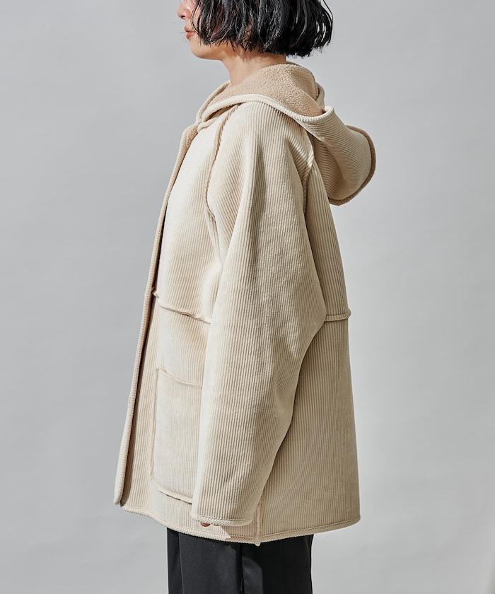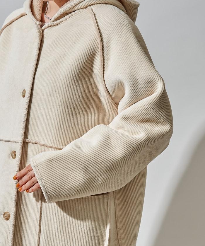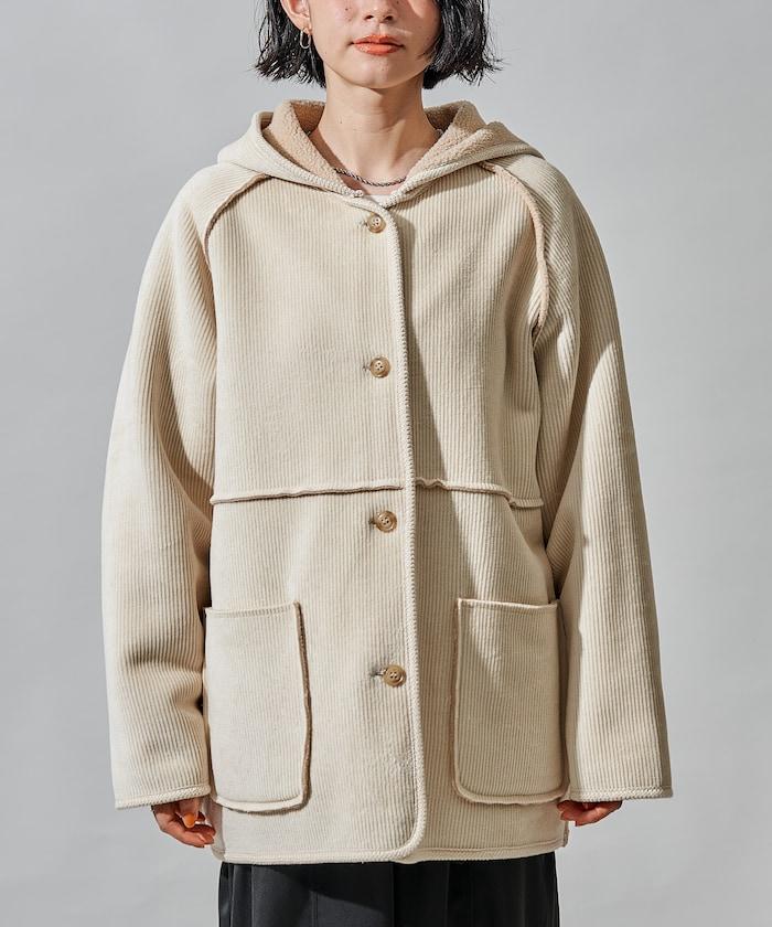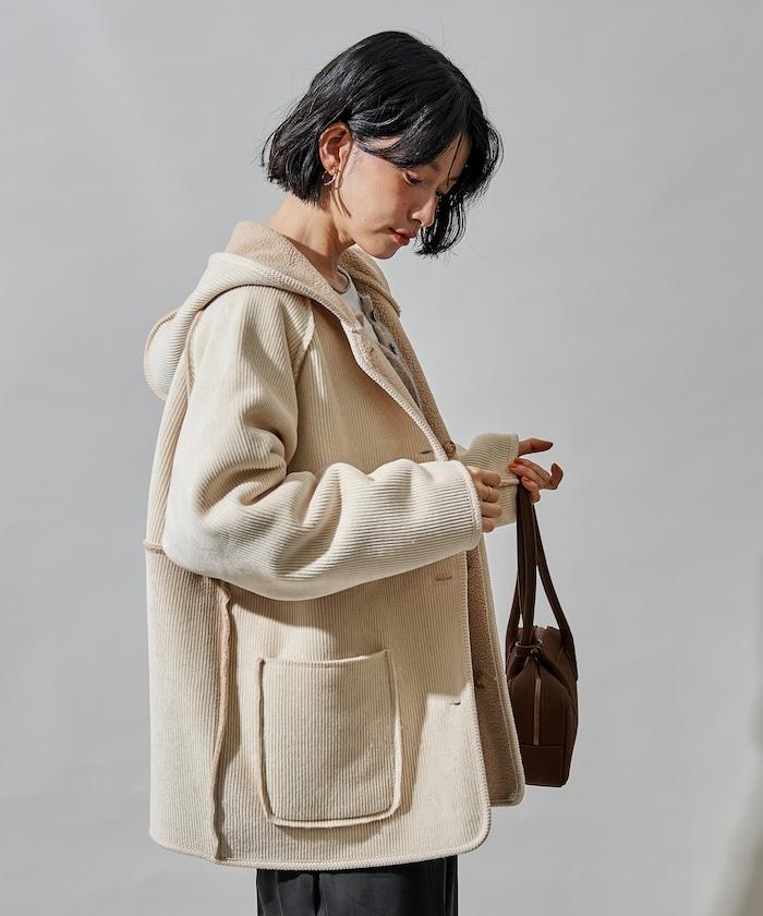 可雙面穿連帽燈芯絨羊羔絨夾克