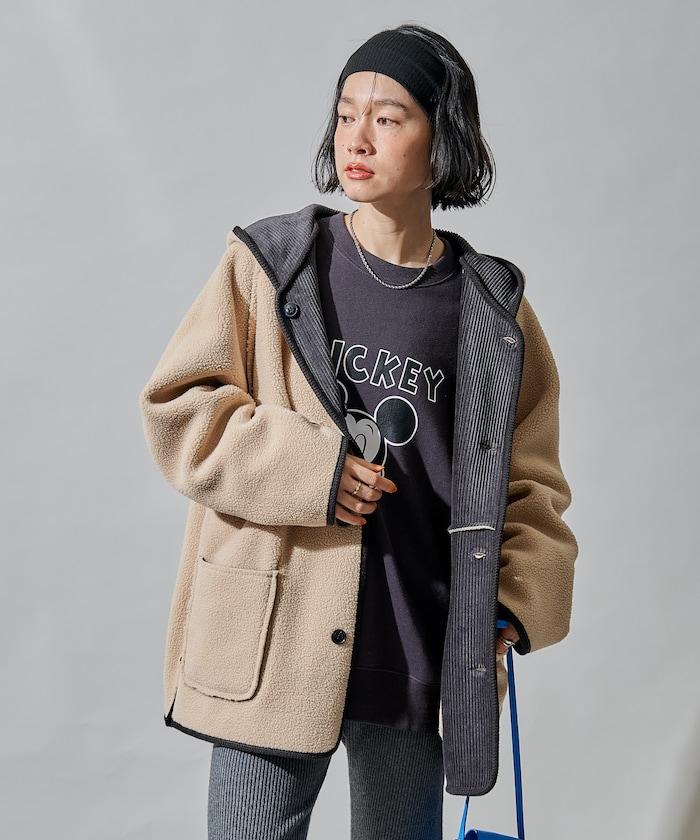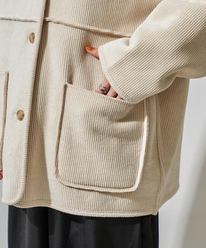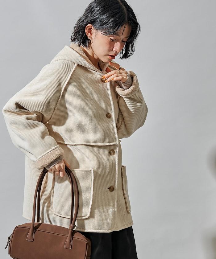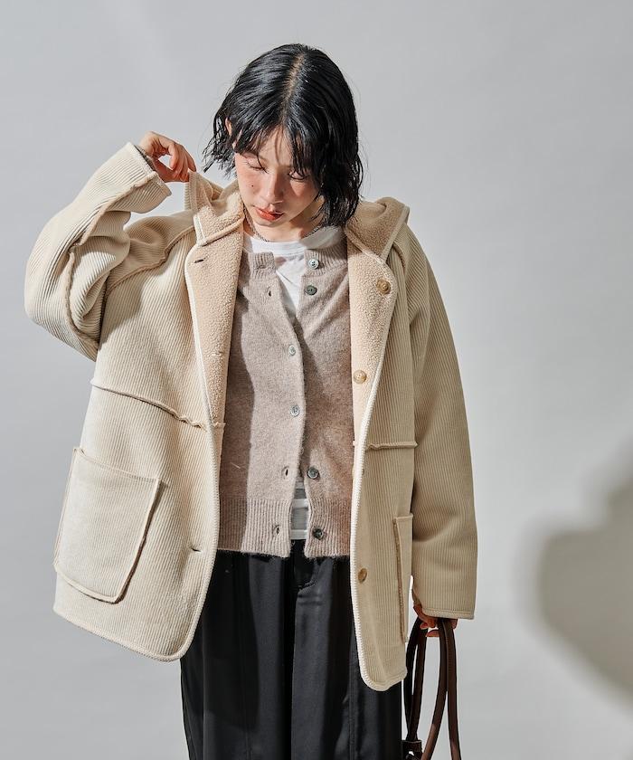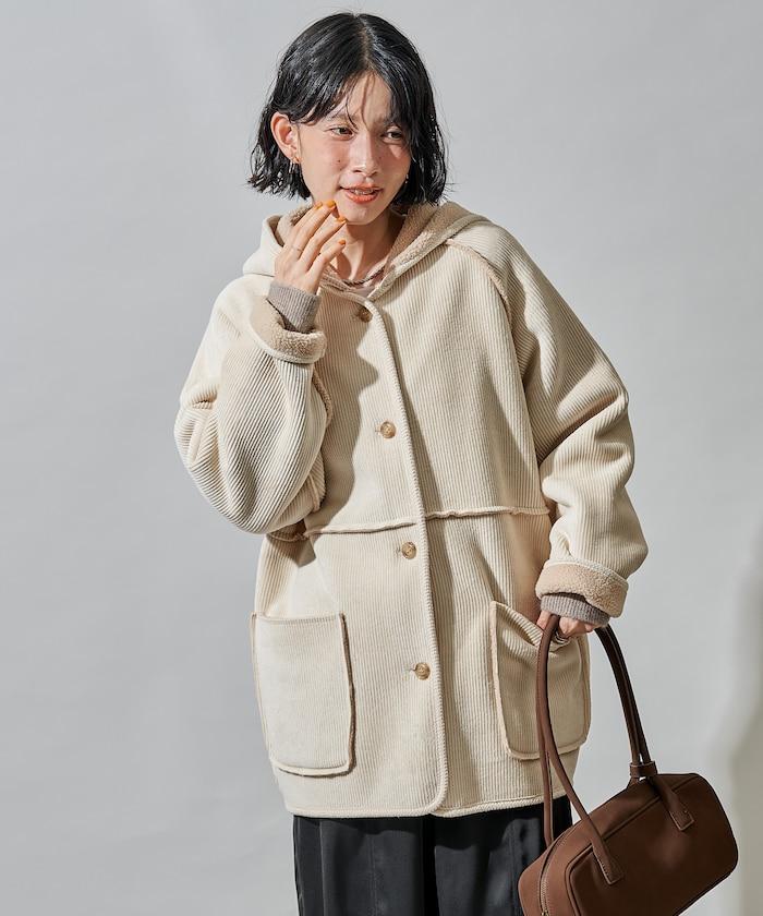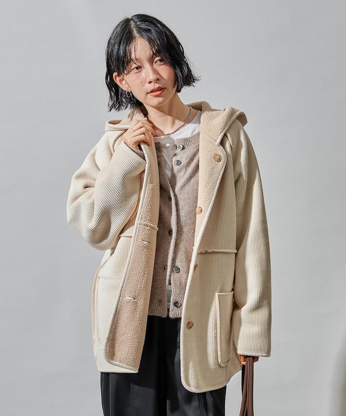 可雙面穿連帽燈芯絨羊羔絨夾克